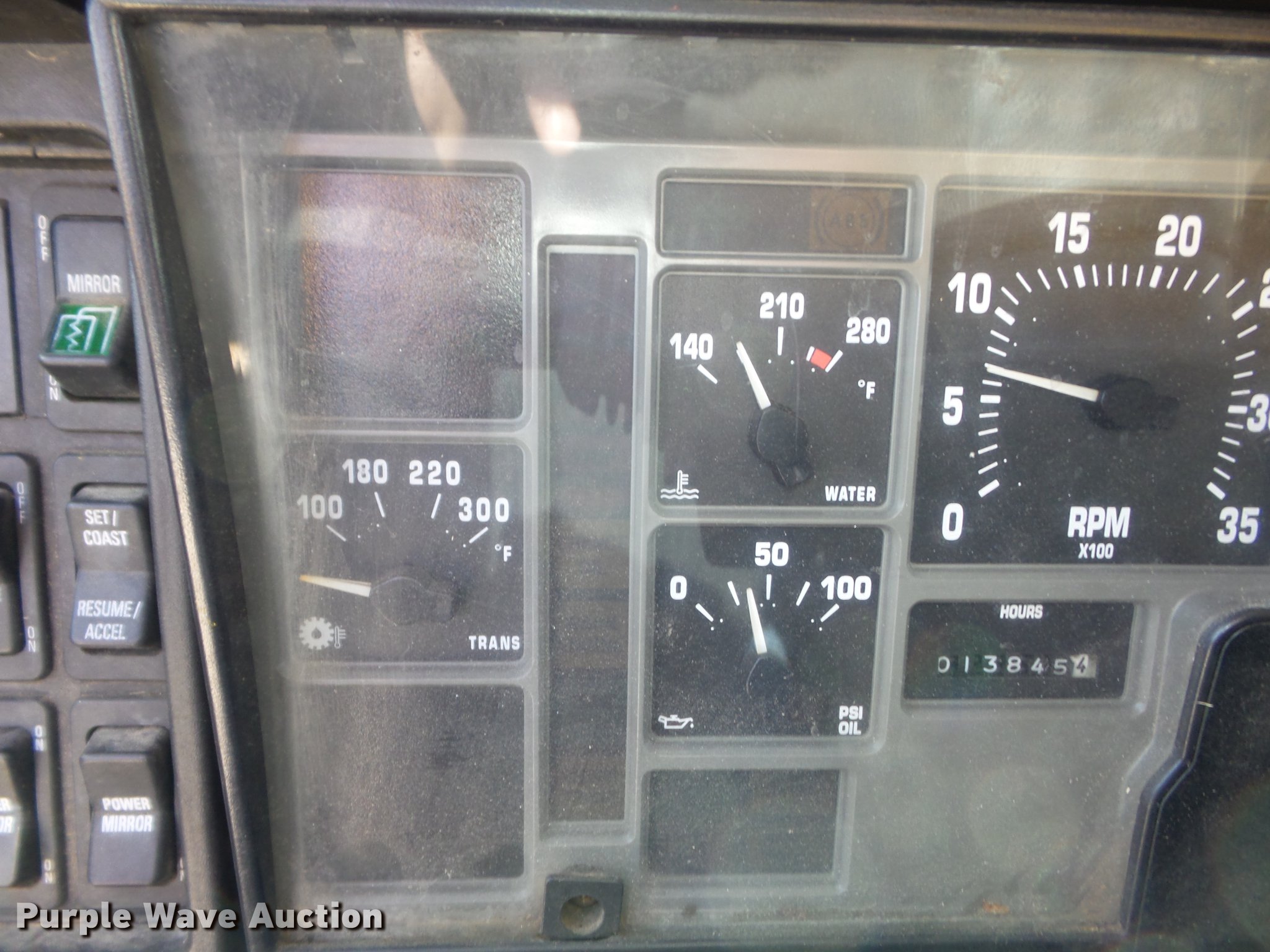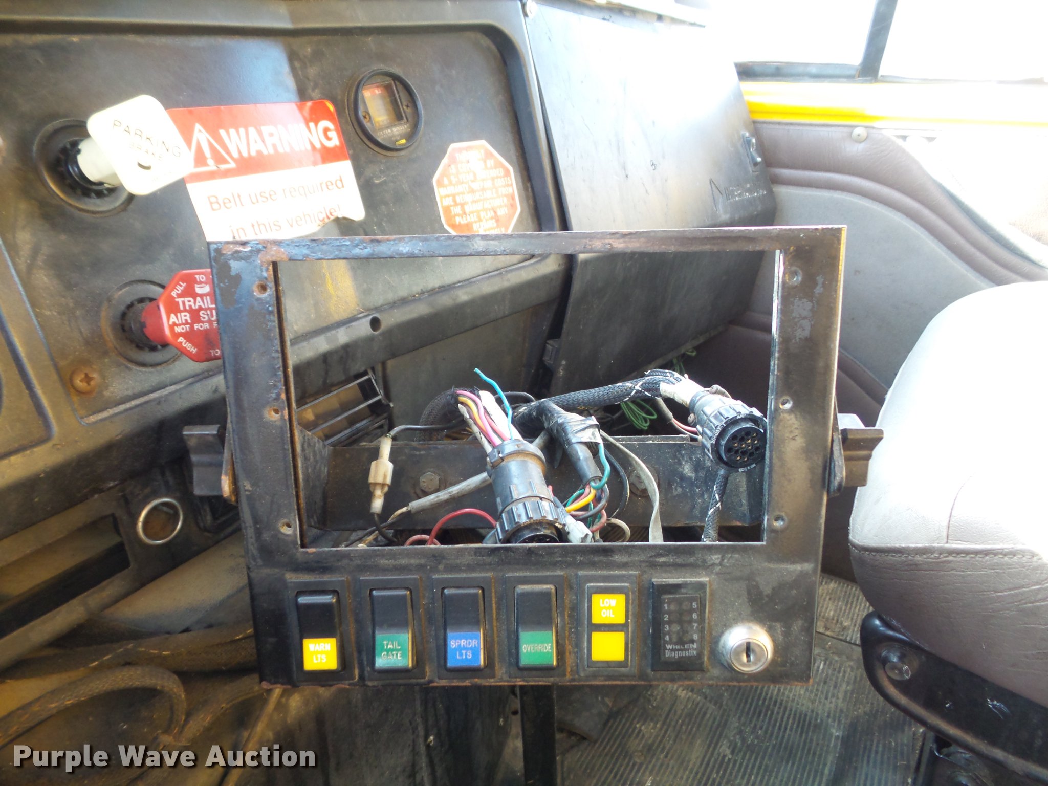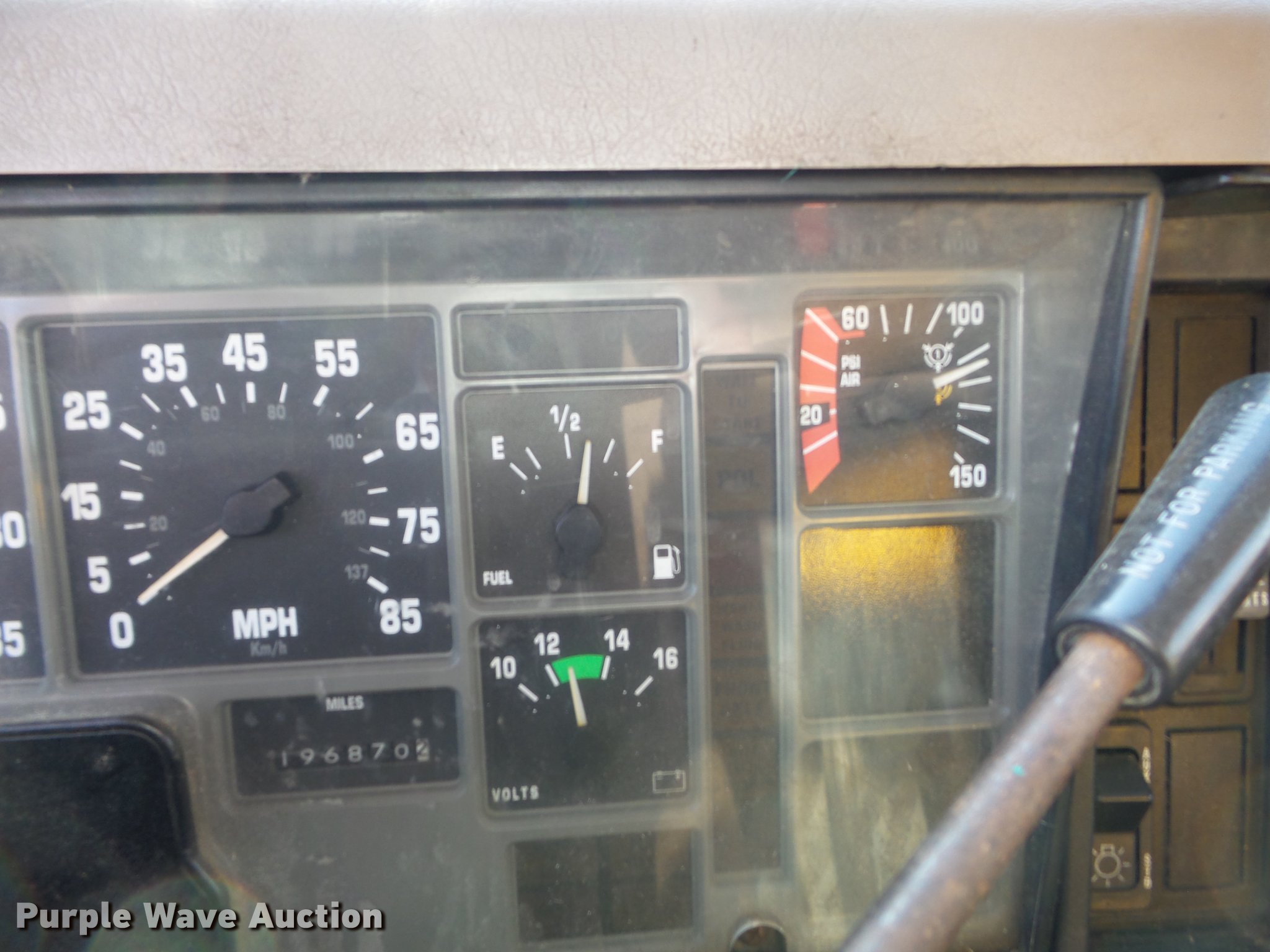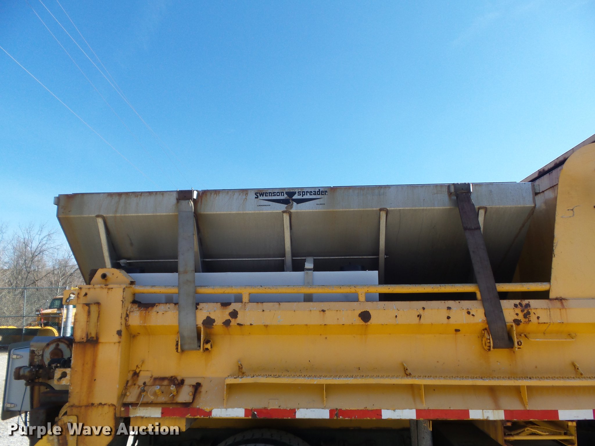 Purple Wave is selling a used Construction Dump Truck in Missouri. This item is a 2002 International 4900 dump truck with the following: 196,870 miles on odometer, 13,845 hours on meter, International DT466E 7.6L L6 turbo diesel engine, Allison automatic transmission, Single axle, AC and heat, Cruise, AM/FM/weatherband, Power windows, Power and heated mirrors, Air suspension seat, Brake controller, PTO, Toolboxes, Wheeler steel dump bed, 10'L x 96"W, 24" side height, Roll tarp, Bed vibrator, Single ram hoist, Air operated end gate, 12'W plow, Swenson spreader, Single fuel tank, Pintle hitch, Spring suspension, Air brakes, 206" wheelbase, 315/80R22.5 front tires, 11R22.5 rear tires, GVWR 37,000 lbs, FAWR 16,000 lbs, RAWR 21,000 lbs, MODOT ID 6670
