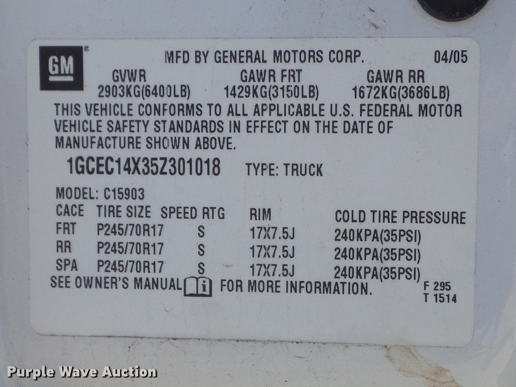 1GCEC14X35Z301018