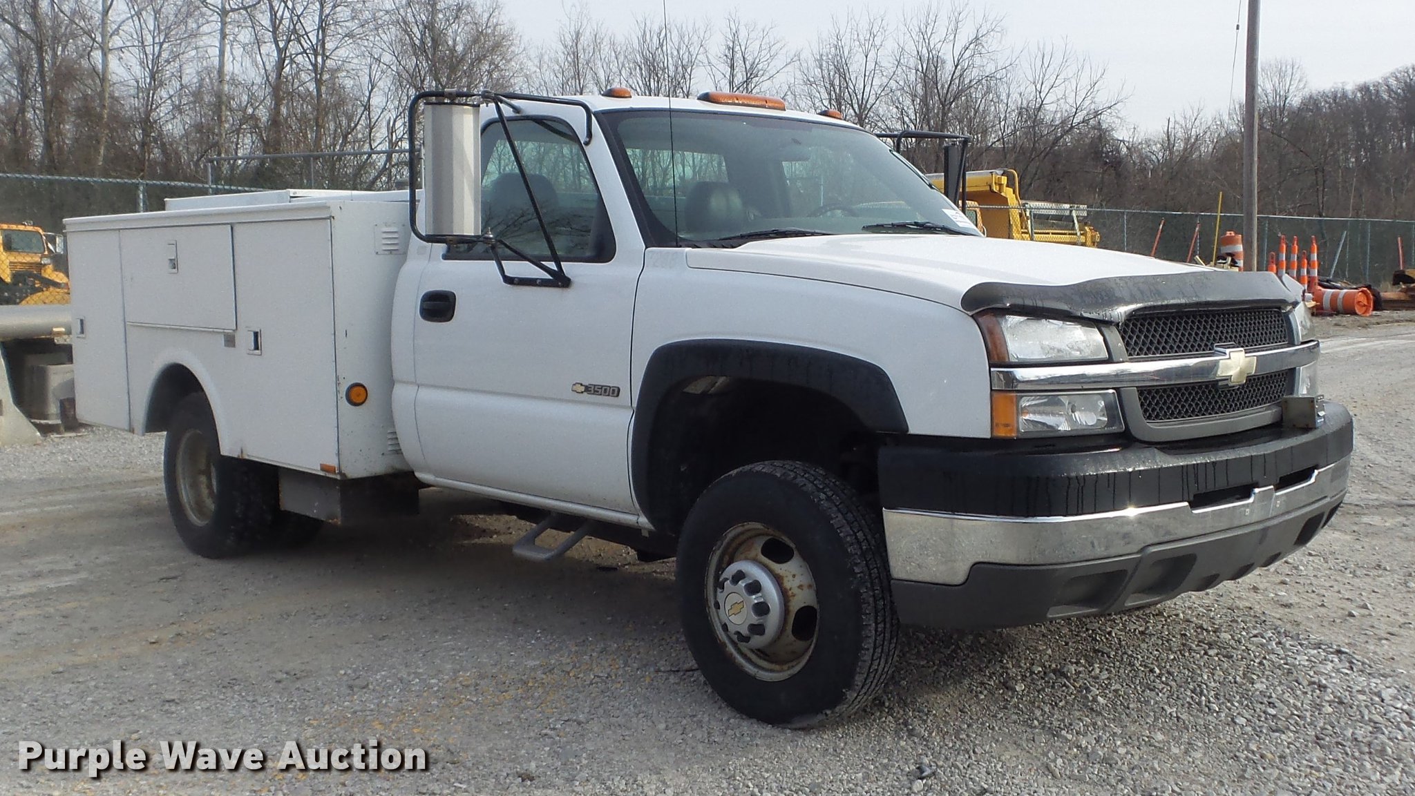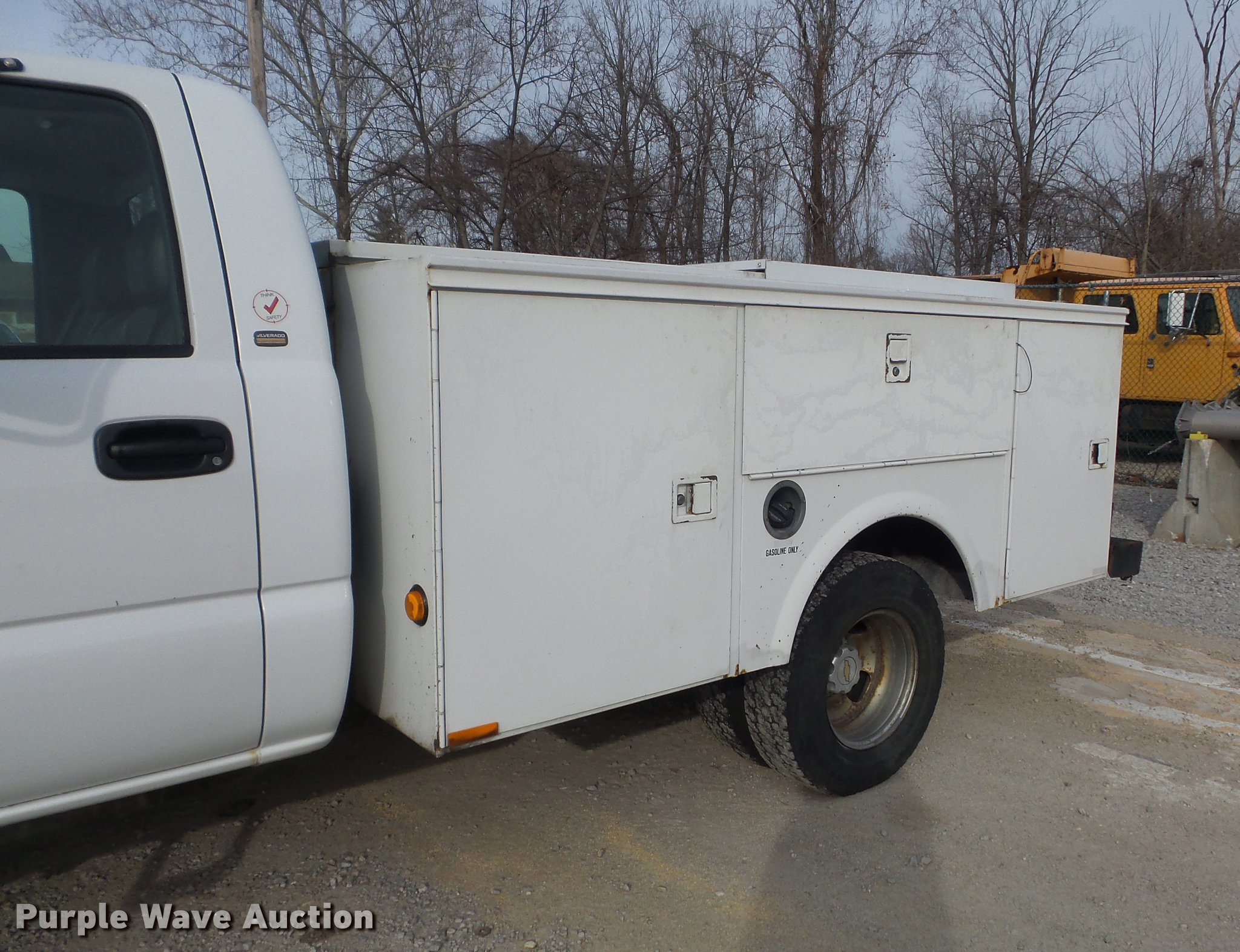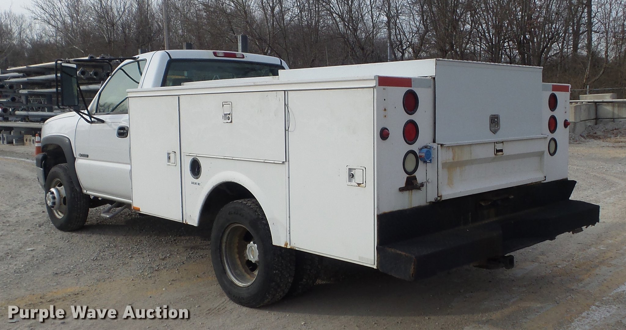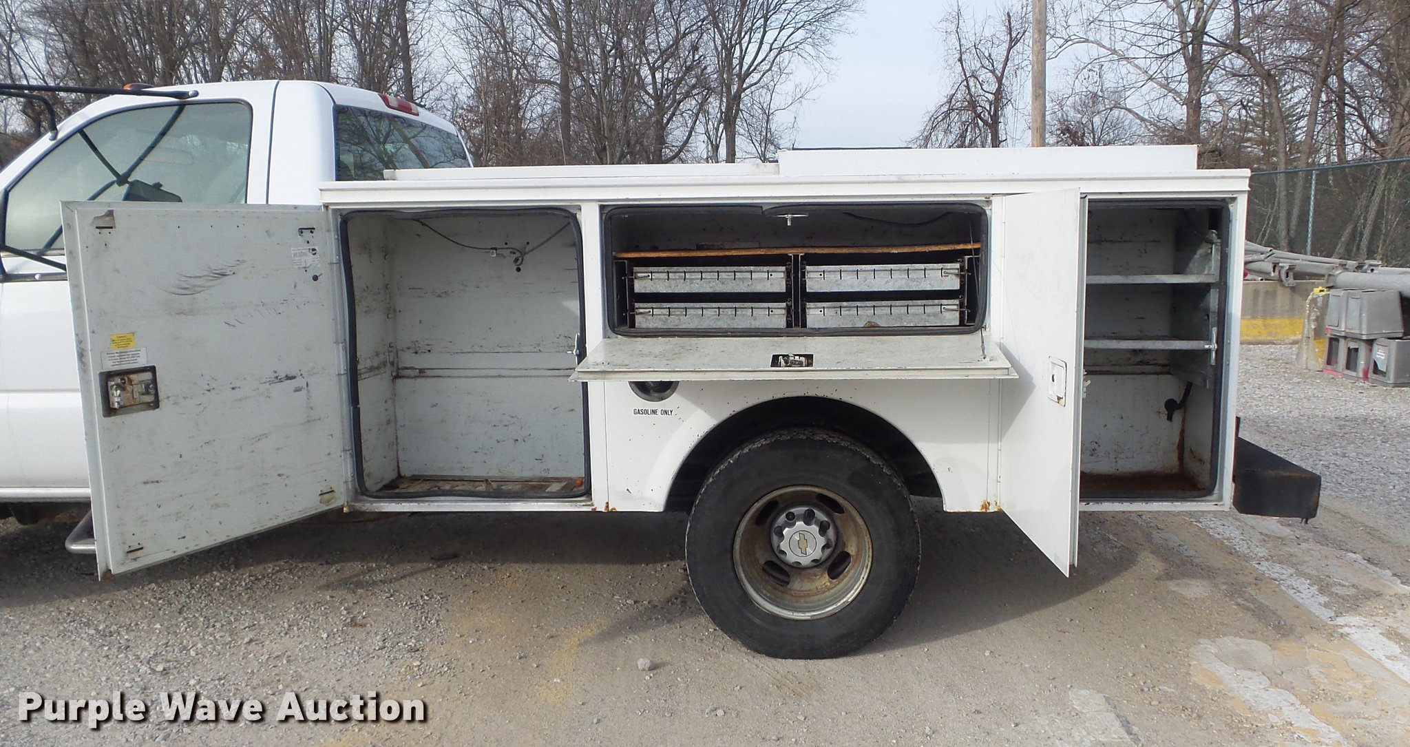 Purple Wave is selling a used 3/4 or 1 Ton Pickup or Van in Missouri. This item is a 2004 Chevrolet Silverado 3500 utility bed pickup truck with the following: 153,999 miles on odometer, 6.0L V8 OHV 16V gas engine, Automatic transmission, Single axle, AC and heat, AM/FM, Omaha utility bed, 9'L, Shelving, Slide-out drawers, Enclosed body, Vector power inverter, 1,200 watt,, Receiver hitch, Spring suspension, Hydraulic brakes, LT215/85R16 tires, Cracked windshield, MODOT ID 7238