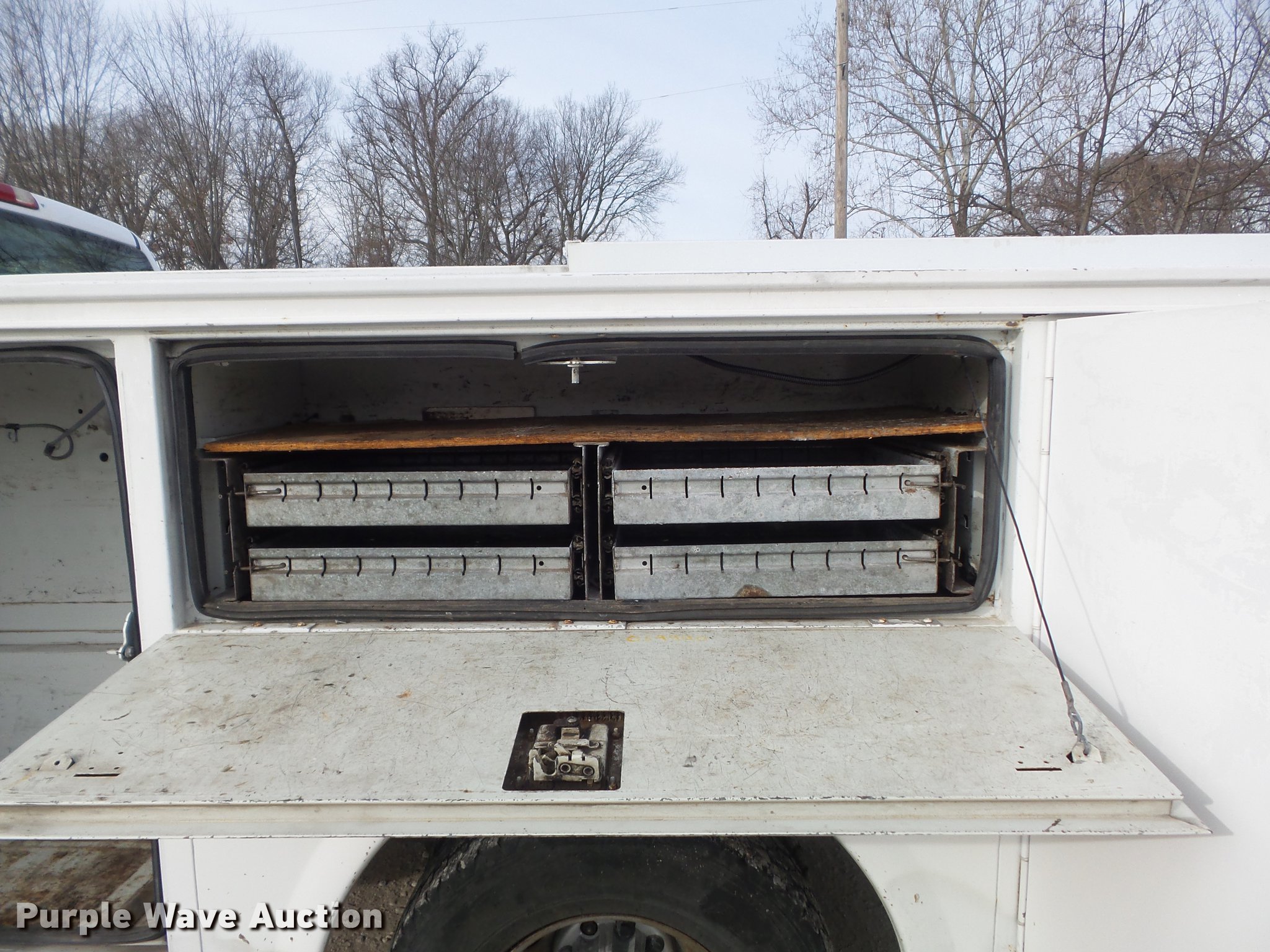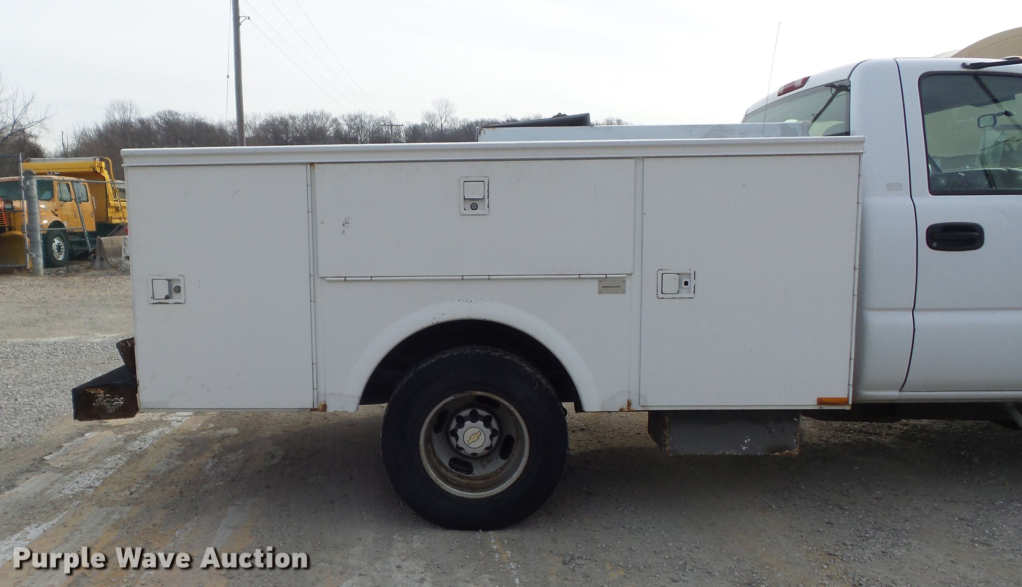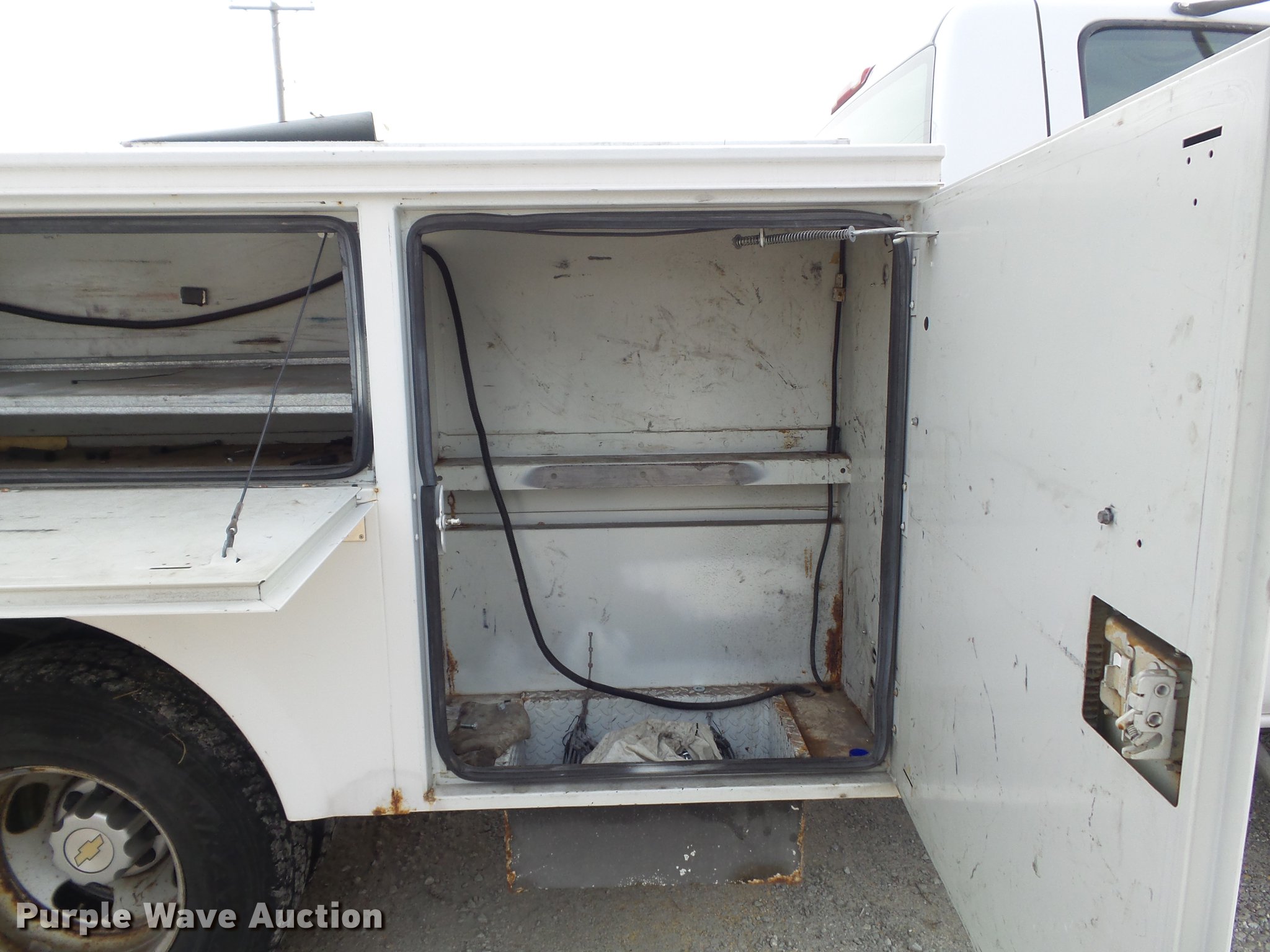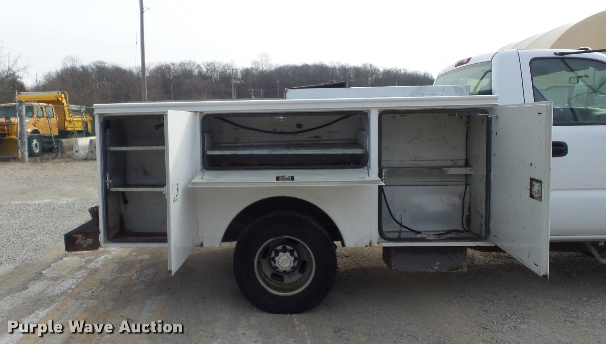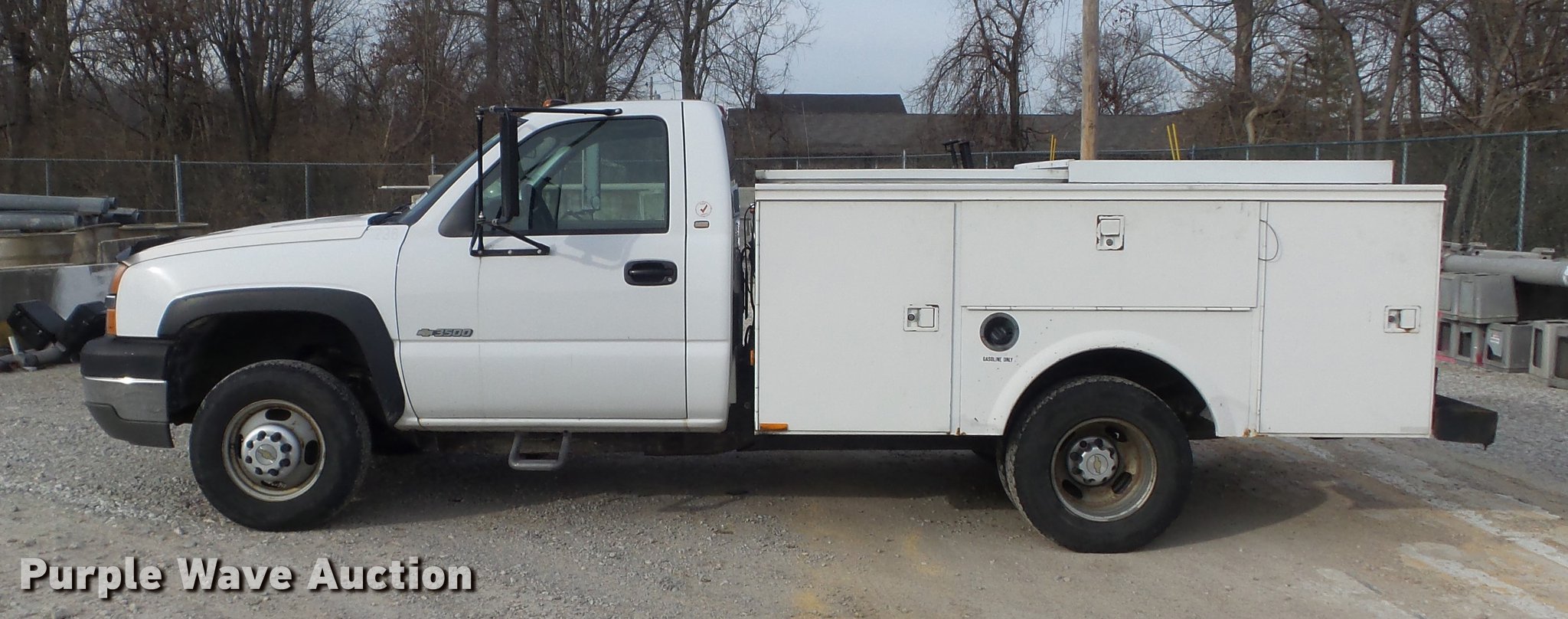 Purple Wave is selling a used 3/4 or 1 Ton Pickup or Van in Missouri. This item is a 2004 Chevrolet Silverado 3500 utility bed pickup truck with the following: 153,999 miles on odometer, 6.0L V8 OHV 16V gas engine, Automatic transmission, Single axle, AC and heat, AM/FM, Omaha utility bed, 9'L, Shelving, Slide-out drawers, Enclosed body, Vector power inverter, 1,200 watt,, Receiver hitch, Spring suspension, Hydraulic brakes, LT215/85R16 tires, Cracked windshield, MODOT ID 7238