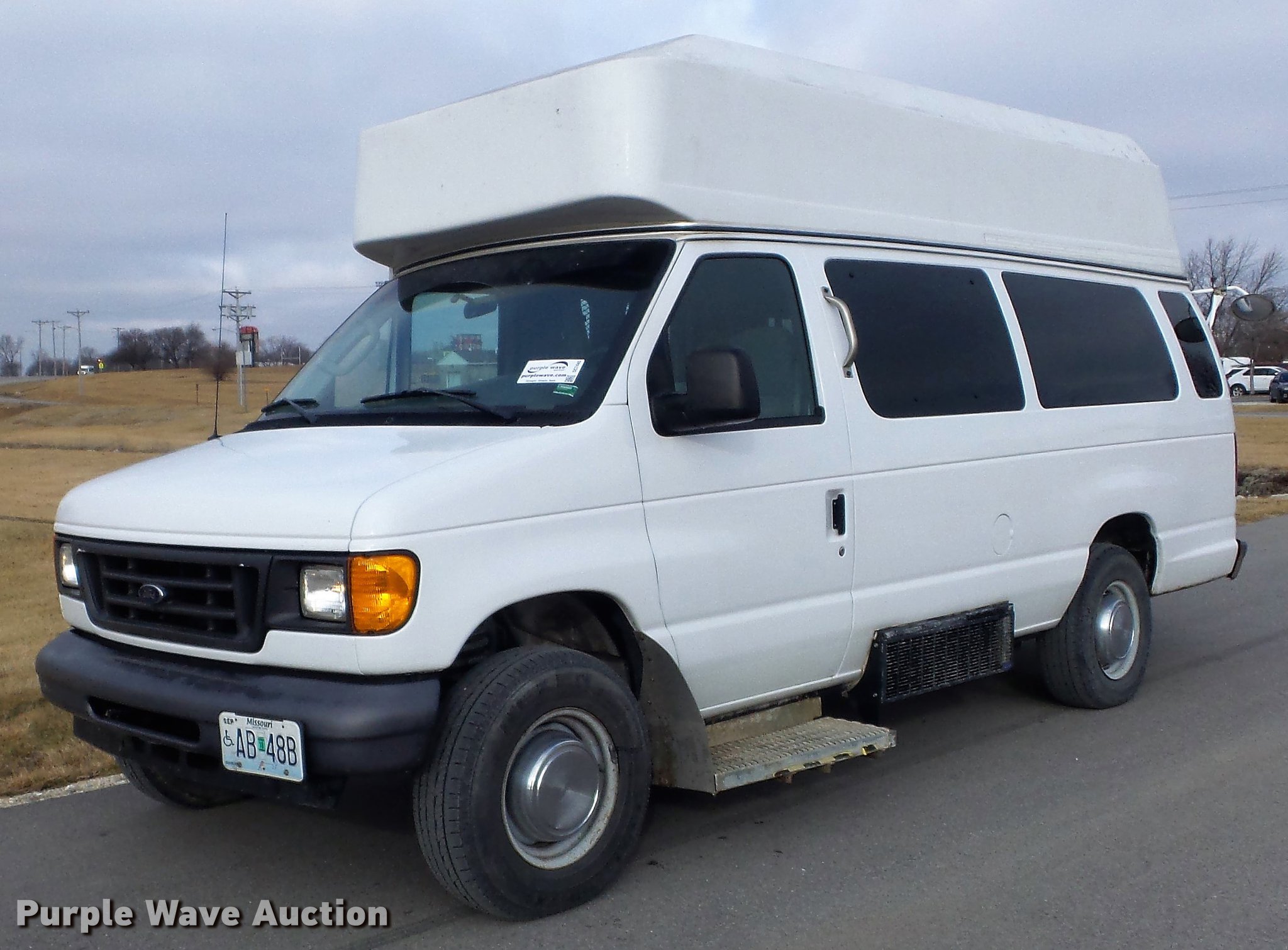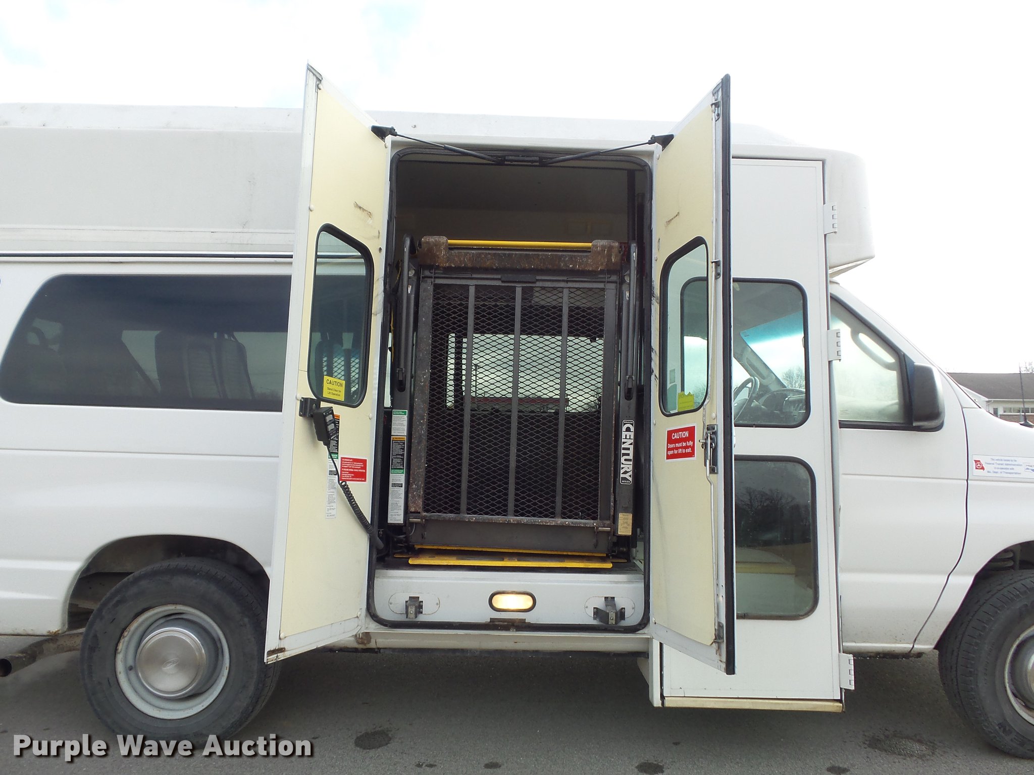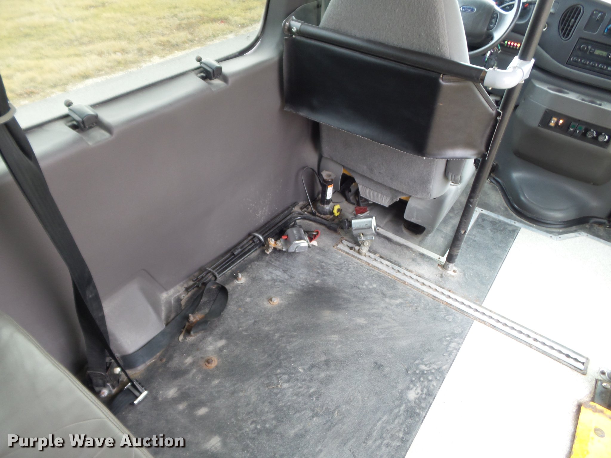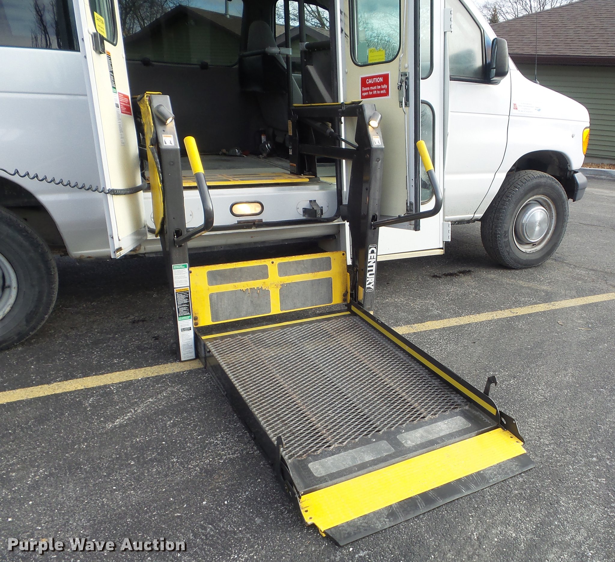 Purple Wave is selling a used Passenger Vehicle in Missouri. This item is a 2006 Ford E350 Super Duty van with the following: 93,872 miles on odometer, 5.4L V8 SOHC 16V gas engine, Automatic transmission, AC and heat, Cruise, AM/FM, Power windows and locks, Rear AC, 9 passenger capacity, Child safety seat, Braun ACL9171B wheelchair lift, Serial 0501098, Wheelchair tie down area, Carrier AC roof unit, Spring suspension, Hydraulic brakes, LT245/75R16 tires, GVWR 9,400 lbs, Dead battery, Non-operational backup camera, Front passenger door inoperable, Possible bad toggle switch, Wheelchair lift intermittently works, Possible bad safety switch