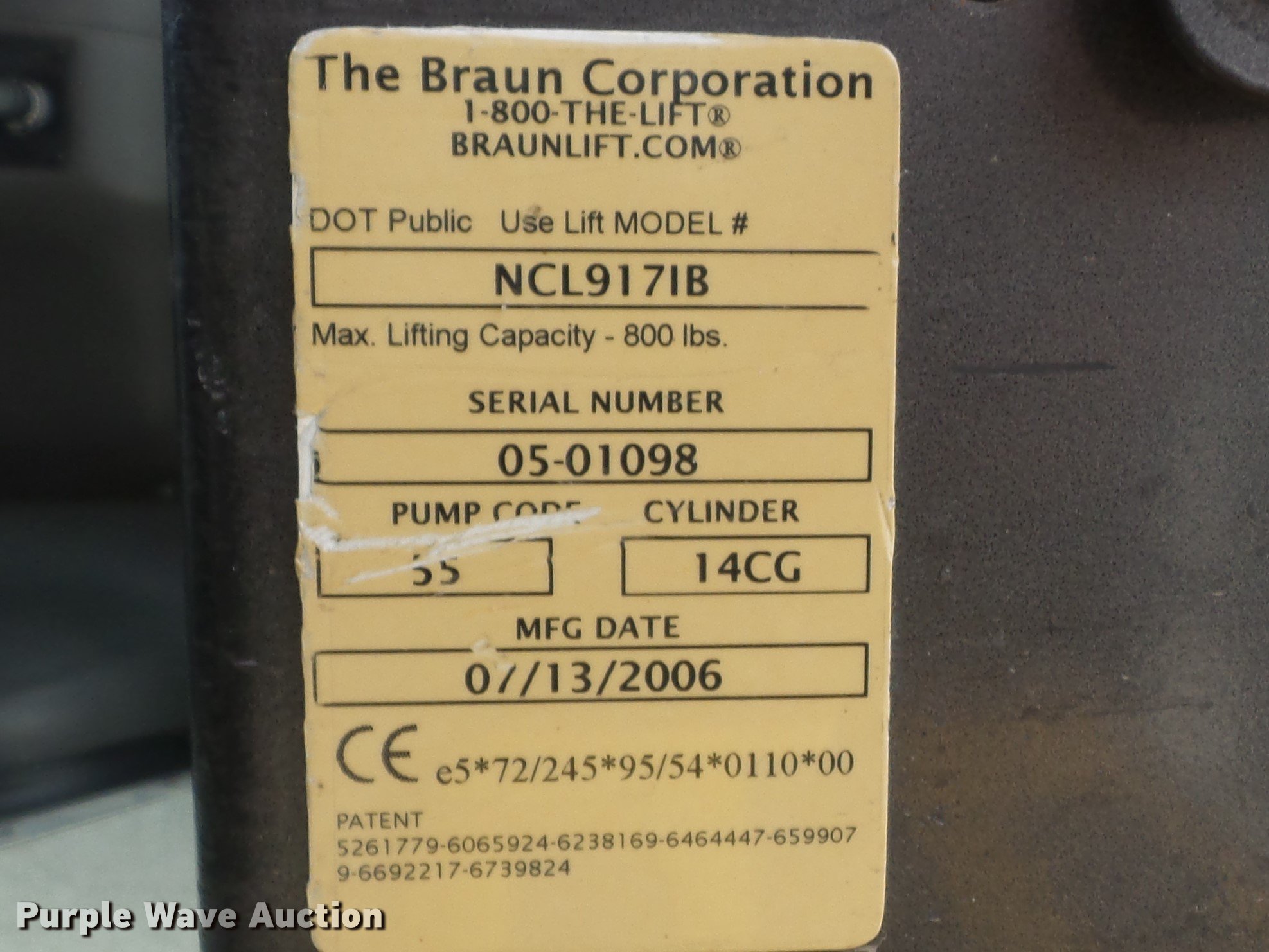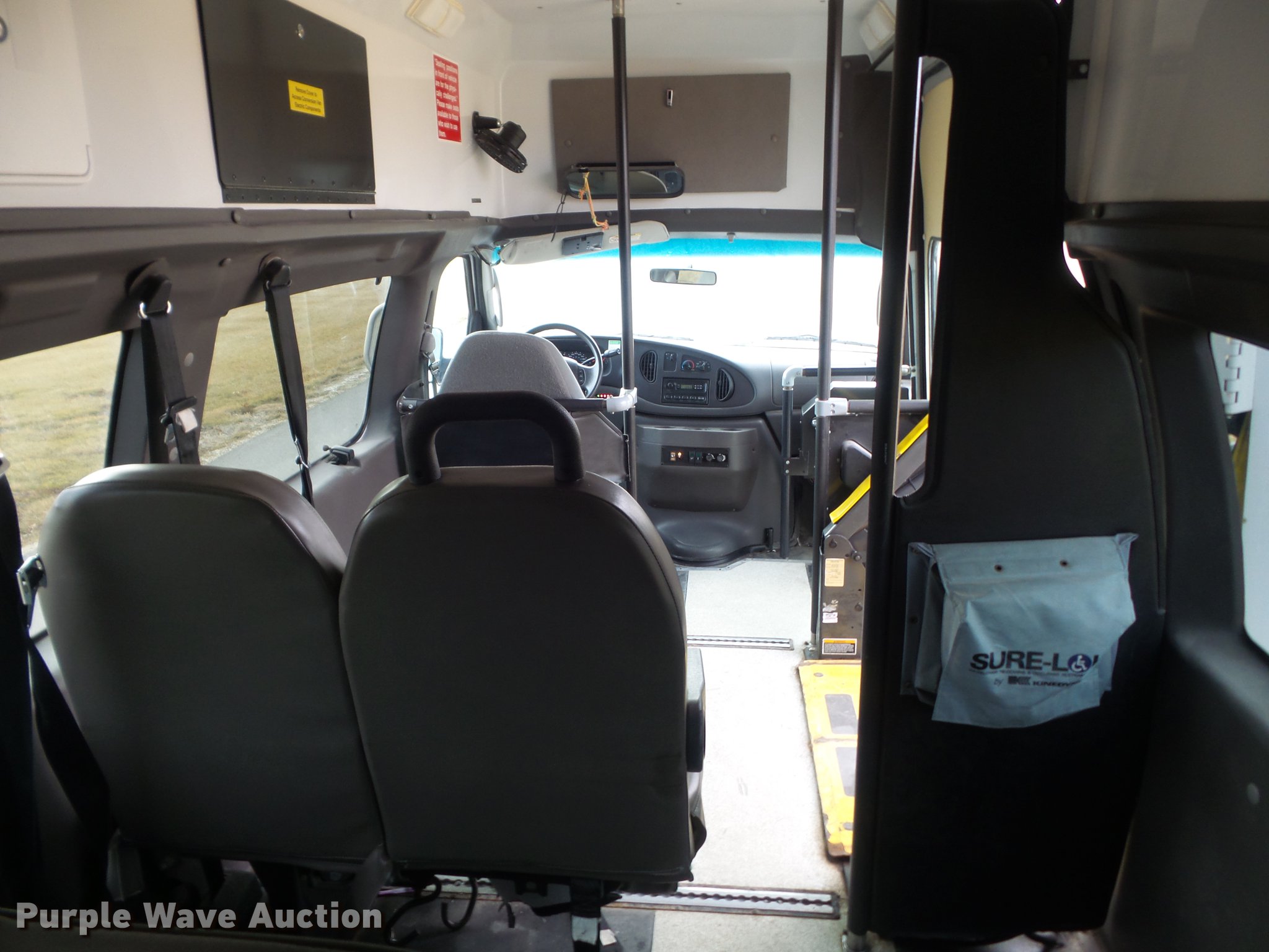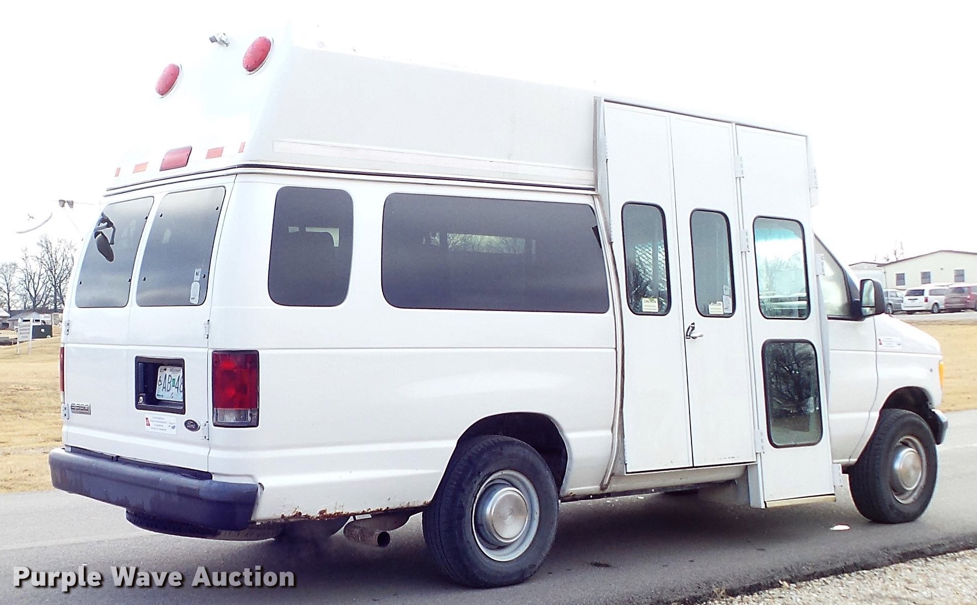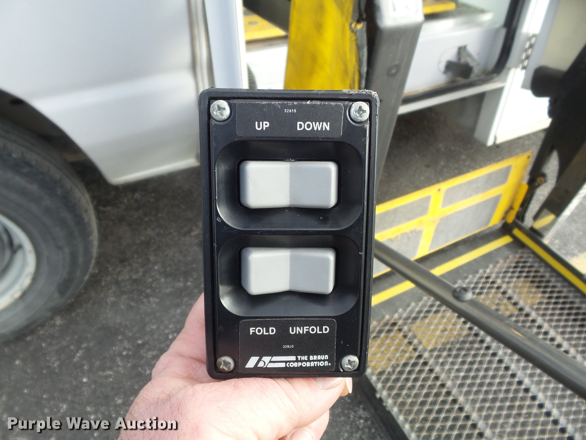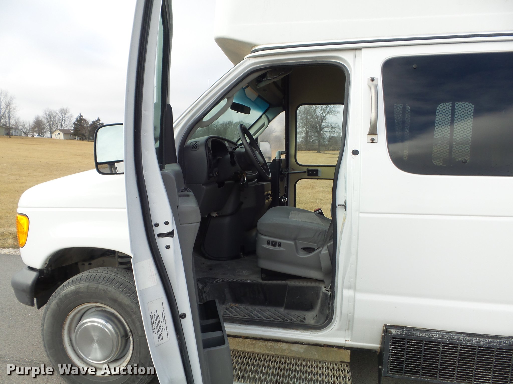 Purple Wave is selling a used Passenger Vehicle in Missouri. This item is a 2006 Ford E350 Super Duty van with the following: 93,872 miles on odometer, 5.4L V8 SOHC 16V gas engine, Automatic transmission, AC and heat, Cruise, AM/FM, Power windows and locks, Rear AC, 9 passenger capacity, Child safety seat, Braun ACL9171B wheelchair lift, Serial 0501098, Wheelchair tie down area, Carrier AC roof unit, Spring suspension, Hydraulic brakes, LT245/75R16 tires, GVWR 9,400 lbs, Dead battery, Non-operational backup camera, Front passenger door inoperable, Possible bad toggle switch, Wheelchair lift intermittently works, Possible bad safety switch