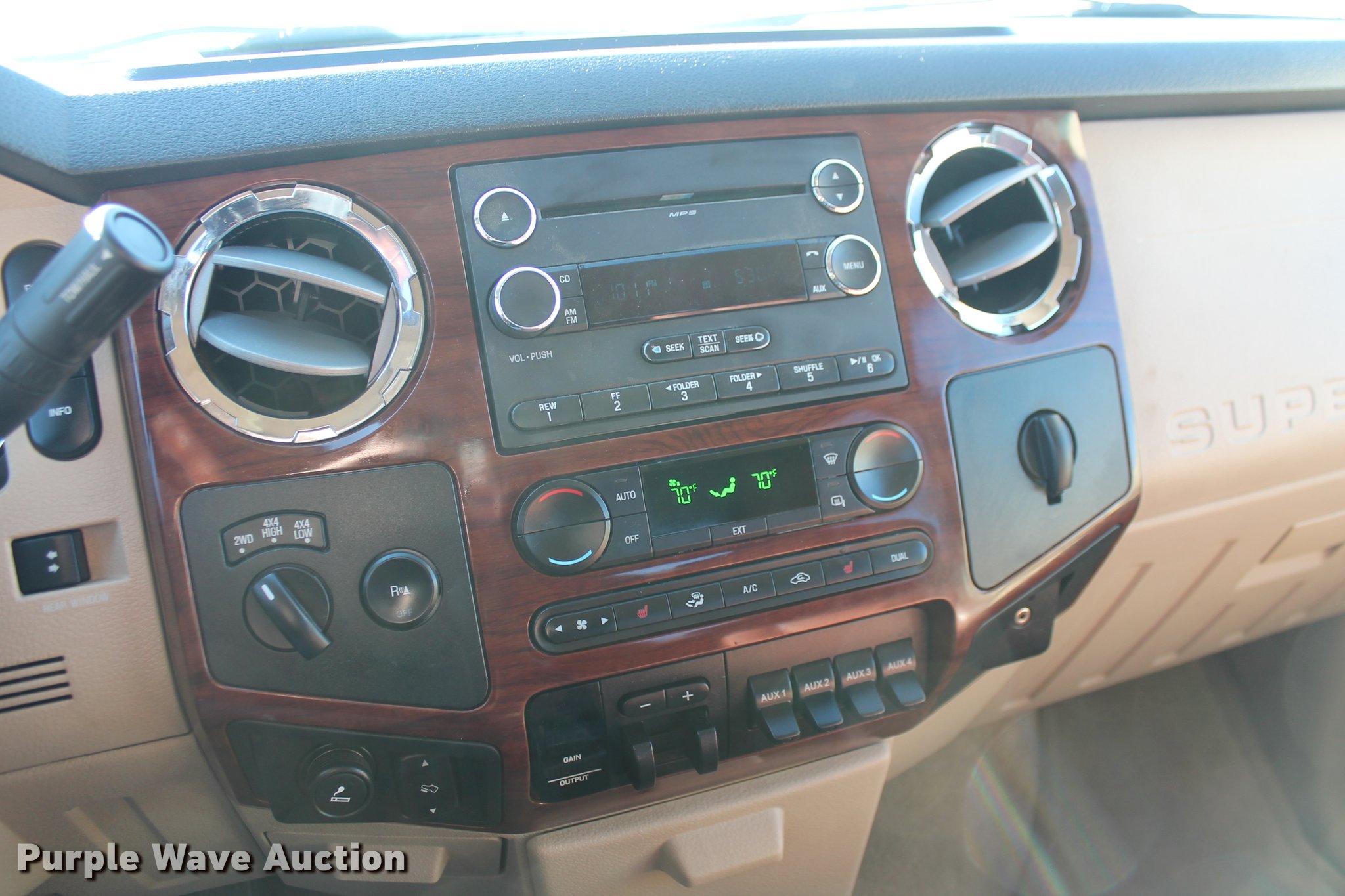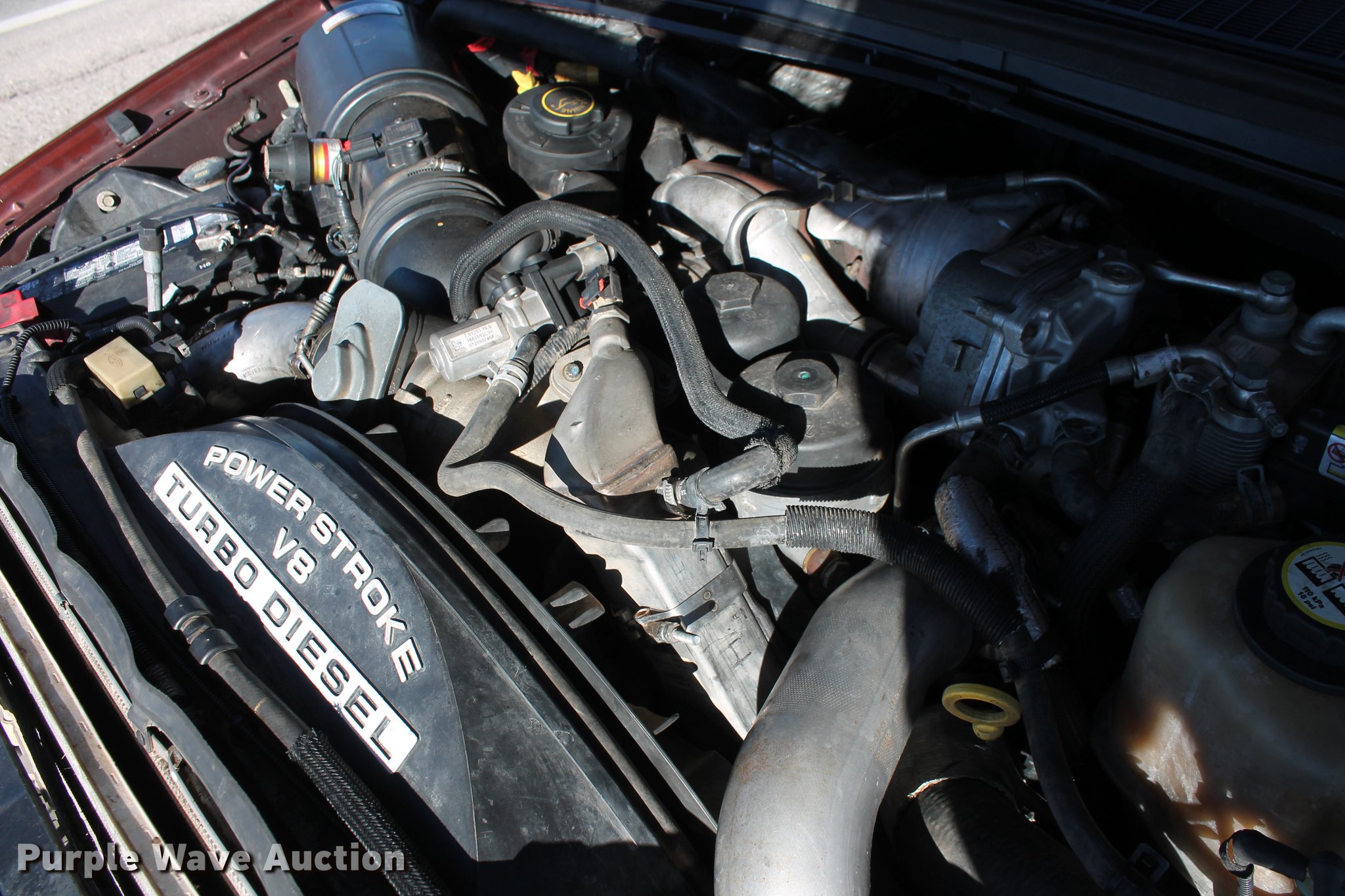 Purple Wave is selling a used 3/4 or 1 Ton Pickup or Van in Oklahoma. This item is a 2008 Ford F350 Super Duty King Ranch Crew Cab pickup truck with the following: 68,034 miles on odometer, 6.4L V8 OHV 32V turbo diesel engine, Automatic transmission, Four wheel drive, AC and heat, Tilt, Cruise, AM/FM/CD, Power locks, windows, mirrors, and seats, Heated seats, Leather interior, Backup camera, Front tow hooks, Running board, Ranch Hand grill guard, Ranch Hand rear bumper, Bed liner, Receiver hitch, Trailer wiring, 245/75R17 tires