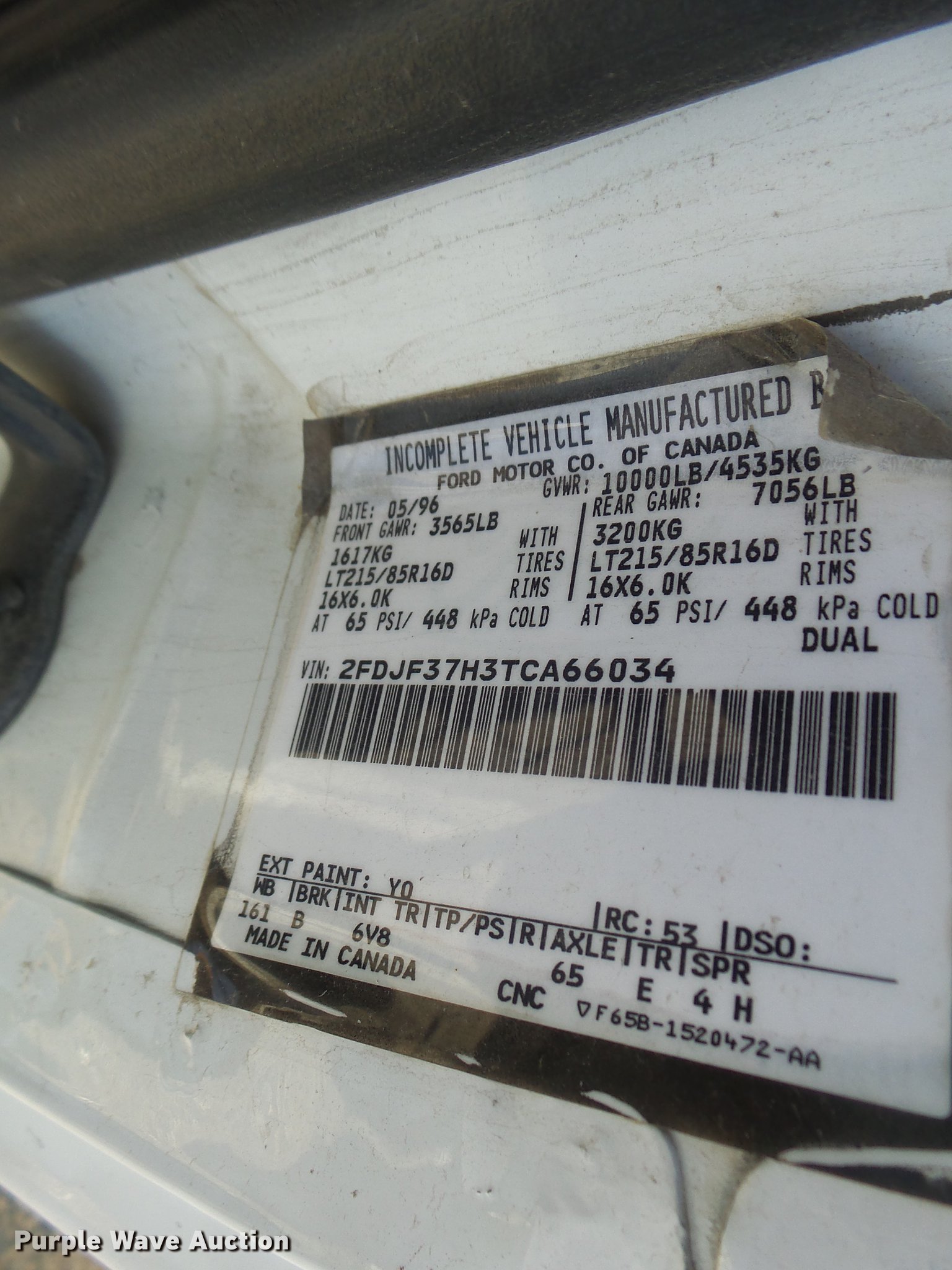 Purple Wave is selling a used 3/4 or 1 Ton Pickup or Van in Missouri. This item is a 1996 Ford F350 flatbed pickup truck with the following: 94,785 miles on odometer, 5.8L V8 OHV 16V gas engine, Automatic transmission, AC and heat, Tilt, Cruise, AM/FM, Vinyl interior, Front tow hooks, 10'L x 8'W flatbed, Toolbox, Receiver hitch, 215/85R16 tires, Right front tire flat, Unit# 6302