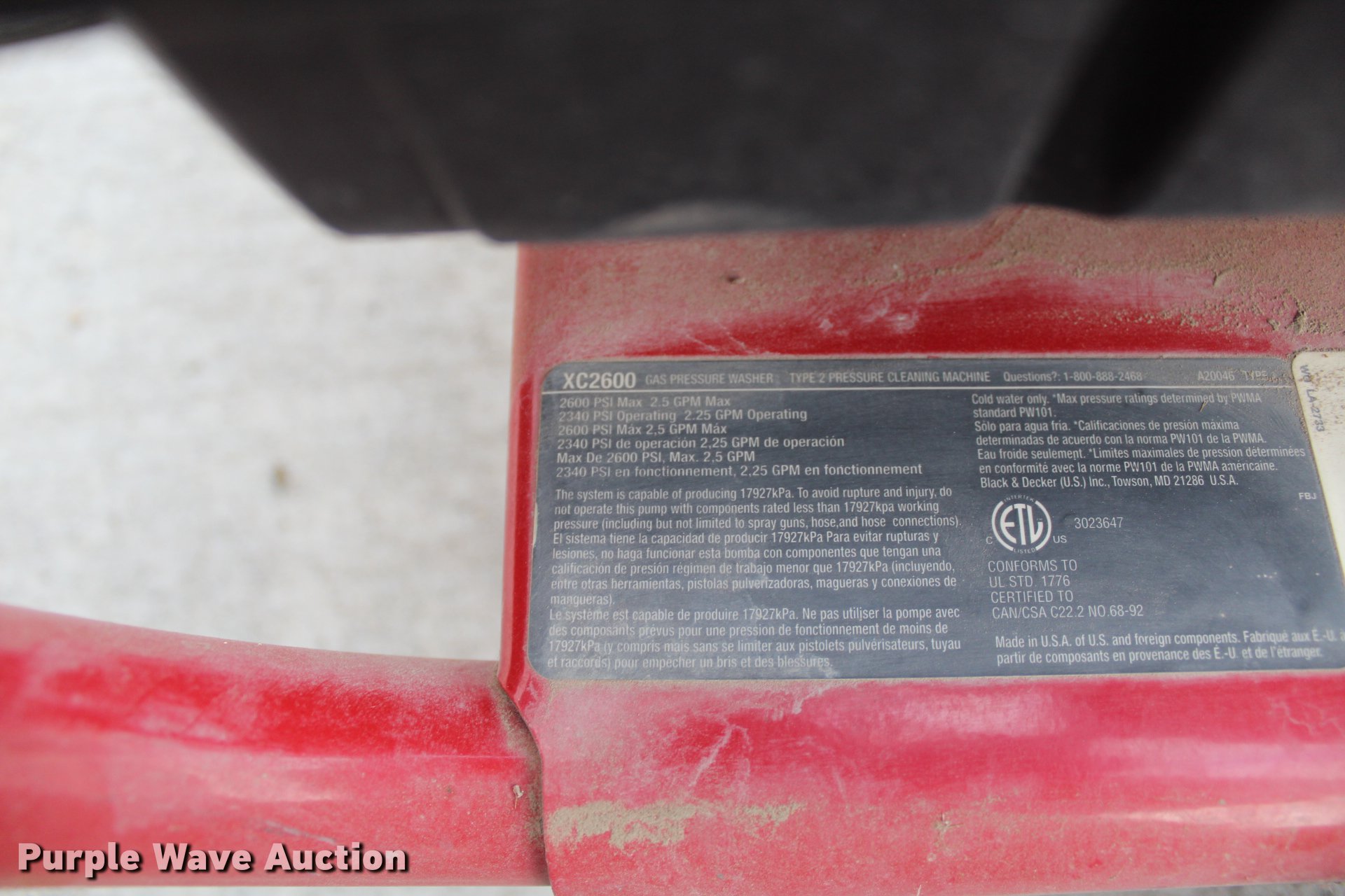 Purple Wave is selling a used Pressure Washer in Kansas. This item is a Excell XC2600 pressure washer with the following: Honda GC160 gas engine, 5 HP, 2.5 gpm, 2,600 max psi, Serial 1100169624