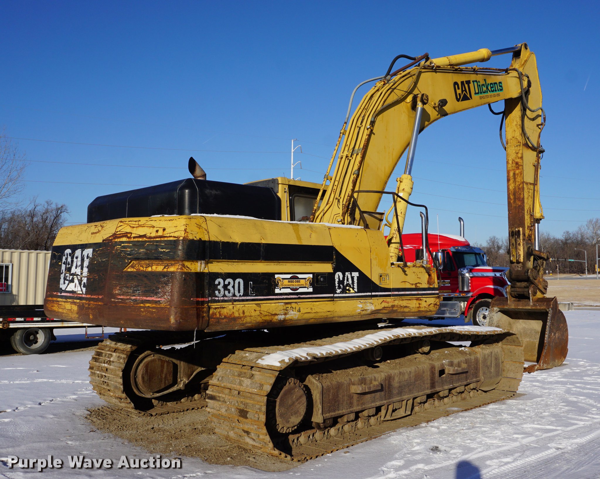 Purple Wave is selling a used Hydraulic Excavator in Kansas. This item is a 1993 Caterpillar 330 L excavator with the following: 16,735 hours on meter, Cateripilar 3306 10.5L six cylinder turbo diesel engine, 222 HP, Serial 08Z73989, Hydrostatic transmission, EROPS, Heat, Suspension seat, Standard boom, 12'10" stick length, CF 56"W bucket, (5) weld-on teeth, JRB hydraulic quick coupler, Two-way auxiliary hydraulics, 33.5"W steel triple grouser track pads, Thumb mounting plate not included, Serial 8FK00523