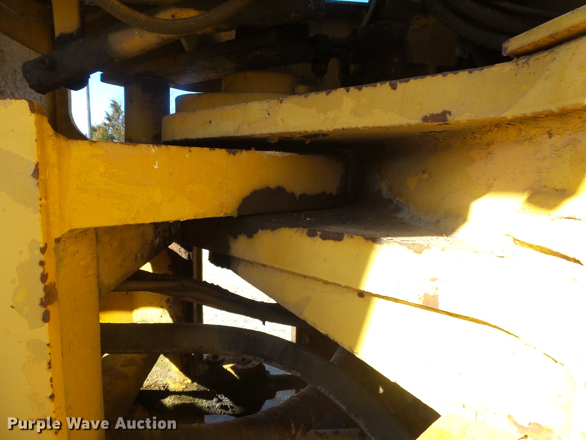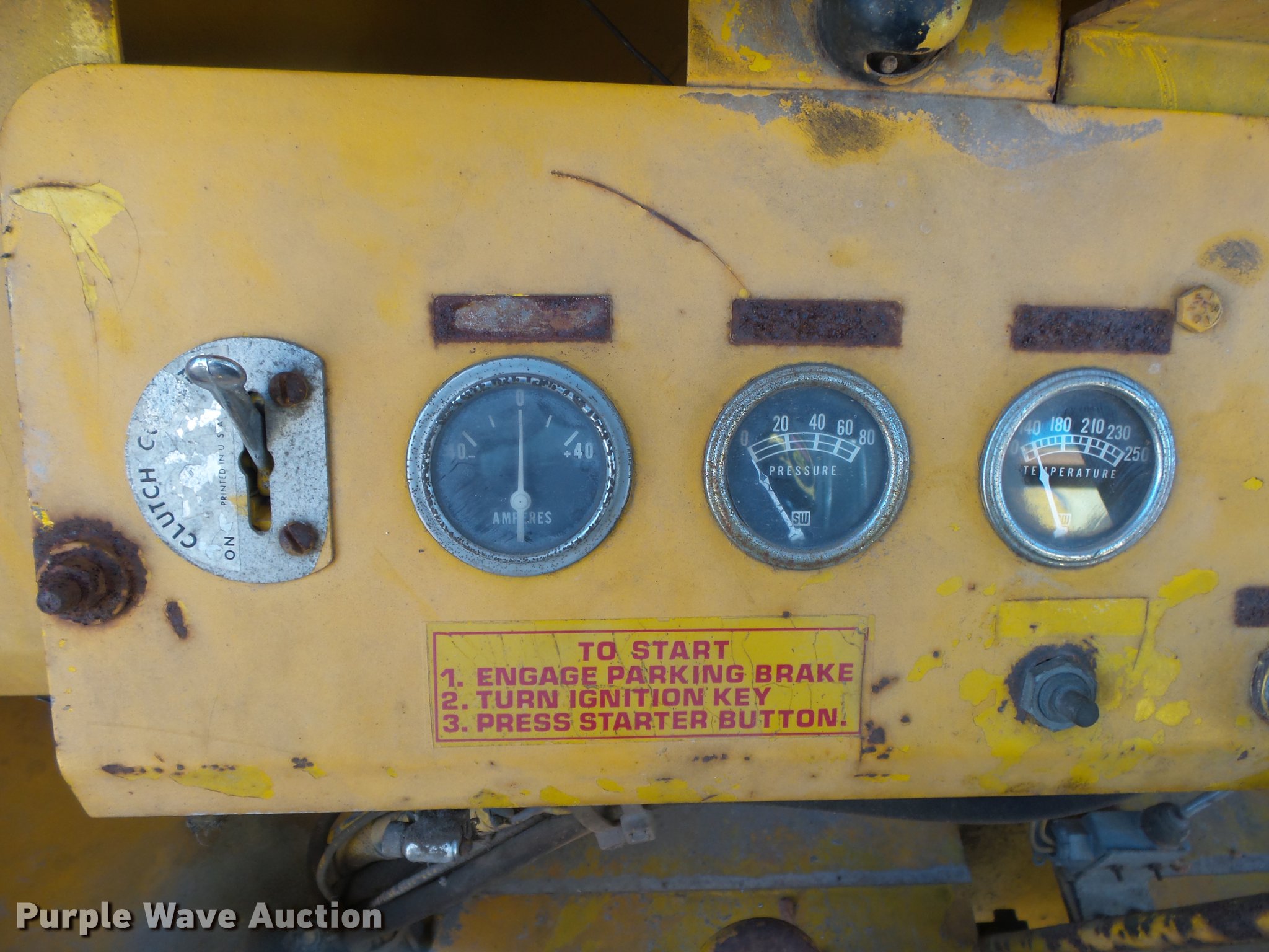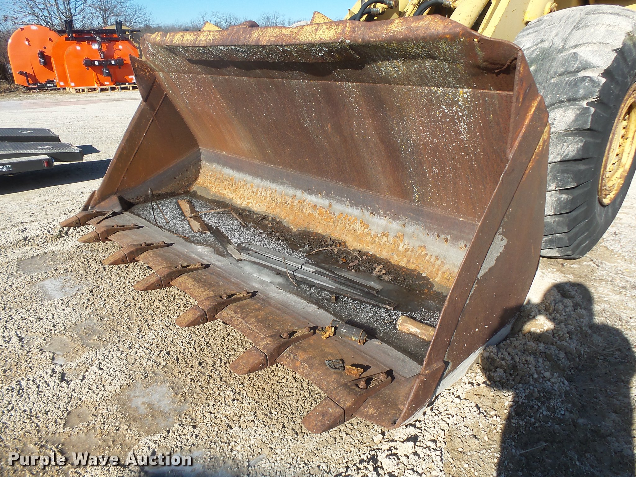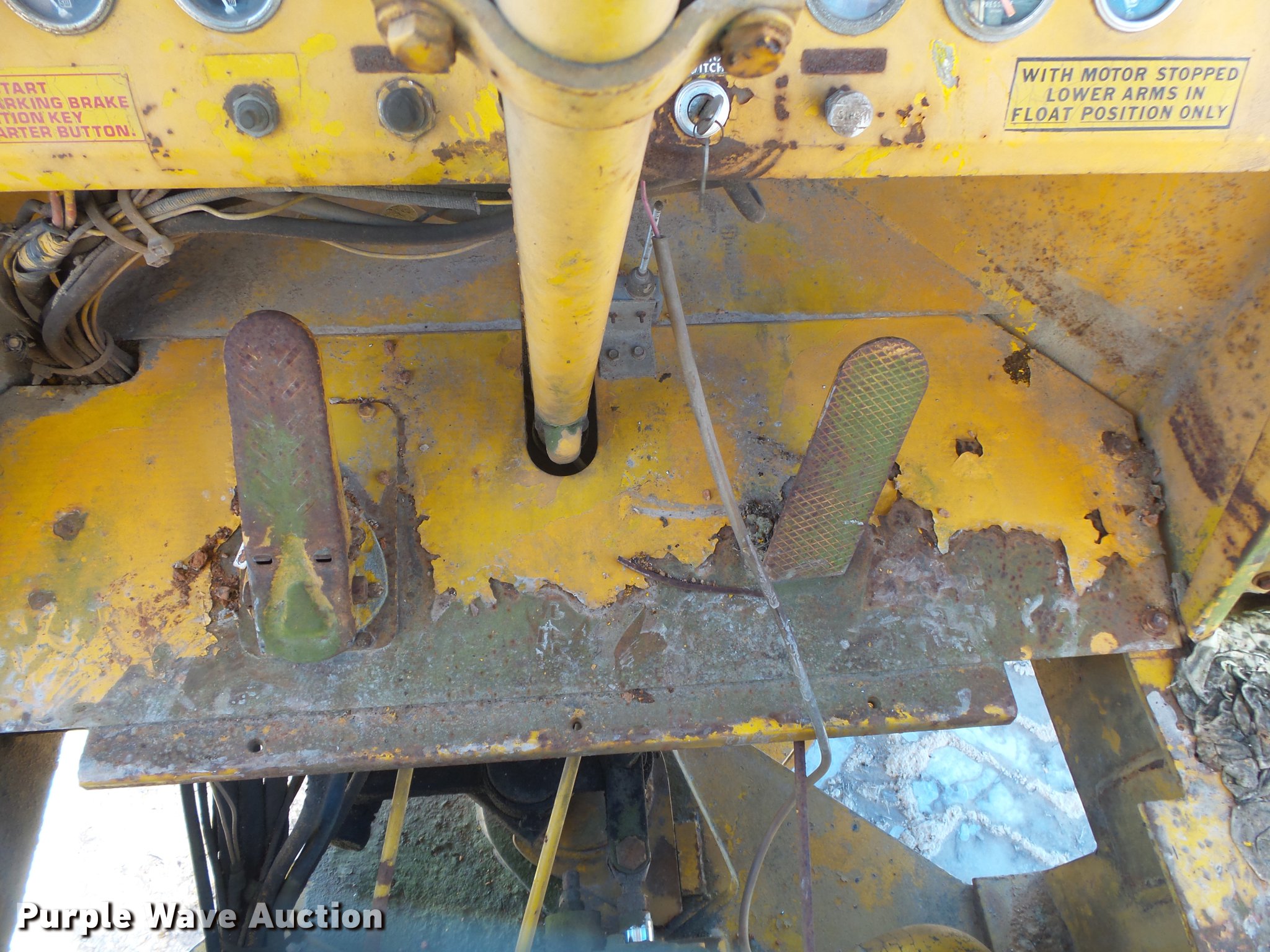 Purple Wave is selling a used Wheel Loader in Missouri. This item is a Trojan 4000 wheel loader with the following: 1,517 hours on meter, Detroit Diesel eight cylinder diesel engine, Shuttle shift transmission, 3F-3R gears, Enclosed cab, Suspension seat, Two-lever bucket controls, Front work lights, 125"W general purpose bucket, Weld-on cutting edge, (7) teeth, Self-leveling, Manual quick coupler, 26.5-25 tires, Battery dead, Transmission issues, Unit will not go into forward gears