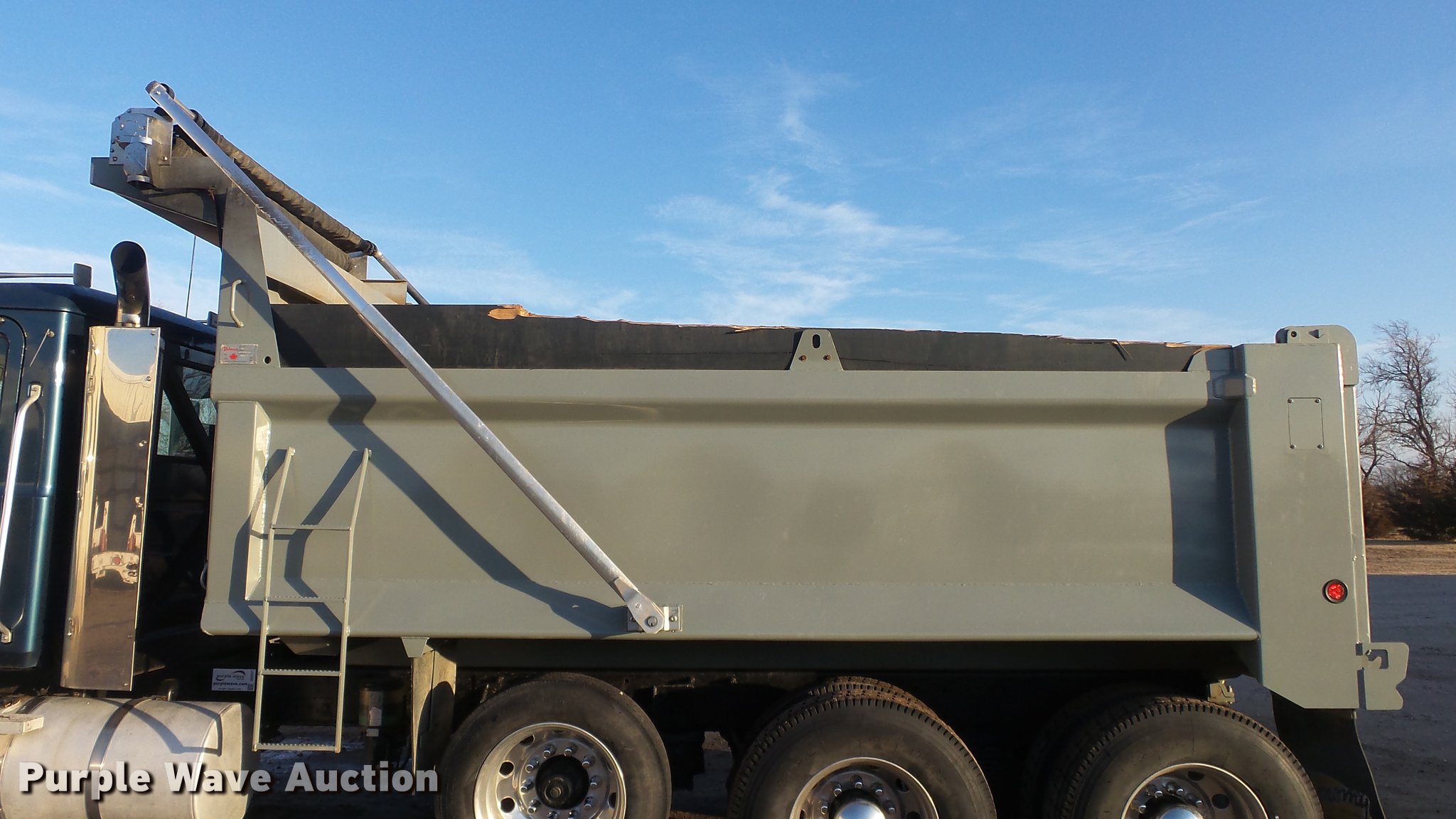 Purple Wave is selling a used Construction Dump Truck in Kansas. This item is a 2007 Mack CV713 dump truck with the following: 241,388 miles on odometer, 14,222 hours on meter, Miles and hours may vary, unit is still in use, Mack E7 12.0L L6 turbo diesel engine, 18 speed manual transmission, Tandem axle, Inter-axle differential lock, AC and heat, Cruise, AM/FM/CD, Air suspension seat, Exterior visor, PTO, Bibeau BFL-S steel dump bed, 15'L x 96"W, 41" side height, Single ram hoist, Air operated end gate, Roll tarp, Single fuel tank, Camel back suspension, Air brakes, Engine brake, 385/65R22.5 front tires, 11R22.5 rear tires, GVWR 62,000 lbs, FAWR 18,000 lbs, IAWR 22,000 lbs, RAWR 22,000 lbs