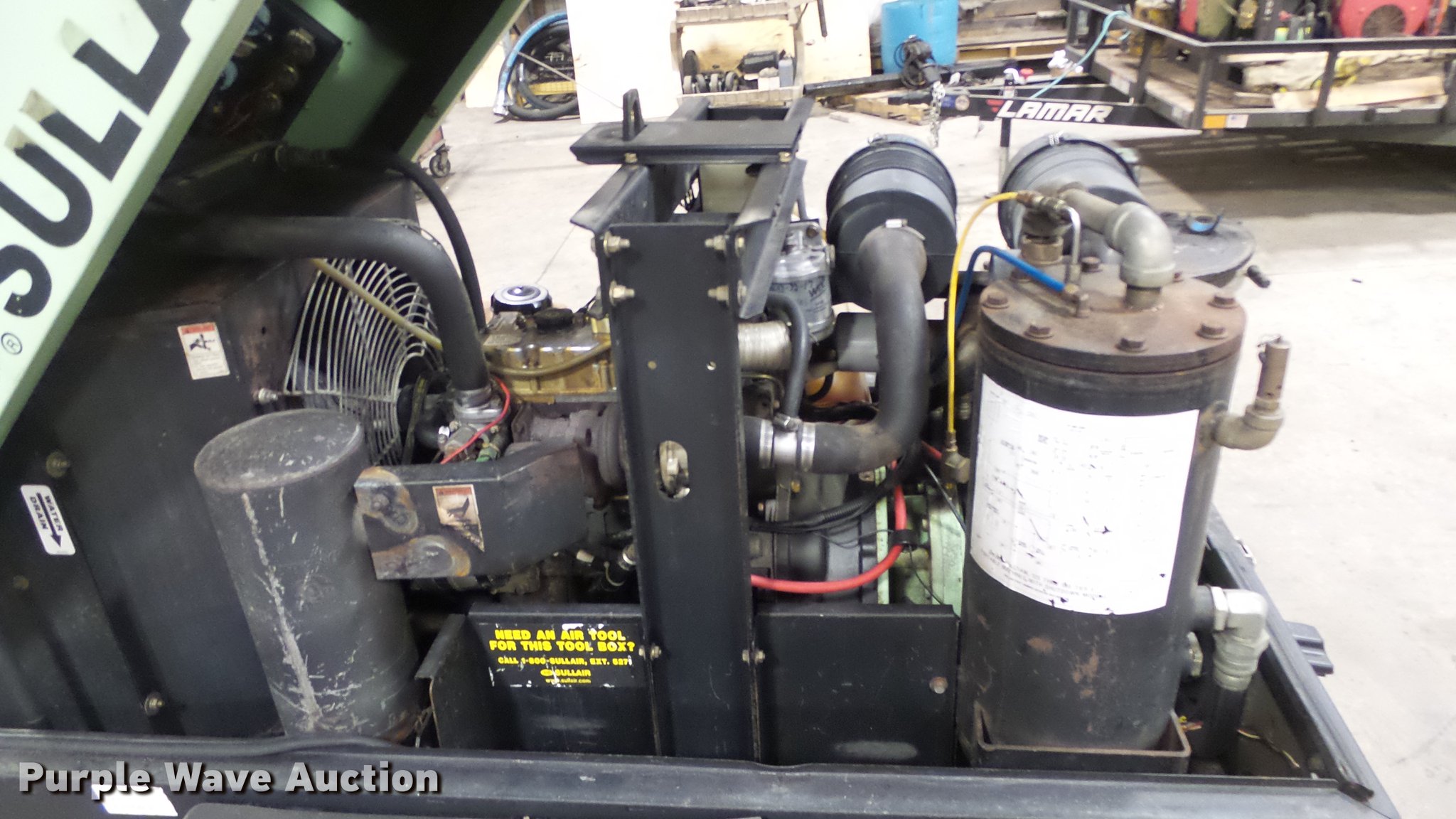 Purple Wave is selling a used Air Compressor in Kansas. This item is a Sullair 185 air compressor with the following: 1,291 hours on meter, Four cylinder diesel engine, 185 CFM, Pintle hitch, 175/80R13 tires