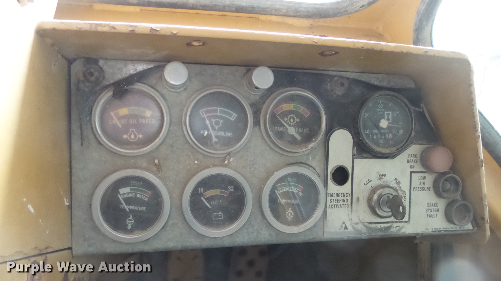 Purple Wave is selling a used Wheel Loader in Kansas. This item is a Fiat-Allis FR20 wheel loader with the following: 14,149 hours on meter, Cummins six cylinder diesel engine, Powershift transmission, 4F-1R gears, Enclosed cab, Worklights, Two-lever bucket controls, General purpose bucket, Four cu. yd. capacity, 26.5-25 tires, Hour meter and gauges inoperable, Brakes need work, Serial 18500869