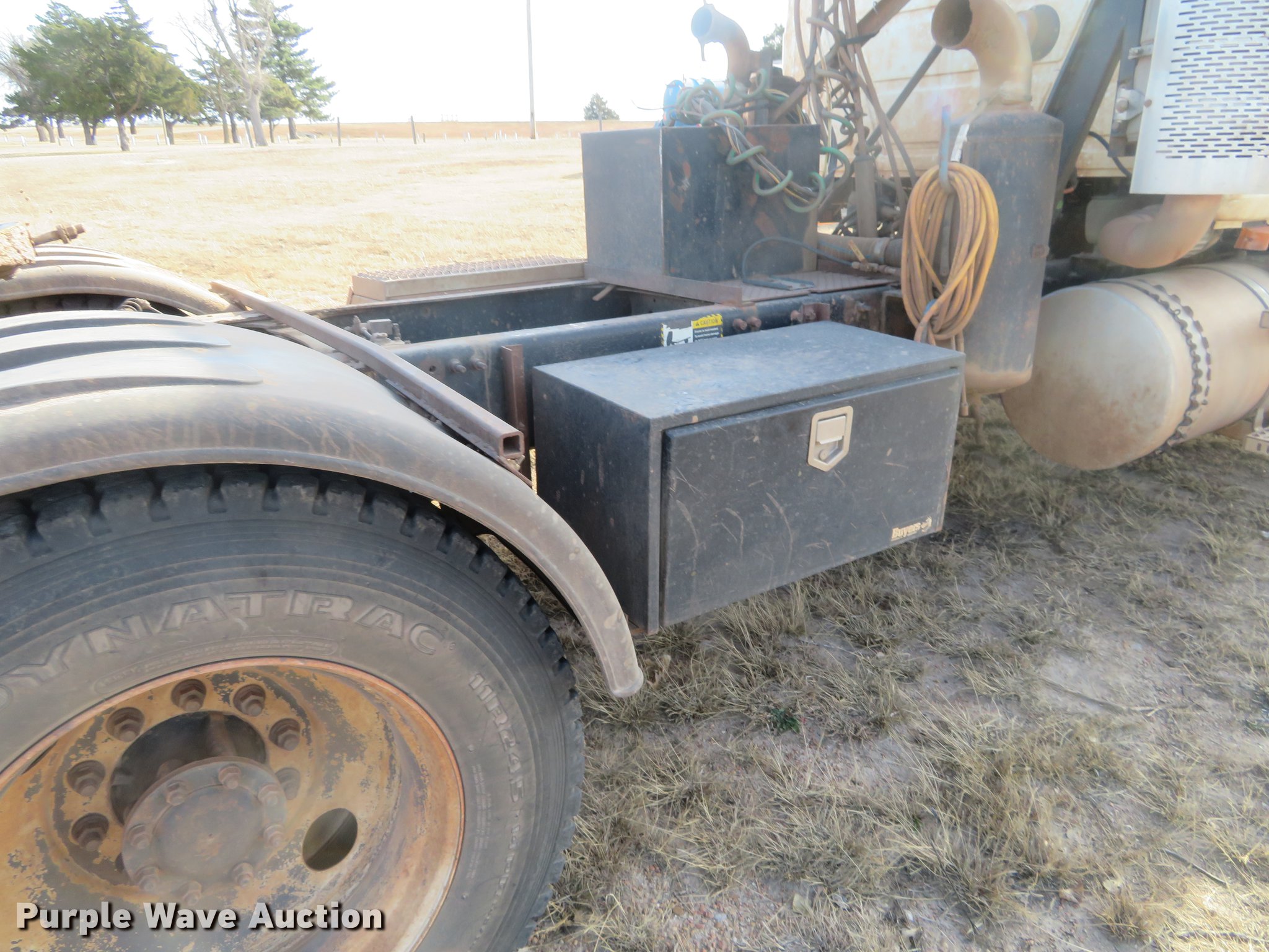 2009 Mack CHU613 semi truck. 362,974 miles on odometer, Mack MP8 12.7L L6 diesel engine, Eight speed manual transmission, Tandem axle, Heat, AM/FM, Power windows and locks, Air suspension seat, PTO, NVE vacuum pump, Exterior visor, Single rear exhaust stack, Air suspension, Air brakes, 11R24.5 tires, Unit# 46. Kansas title. 1M1AN07Y09N004194. Great Plains Fluid Services. Greensburg, KS 67054