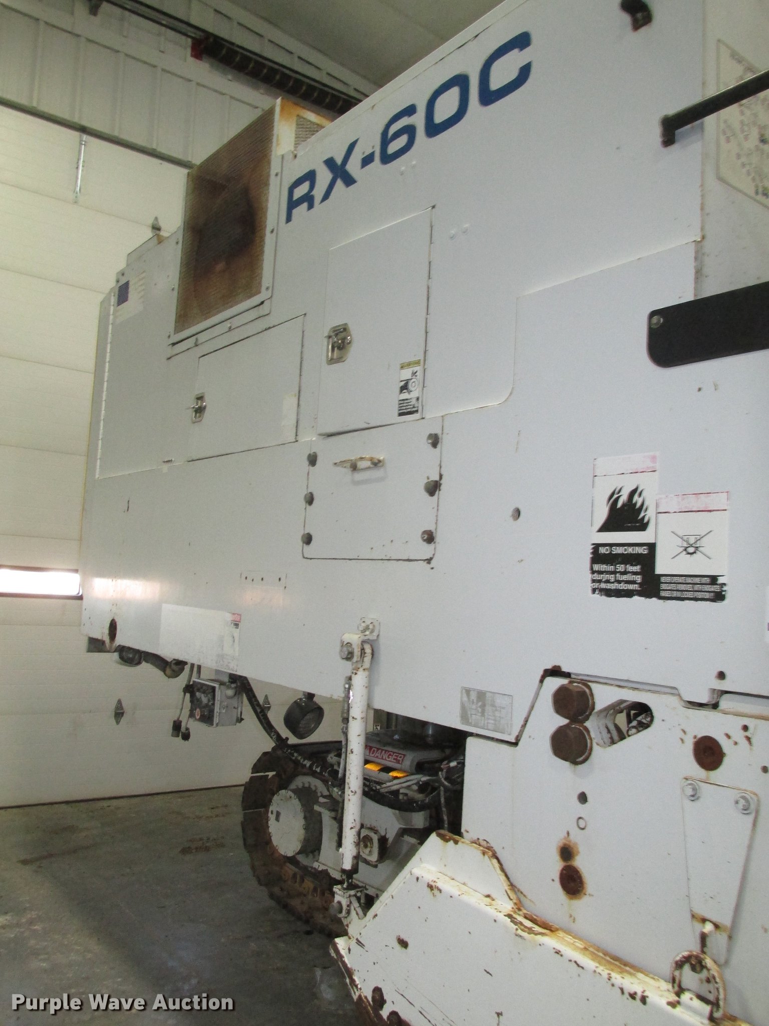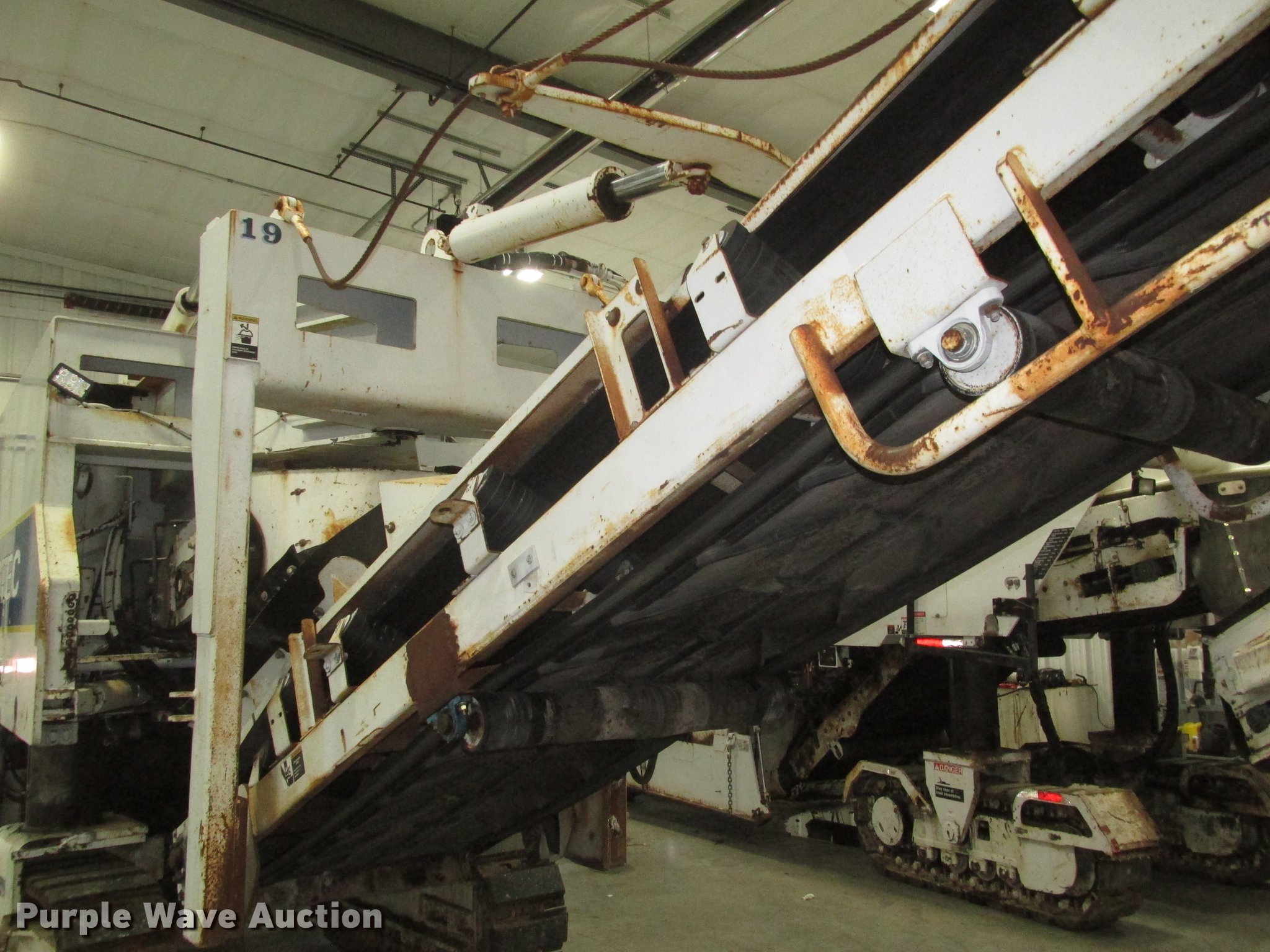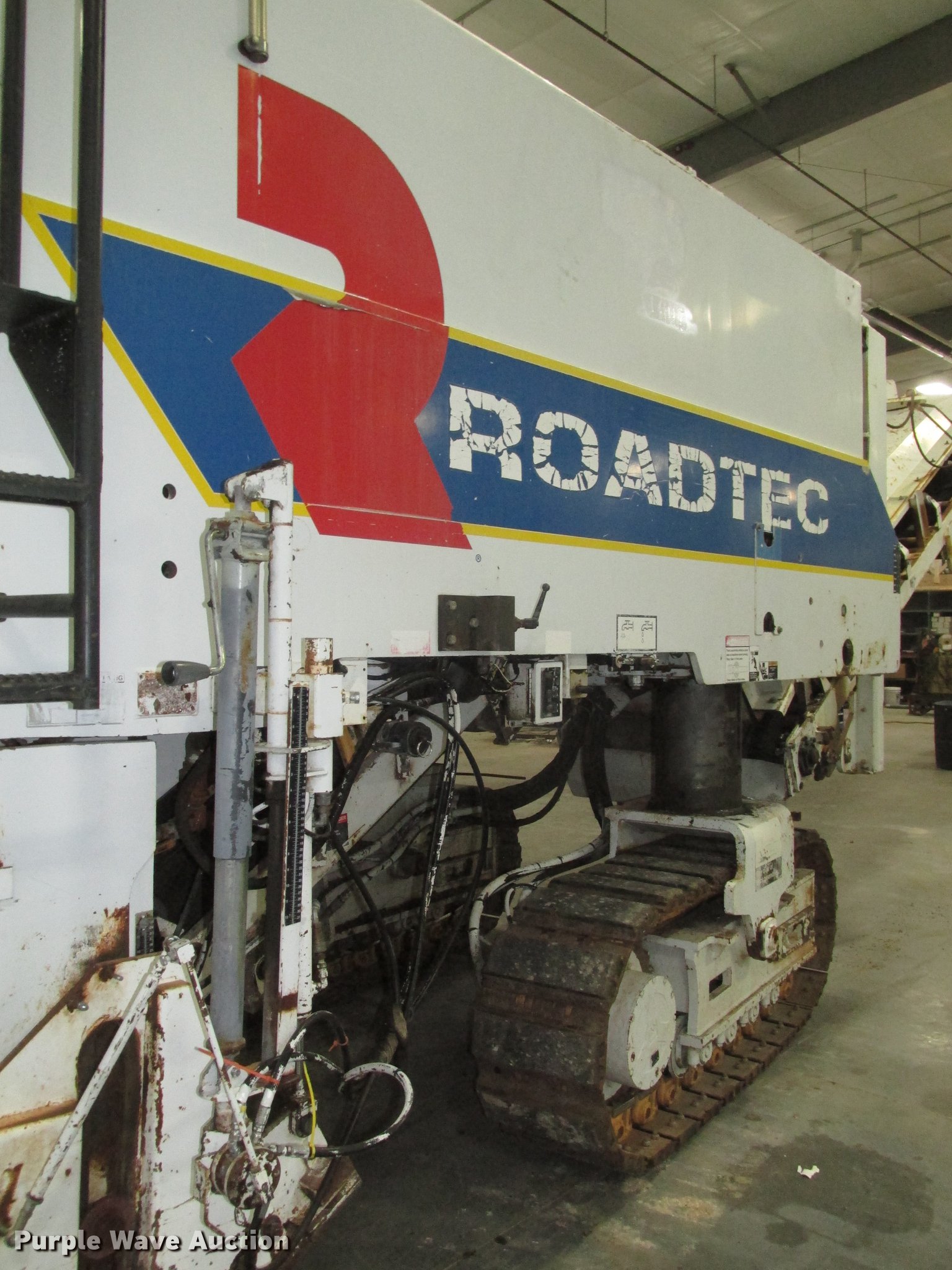Purple Wave is selling a used Planer or Milling Machine in Nebraska. This item is a 2002 Roadtec RX60C pavement miller with the following: Caterpillar 3412 27.0L turbo diesel engine, Dual operator stations, 7'W mill drum, Approximately 24'L x 41 5/8"W cleated discharge belt, Five single track bottom rollers, Four twin track bottom rollers, 16"W tracks, Serial RX60C142, Unit# 19