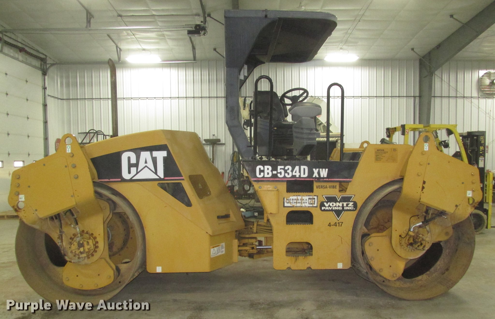 Purple Wave is selling a used Double Drum Roller Compactor in Nebraska. This item is a 2003 Caterpillar CB534D XW double drum vibratory roller with the following: 190 hours on meter, Caterpillar four cylinder diesel engine, Two speed hydrostatic transmission, OROPS, Suspension seat, Work lights, 78 3/4"W x 50 3/4" diameter smooth drums, Front and rear drum scrapers, Front and rear water application, Double vibratory system, Dual propel system, Drum wipers, Serial CATCB534CEAA00171, Unit# 4-417