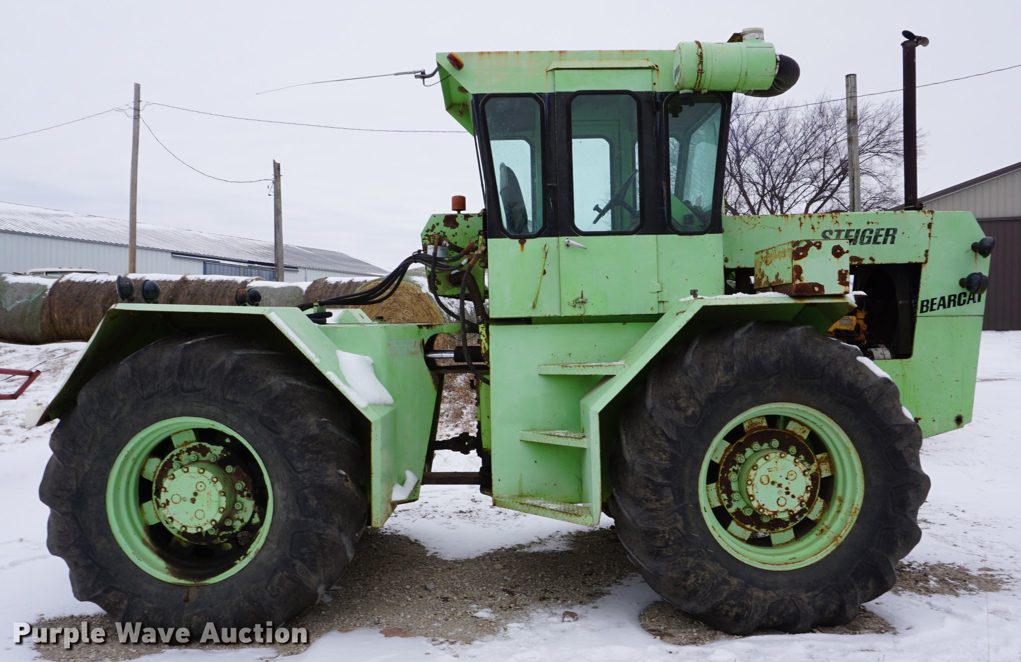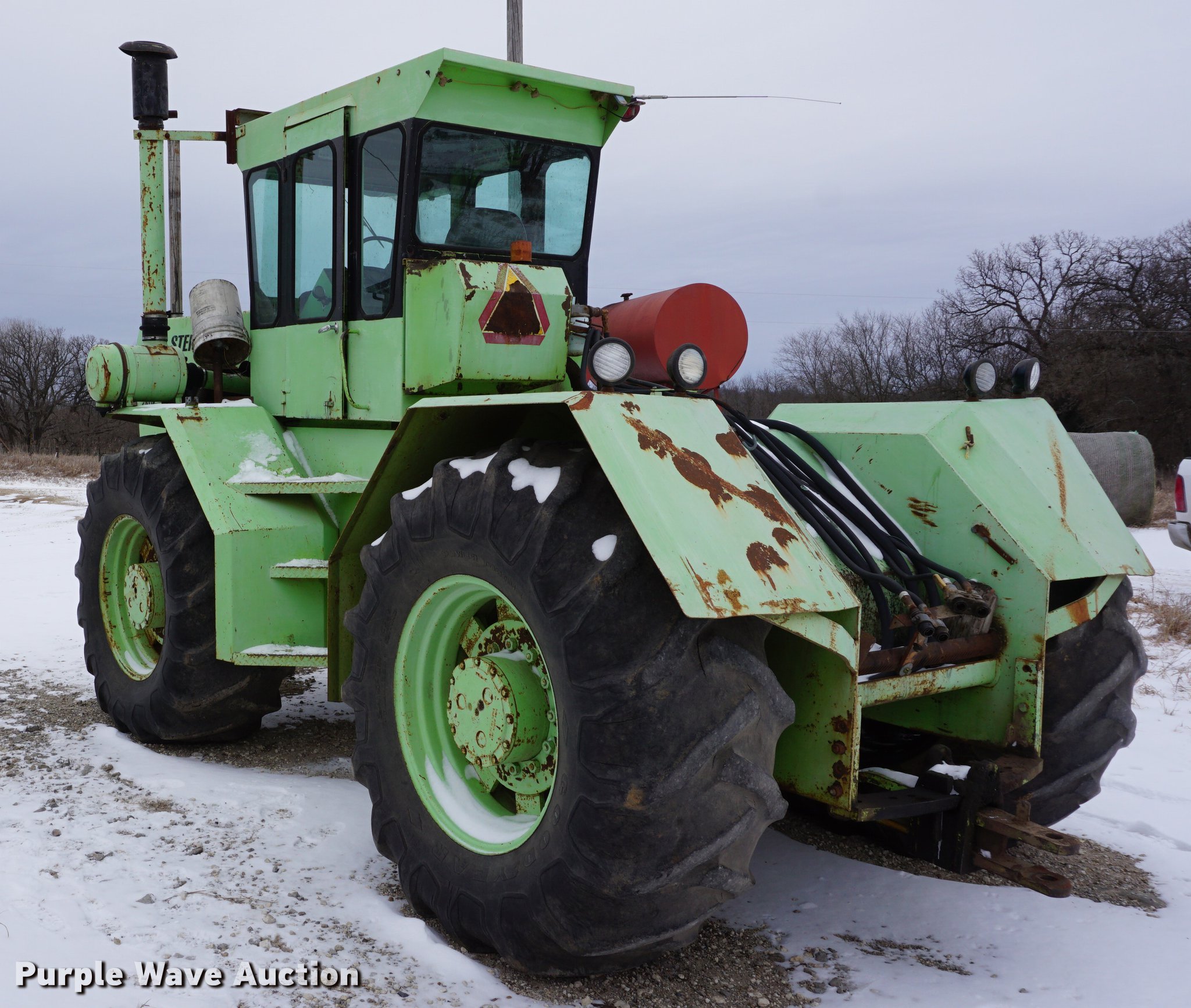 Purple Wave is selling a used Articulated 4-Wheel Drive Tractor in Kansas. This item is a 1972 Steiger Super Wildcat 4WD tractor with the following: 460 hours on meter, Caterpillar 3208 eight cylinder diesel engine, Manual transmission, 10F-2R gears, Heat, AM/FM, (2) rear hydraulic remote sets, 24.5-32 tires, Serial 8519