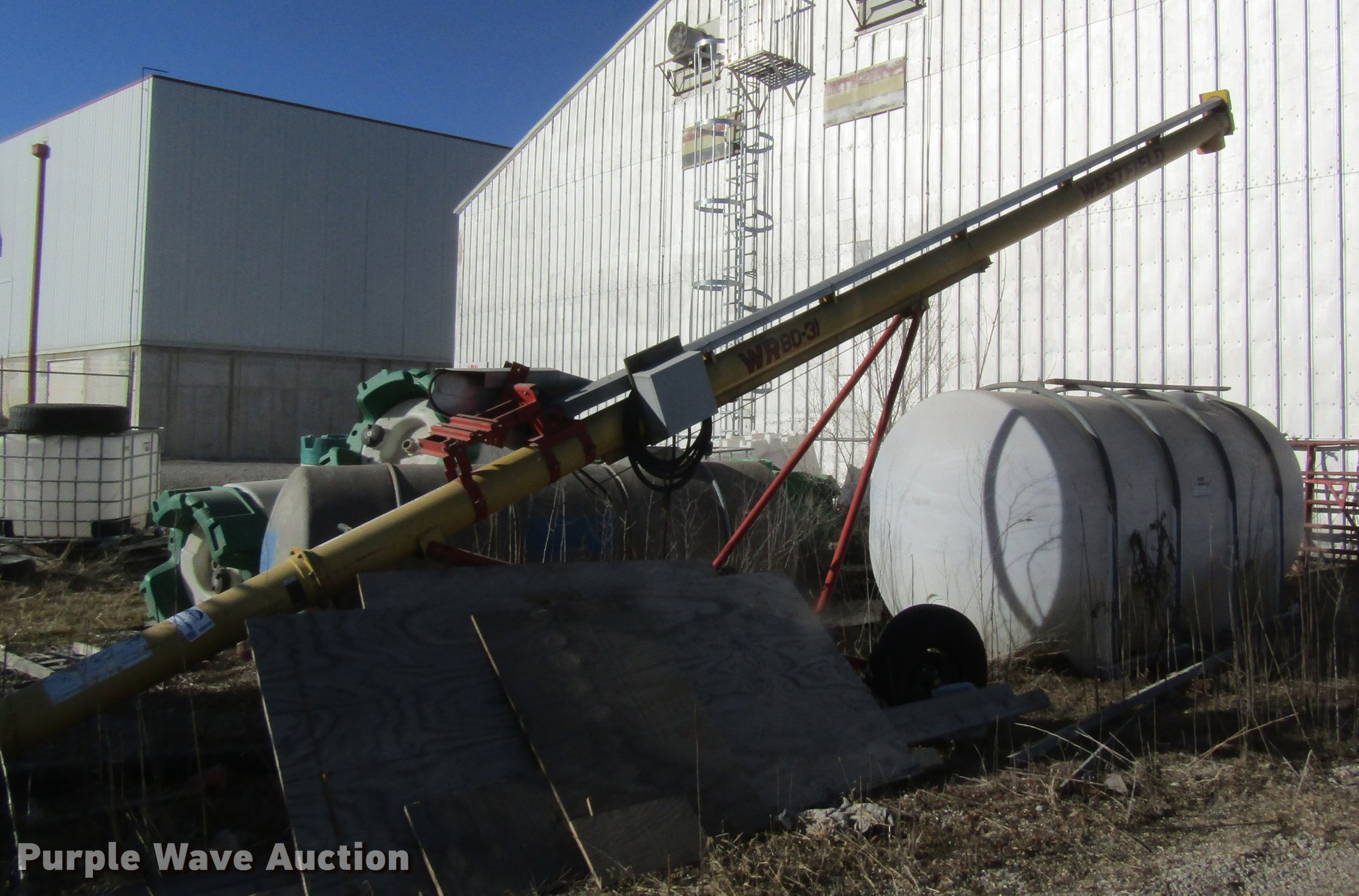 Purple Wave is selling a used Auger or Conveyor in Missouri. This item is a Westfield 80-31 grain auger with the following: 31'L x 8" diameter, 235/75R15 tires, No electric motor