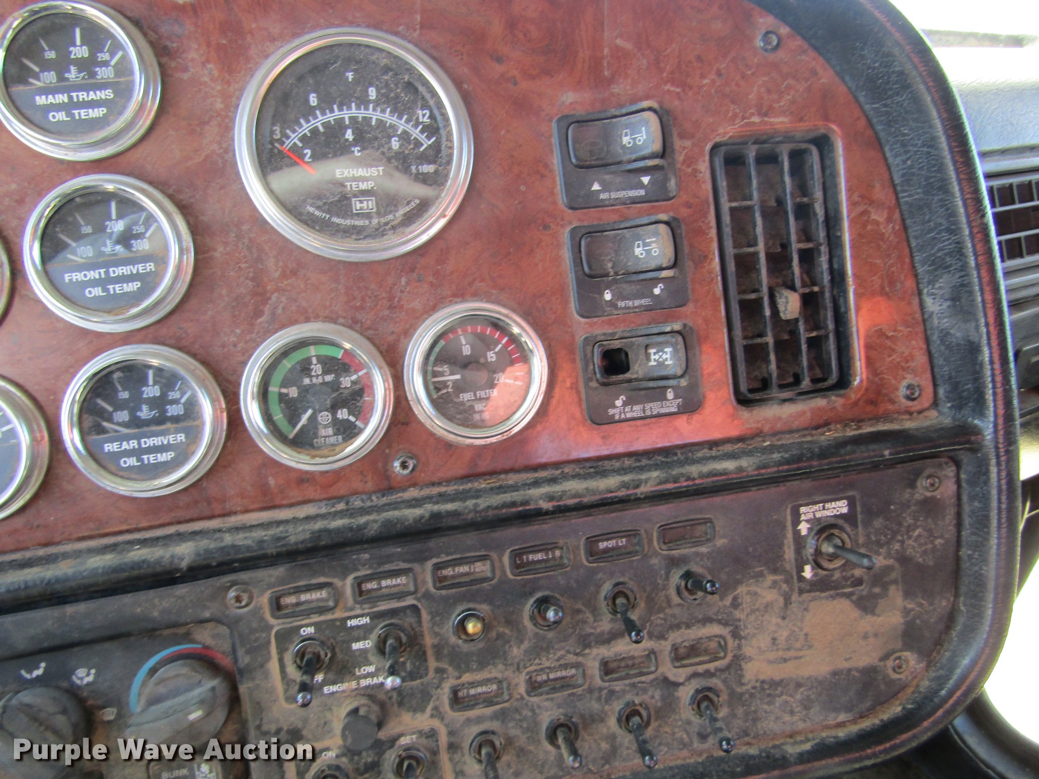 Purple Wave is selling a used Manure Spreader Truck in Kansas. This item is a 2001 Peterbilt 379 manure spreader truck with the following: 39,272 miles on odometer, Caterpillar C15 14.6L L6 turbo diesel engine, Serial 6NZ39978, Eaton Fuller 10 speed manual transmission, Tandem axle, Heat, AM/FM/cassette, Power and heated mirrors, Air suspension seat, PTO, Exterior visor, Dual rear exhaust stacks, Mohrlang XHD20 steel manure spreader box, 21'L x 96"W, 36" side height, (3) 24"W floor chains, Dual rear spinner bars, Serial 1940, Single fuel tank, Mud flaps, Air suspension, Air brakes, 285/75R24.5 tires, GVWR 50,000 lbs, FAWR 12,000 lbs, IAWR 19,000 lbs, RAWR 19,000 lbs, Oil leaks, Windshield broken, Spring support to axle a shear bolt is broken on front steering