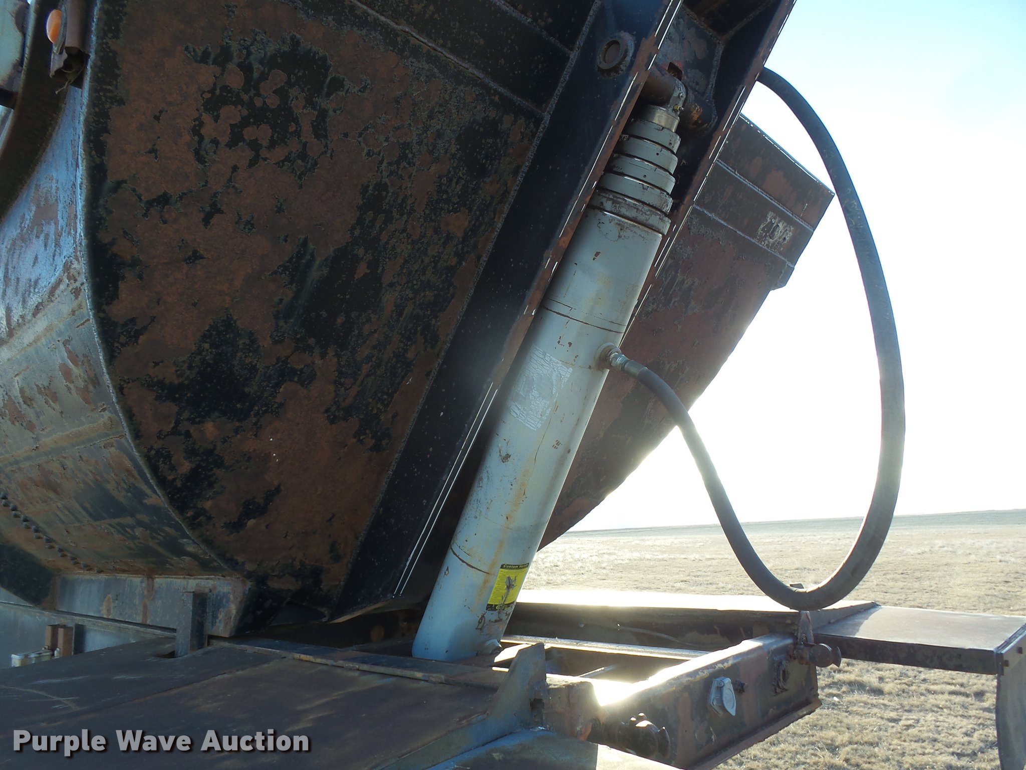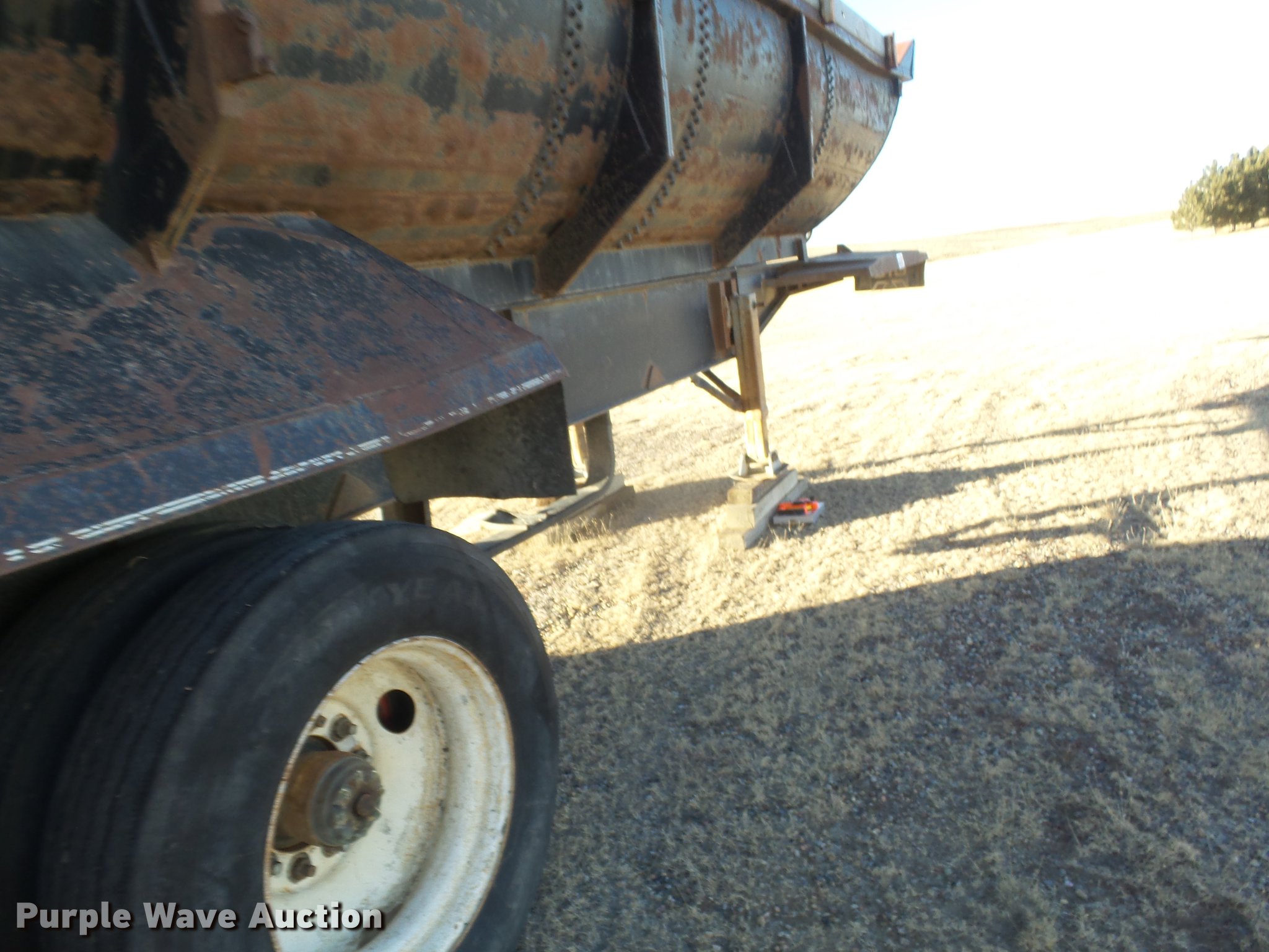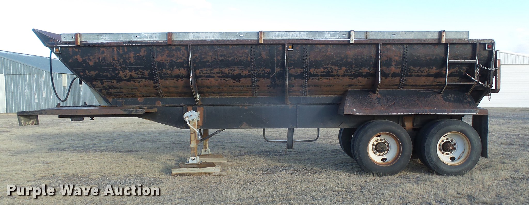 Purple Wave is selling a used End Dump Rock Trailer in Colorado. This item is a 1974 Hobbs end dump trailer with the following: 30'L x 96"W, 54" side height, 56" floor height, Single hydraulic cylinder, End gate, Steel construction, Gooseneck hitch, Dual leg two speed landing gear, Spring suspension, Air brakes, Tandem axle, Steel wheels, 11R24.5 tires