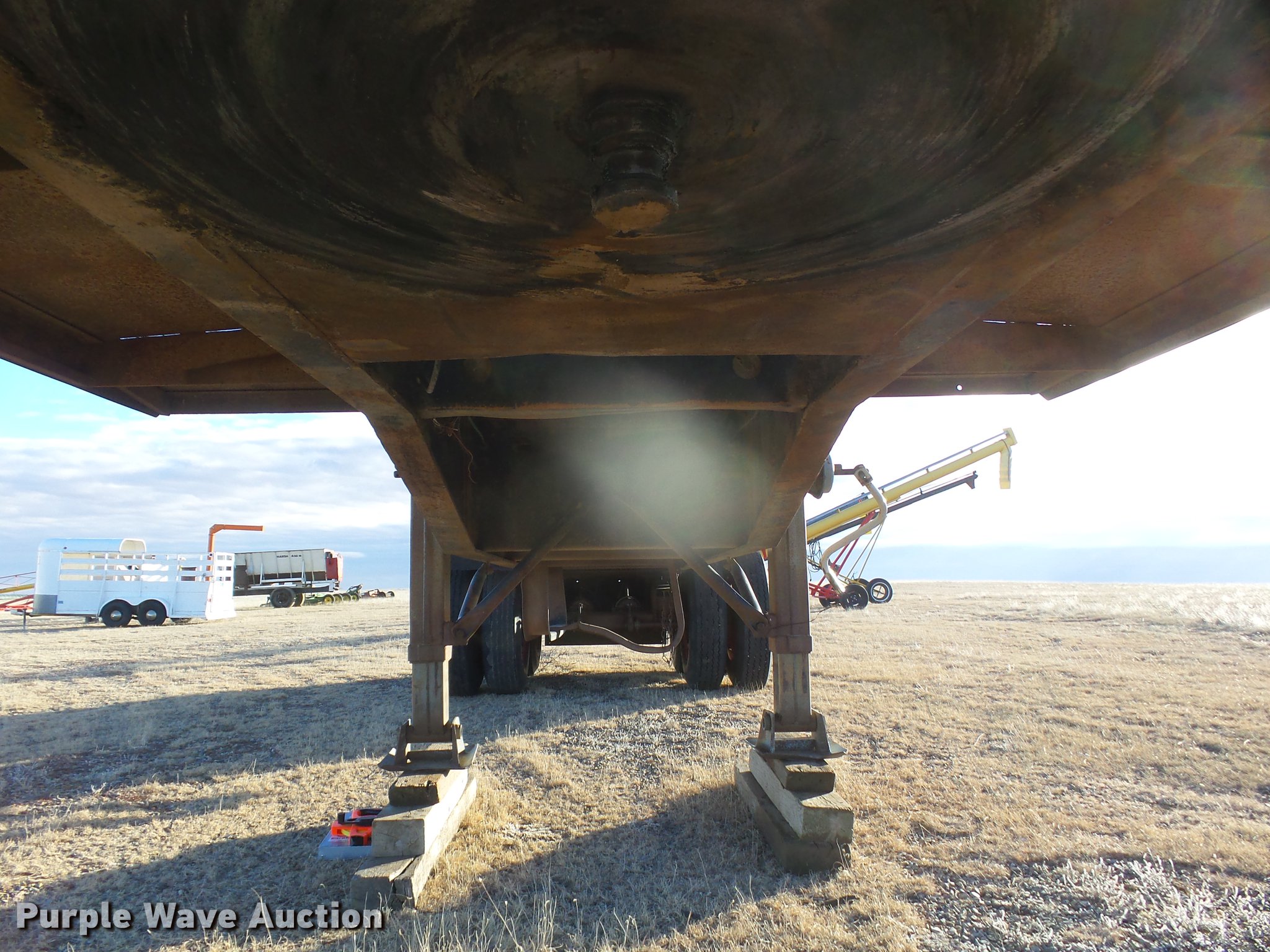 1974 Hobbs end dump trailer. 30'L x 96"W, 54" side height, 56" floor height, Single hydraulic cylinder, End gate, Steel construction, Gooseneck hitch, Dual leg two speed landing gear, Spring suspension, Air brakes, Tandem axle, Steel wheels, 11R24.5 tires. Colorado title. FHS486202. Ravenkamp Farms - Open inspection Feb. 27. 25926 Co. Rd 2W. Hugo, CO 80821