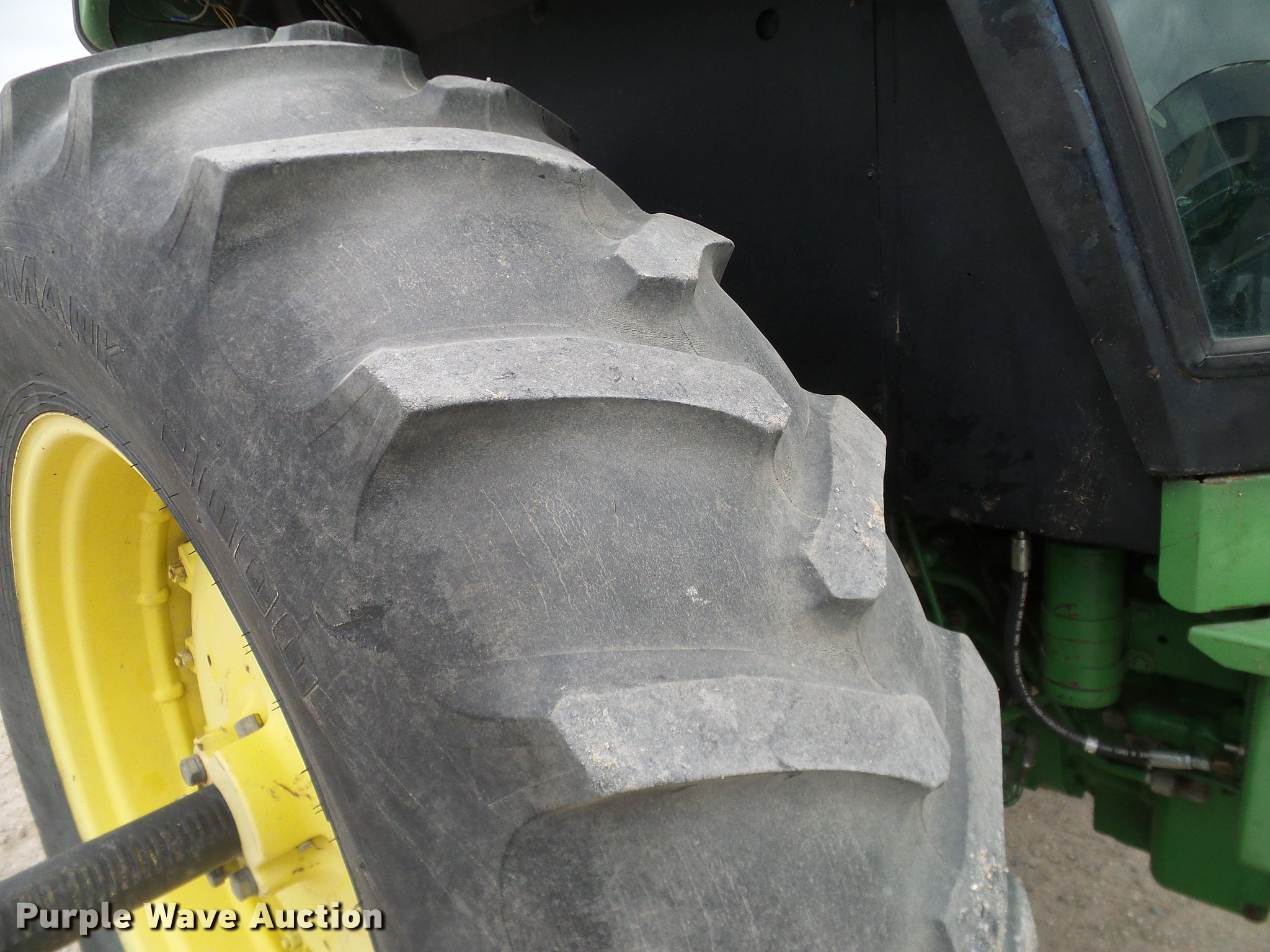 Purple Wave is selling a used Tractor in Colorado. This item is a 1984 John Deere 4450 MFWD tractor with the following: Unknown hours on meter, John Deere six cylinder turbo diesel engine, Powershift transmission, 15F-4R gears, Differential lock, AC and heat, Tilt steering wheel, AM/FM, Suspension seat, Three point, Top link, Quick attach, Seven pin outlet, 540/1000 PTO, (2) rear hydraulic remotes, (2) rear wheel weights, 16.9R24 front tires, 18.4-38 rear tires, Unit is still in use, Serial RW4450PU11335