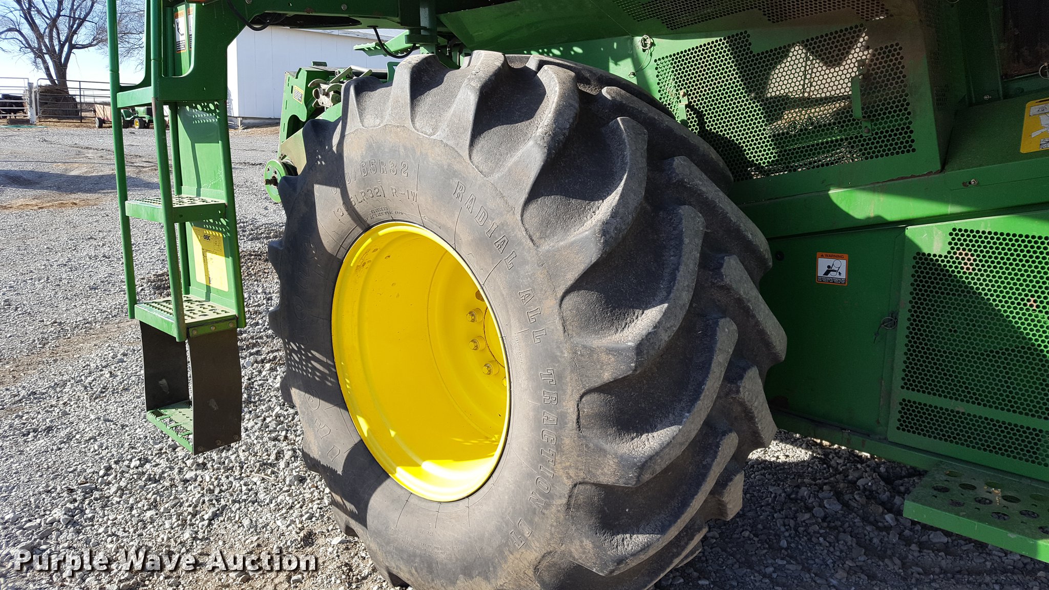 Purple Wave is selling a used Combine in Missouri. This item is a 2007 John Deere 9660 STS RWA combine with the following: 3,026 engine hours on meter, 2,022 separator hours on meter, John Deere 6090HA 9.0L six cylinder turbo diesel engine, Serial RG6090L013945, Hydrostatic transmission, 3F-3R gears, Feederhouse, Variable speed, Reverser, AC and heat, Tilt steering wheel, AM/FM, Air suspension seat, Instructor's seat, John Deere receiver, John Deere monitor, Straw chopper, Bin extensions, Work lights, GreenStar ready, 800/65R32 front tires, 28L-26 rear tires, Serial H09660S720548