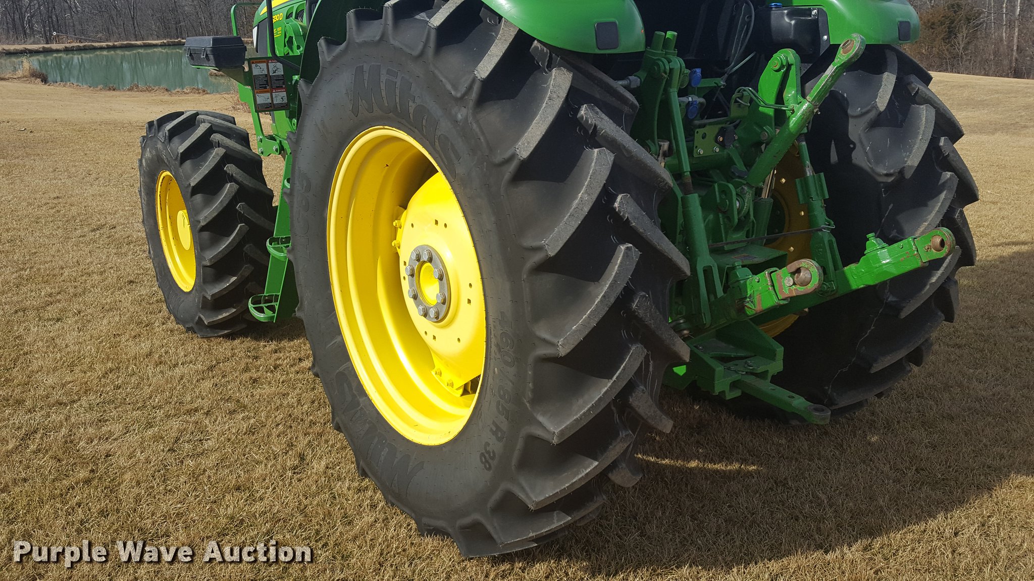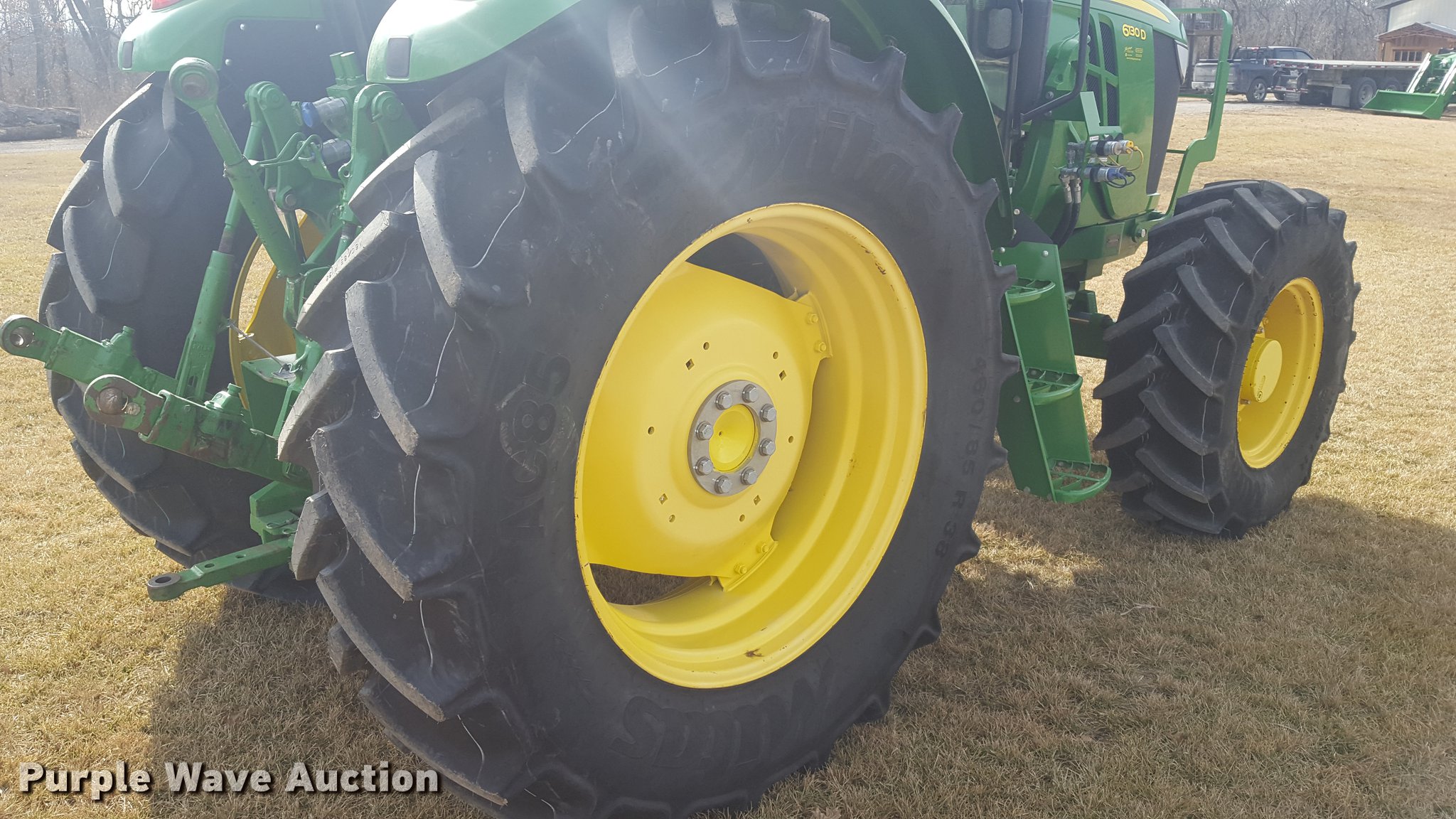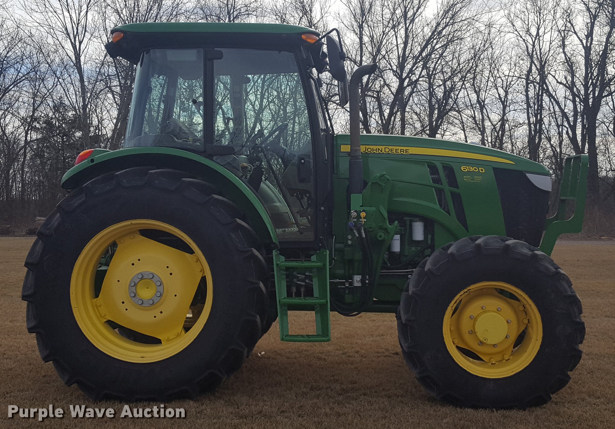 Purple Wave is selling a used Tractor in Missouri. This item is a 2013 John Deere 6130D MFWD tractor with the following: 1,825 hours on meter, John Deere 4045HP turbo diesel engine, 130 HP, 105 PTO HP, Serial PE4045R022845, 9F-9R gears, AC and heat, Tilt steering wheel, AM/FM, Joystick loader controls, Three point, Top link, 6,800 lbs max lift capacity, 540/1000 PTO, Front hydraulic remotes, (2) rear hydraulic remote sets, 380/85R24 front tires, 460/85R38 rear tires, Serial 1P06130DLDM050179