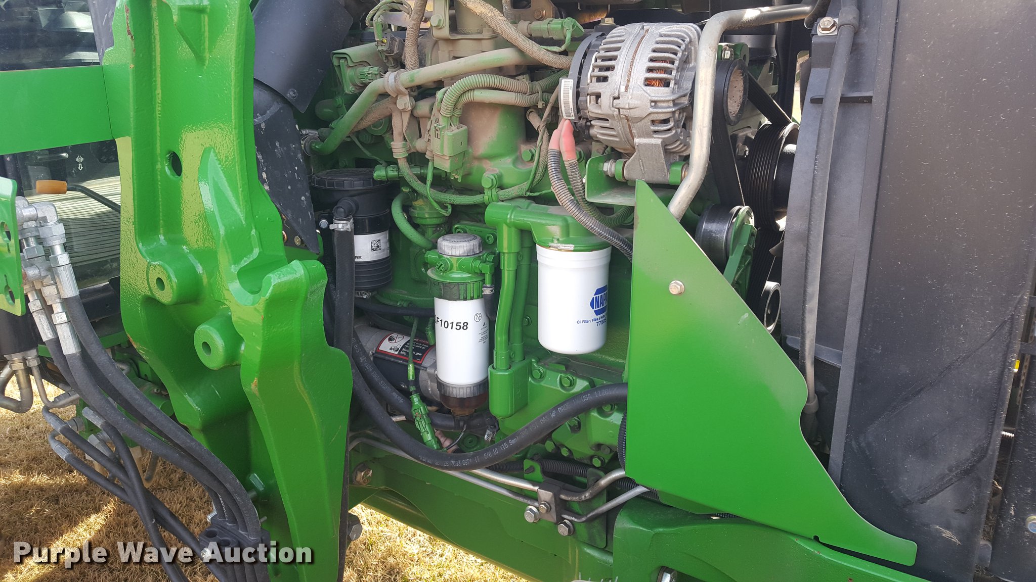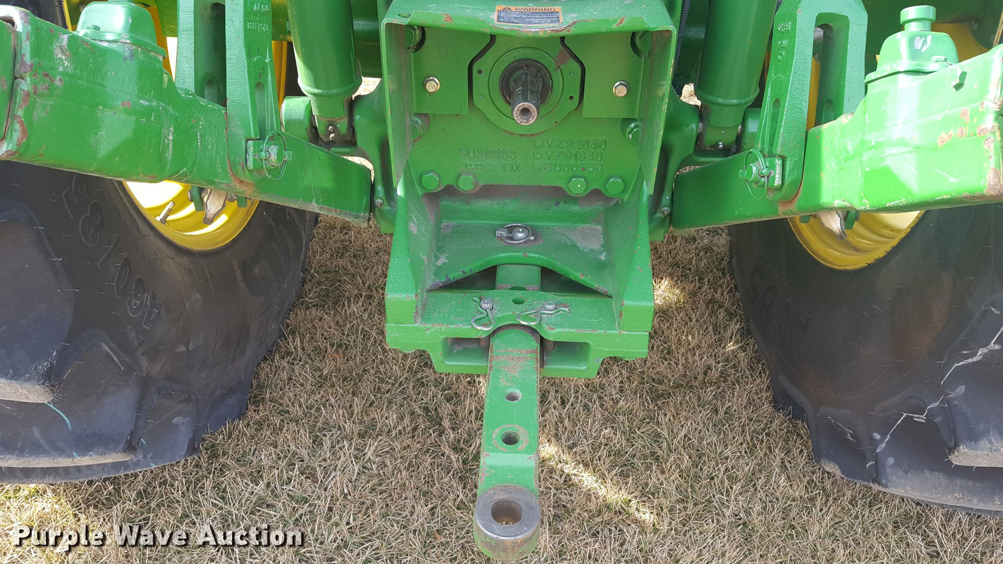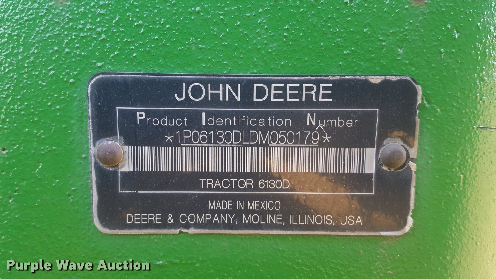 Purple Wave is selling a used Tractor in Missouri. This item is a 2013 John Deere 6130D MFWD tractor with the following: 1,825 hours on meter, John Deere 4045HP turbo diesel engine, 130 HP, 105 PTO HP, Serial PE4045R022845, 9F-9R gears, AC and heat, Tilt steering wheel, AM/FM, Joystick loader controls, Three point, Top link, 6,800 lbs max lift capacity, 540/1000 PTO, Front hydraulic remotes, (2) rear hydraulic remote sets, 380/85R24 front tires, 460/85R38 rear tires, Serial 1P06130DLDM050179