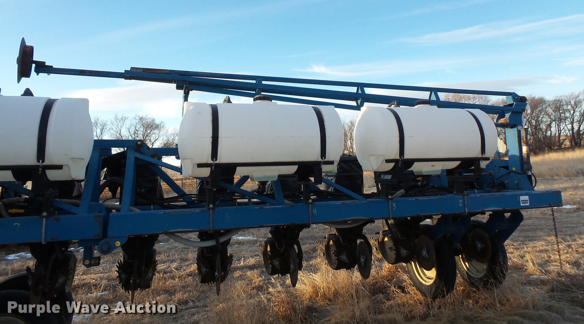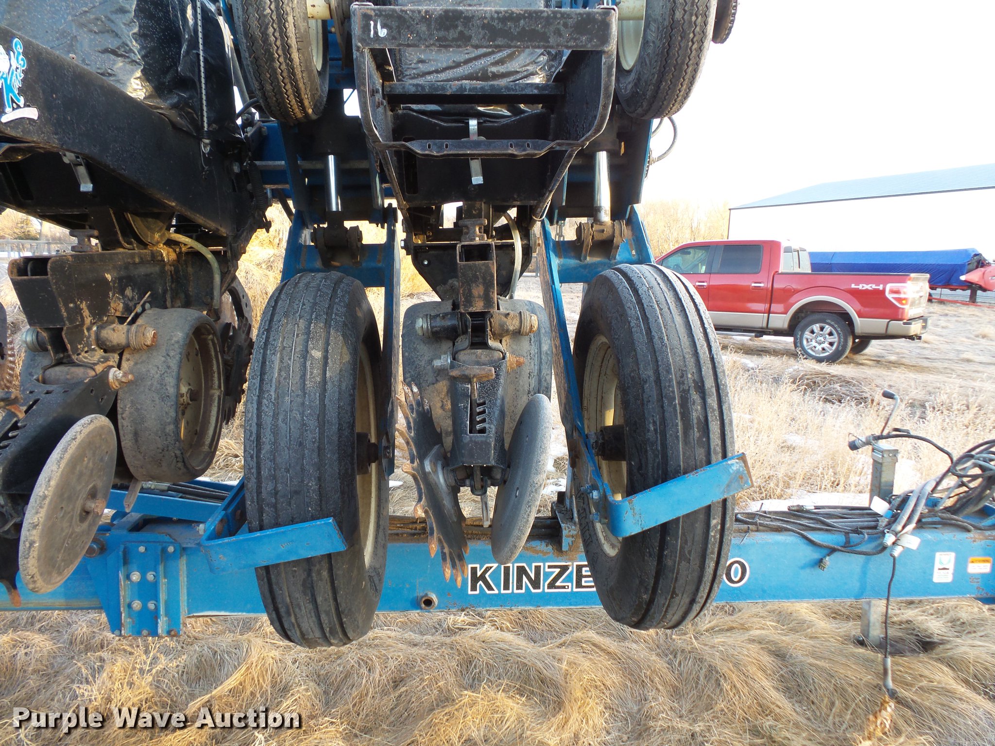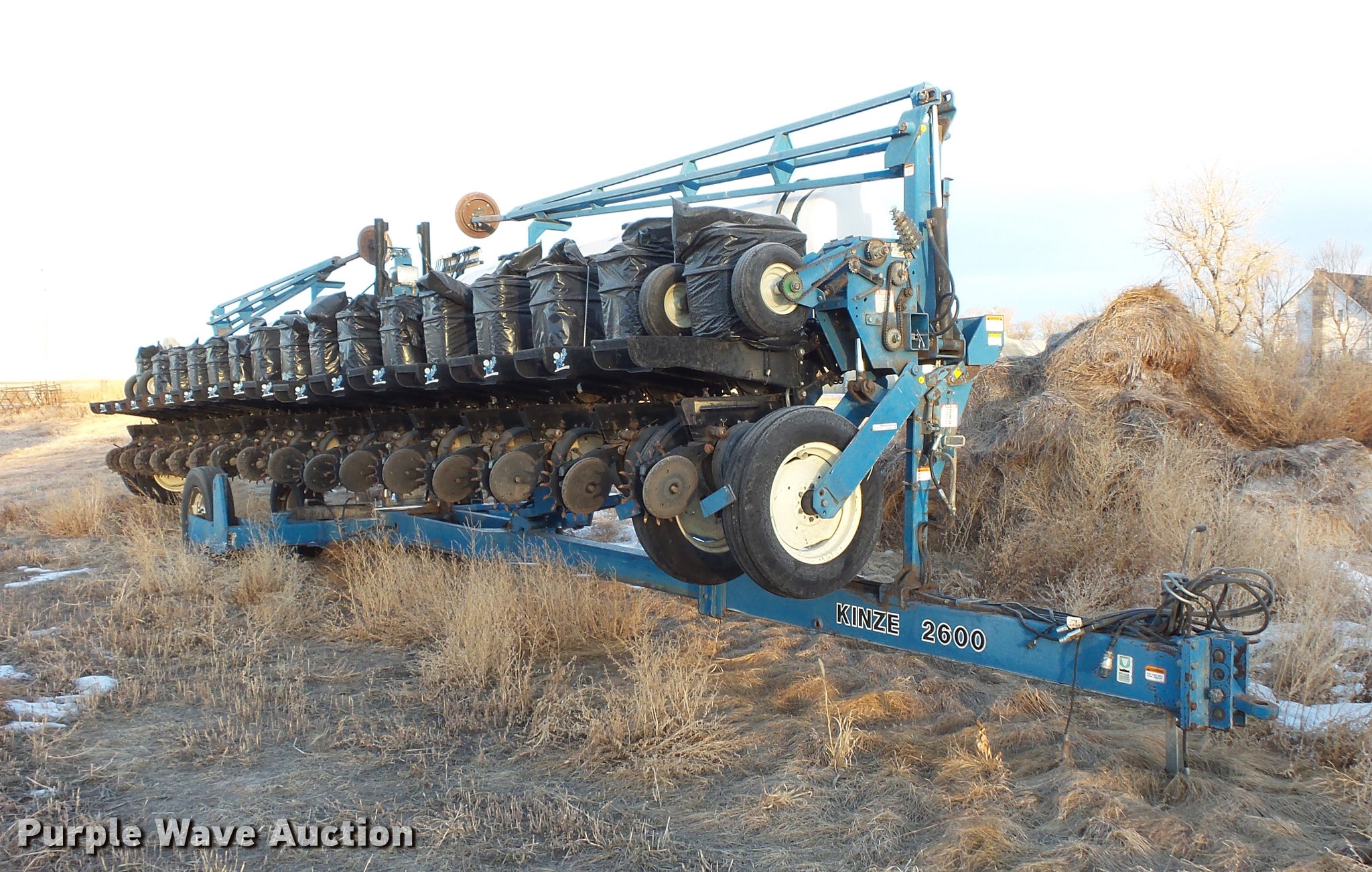 Purple Wave is selling a used Planter in South Dakota. This item is a Kinze 2600 no-till planter with the following: 40'W, 16 row units, 30" row spacing, Marker arms, Pivot fold, Individual seed hoppers, Hopper box extensions, Ground meter drive, Row cleaners, No-till coulters, Seed firmers, Double disk openers, Double gauge wheels, Double rubber spiked closing system, Liquid fertilizer tank, Seed firmer application, John Blue piston pump, Kinze KPM11 monitor, Marker controller, Pin hitch, (4) 255/70R22.5 transport tires, (4) 7.50-20 drive/outside tires, Serial 81170