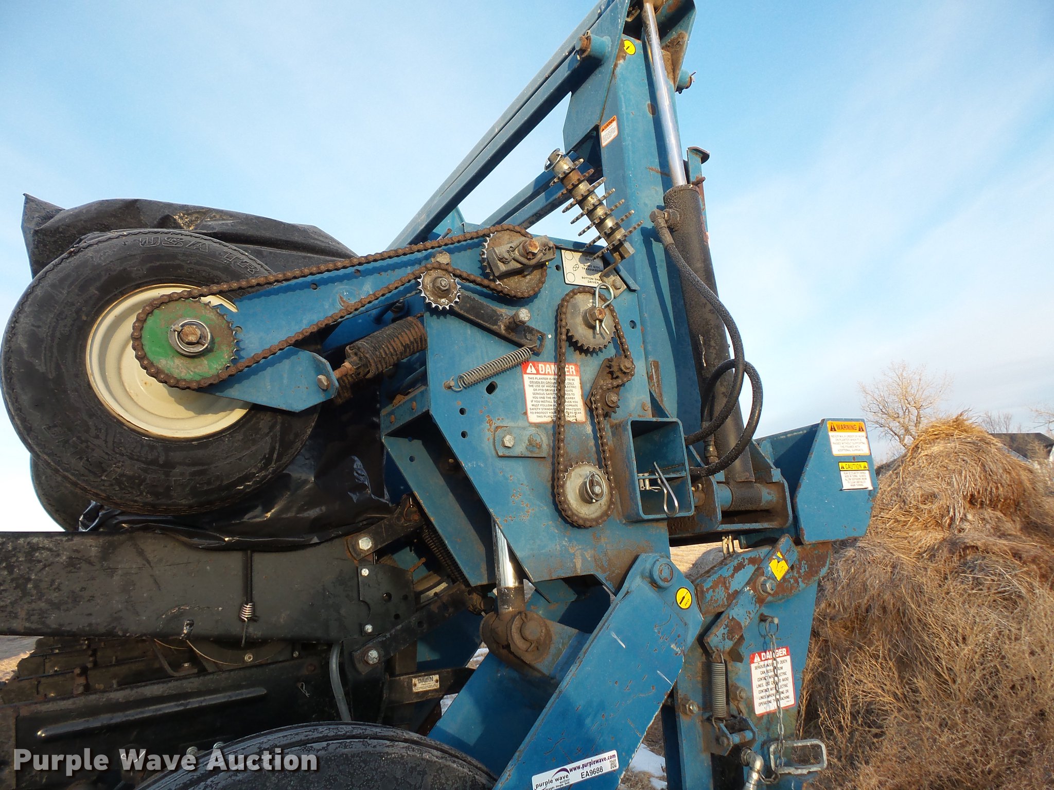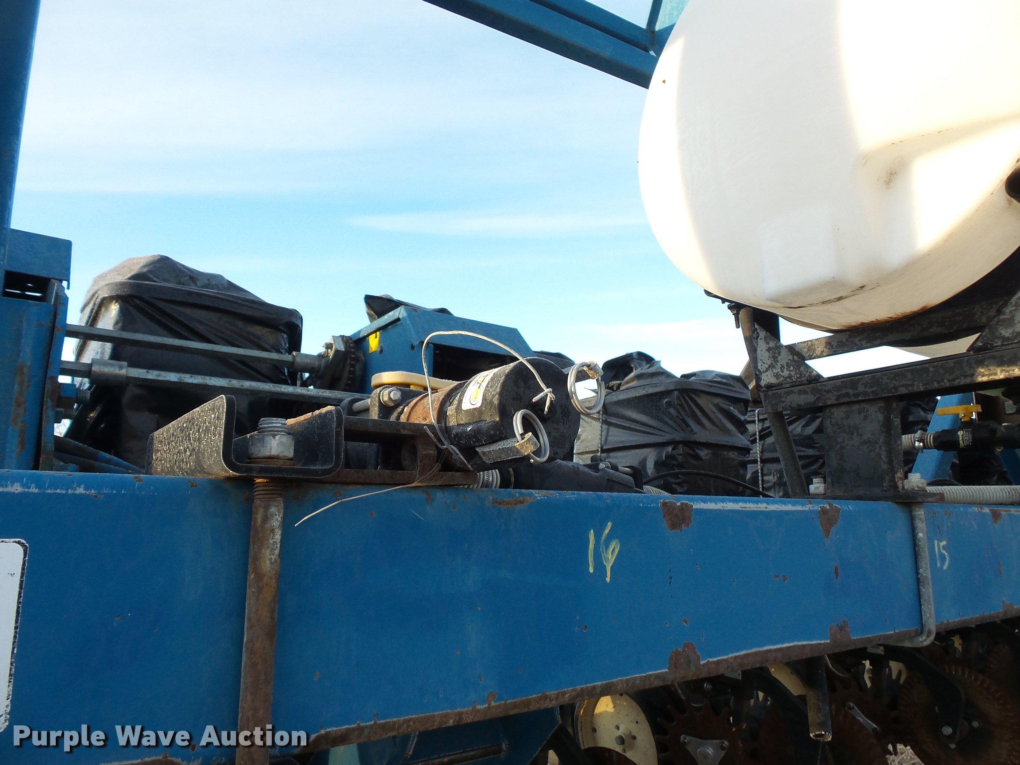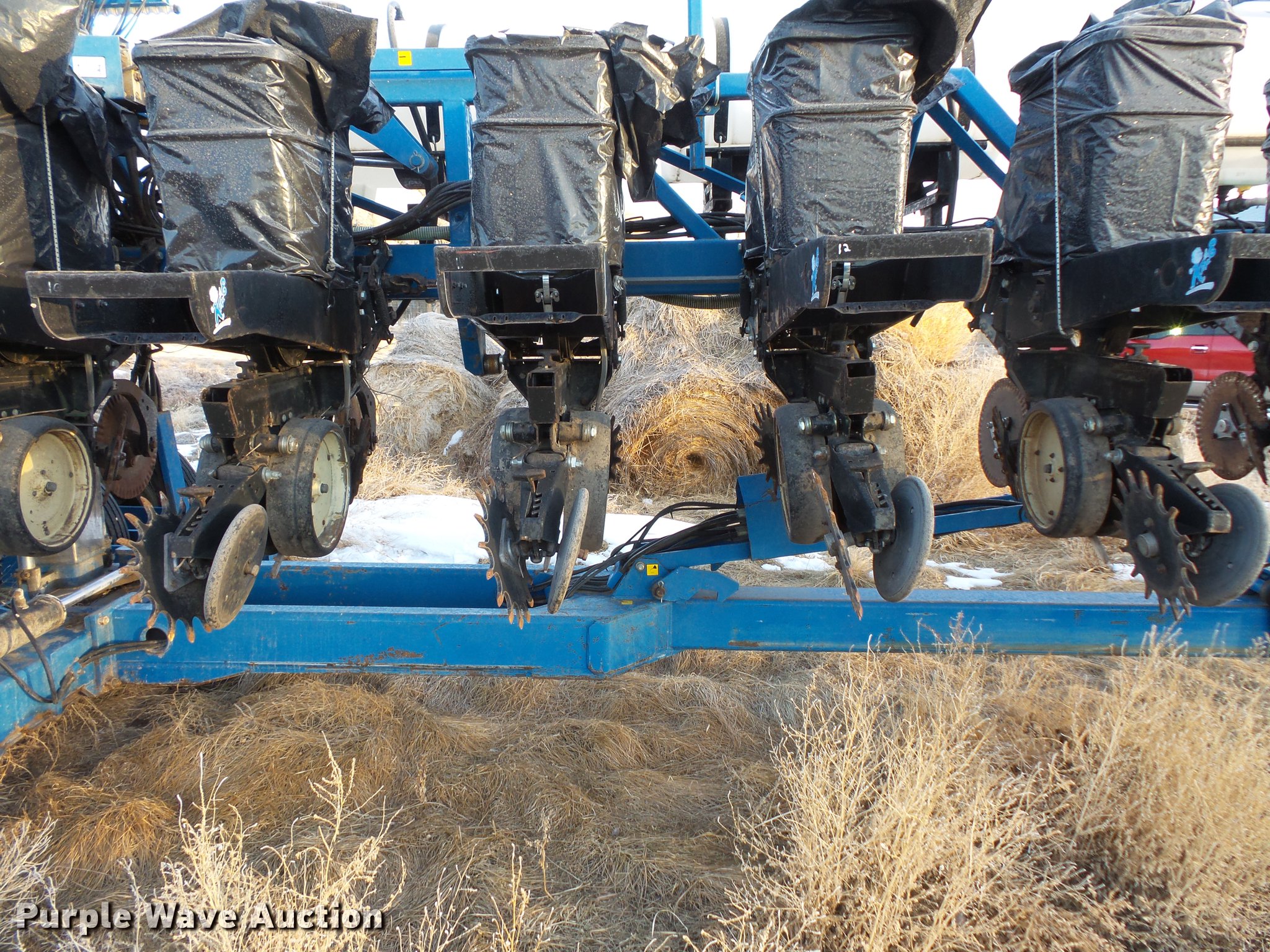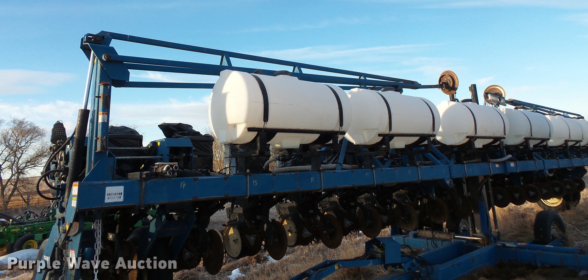 Purple Wave is selling a used Planter in South Dakota. This item is a Kinze 2600 no-till planter with the following: 40'W, 16 row units, 30" row spacing, Marker arms, Pivot fold, Individual seed hoppers, Hopper box extensions, Ground meter drive, Row cleaners, No-till coulters, Seed firmers, Double disk openers, Double gauge wheels, Double rubber spiked closing system, Liquid fertilizer tank, Seed firmer application, John Blue piston pump, Kinze KPM11 monitor, Marker controller, Pin hitch, (4) 255/70R22.5 transport tires, (4) 7.50-20 drive/outside tires, Serial 81170