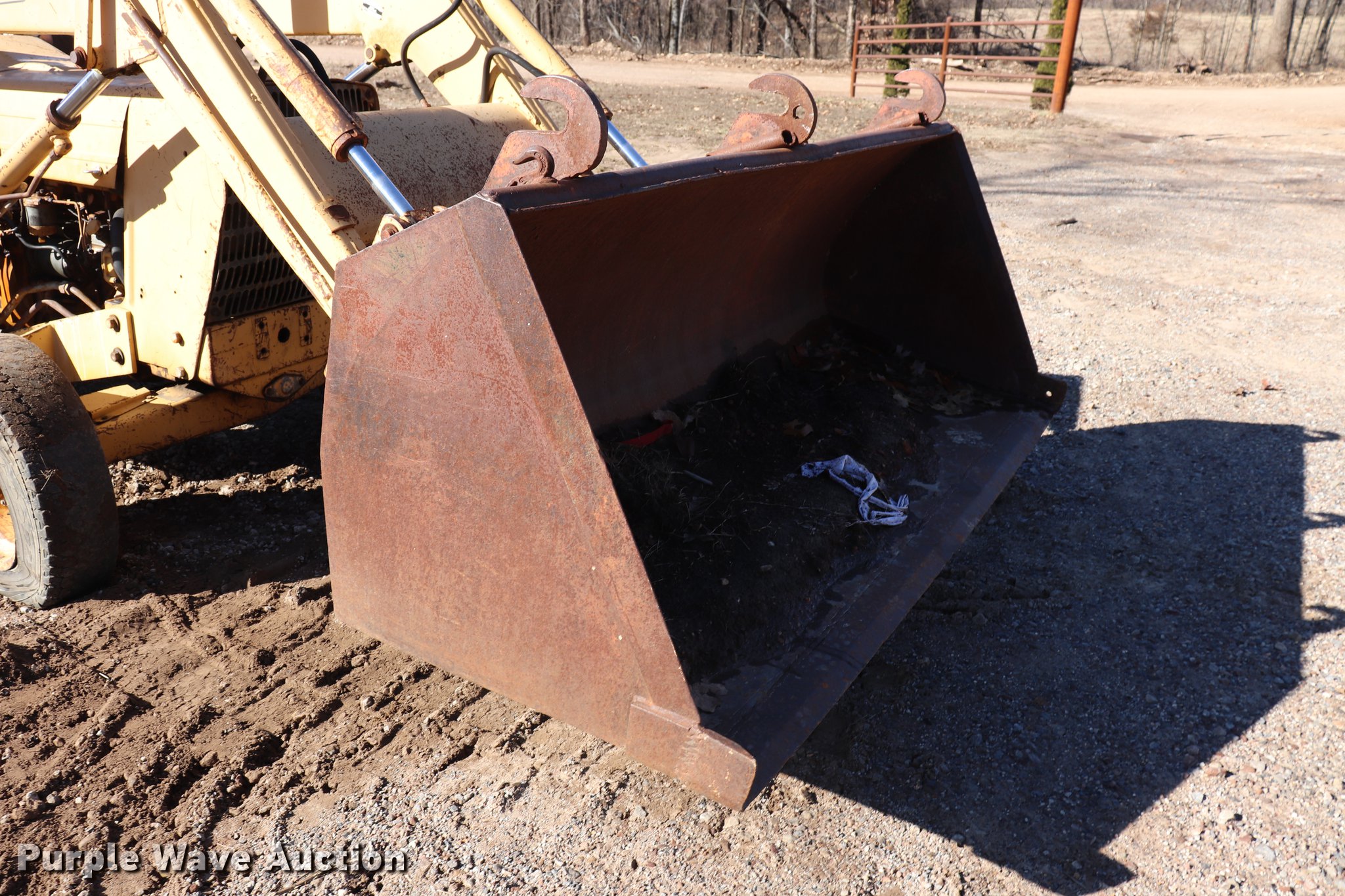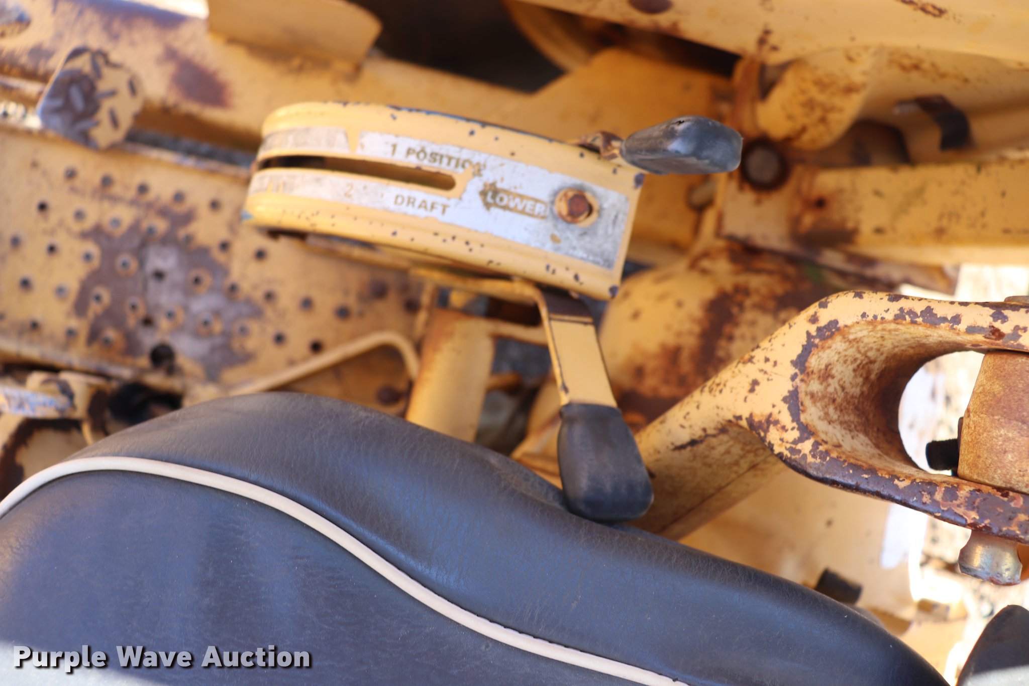 Purple Wave is selling a used Tractor in Oklahoma. This item is a Ford 445A tractor with the following: 3,872 hours on meter, Ford three cylinder diesel engine, Shuttle shift transmission, 4F-4R gears, Canopy, Spring suspension seat, Front work lights, Loader, 80"W bucket, Three point, (2) rear hydraulic remote sets, Wheel weights, 265/70R16 front tires, 16.9-24 rear tires, Transmission fluid leak, fluid will need to be added prior to loading, Serial F4007/KD41-1F/C743127