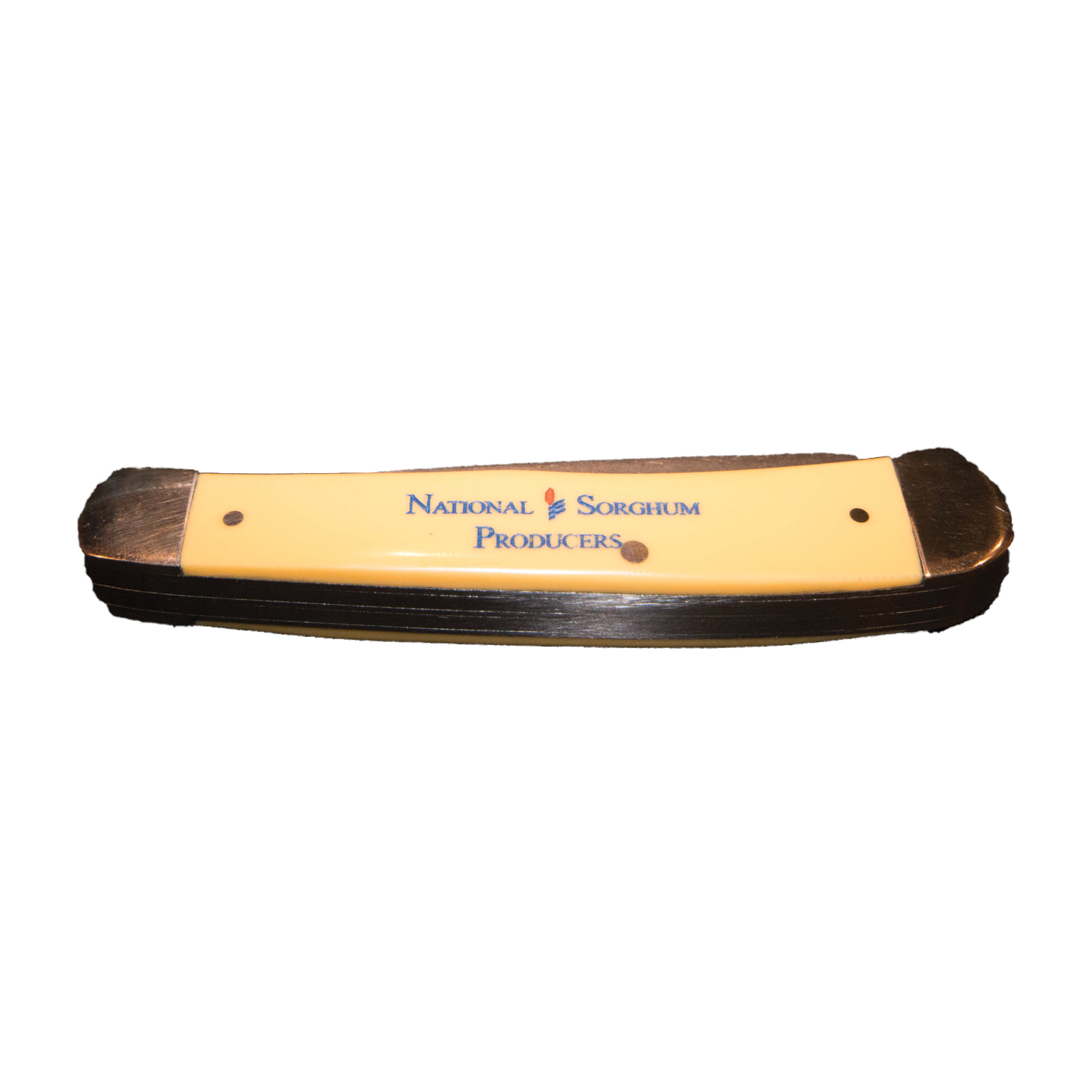 You'll appreciate this custom-made limited edition Moore Maker knife. Highly polished and extremely sharp, this beautiful knife is engraved with "National Sorghum Producers" and was proudly made in the USA.