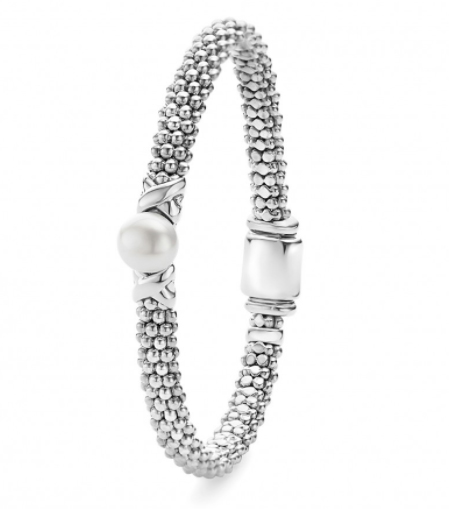 Lagos crafted this pearl button bracelet in a way that honors the natural properties of the materials and doesn't detract from your look, but rather, is the finishing touch. It features a natural pearl surrounded by sterling silver signature beading.