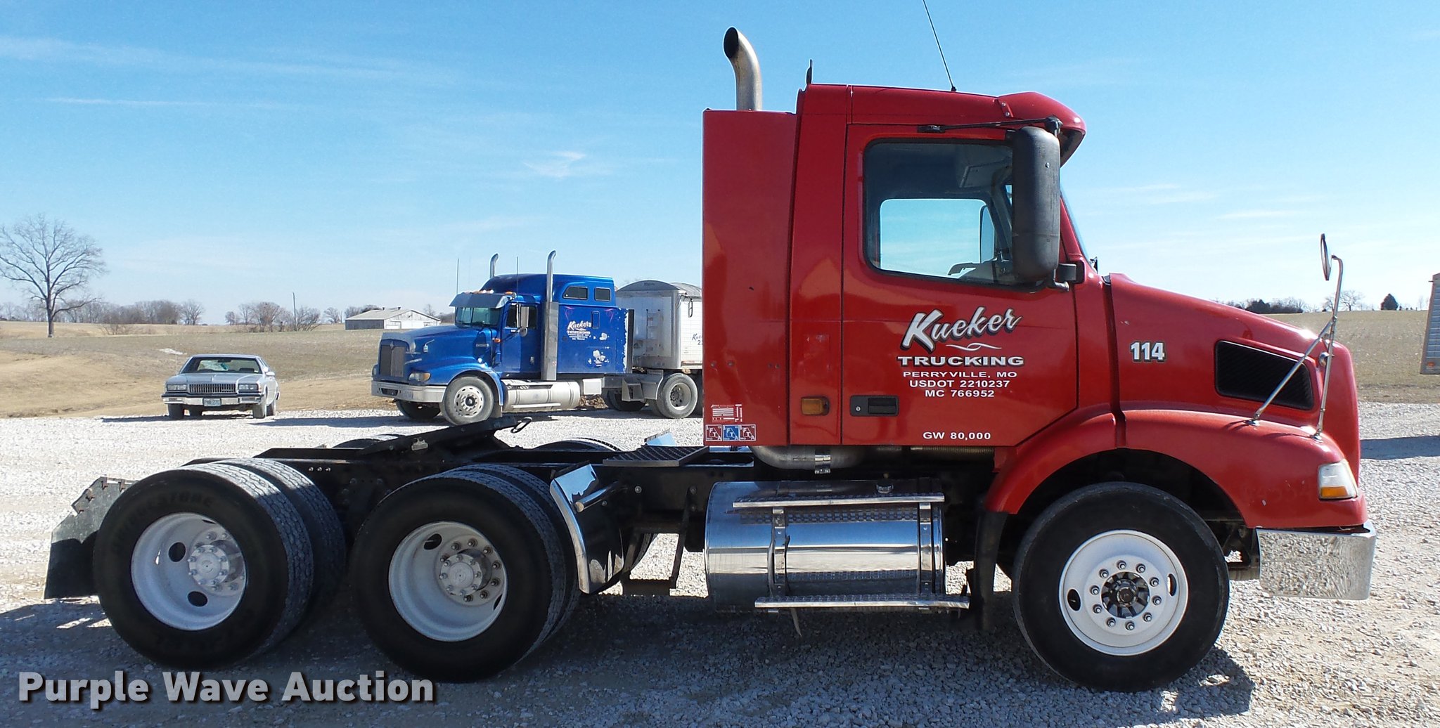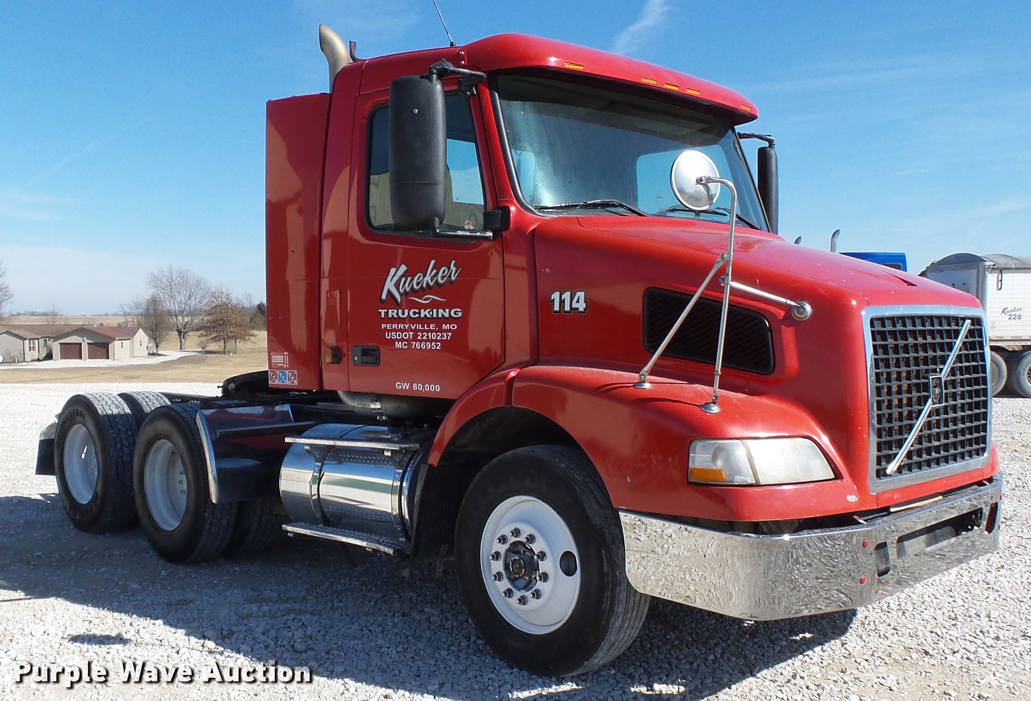 Purple Wave is selling a used Truck Tractor in Missouri. This item is a 2006 Volvo VNM semi truck with the following: 807,087 miles on odometer, Volvo D12-365 12.1L L6 turbo diesel engine, Eaton Fuller FR142108 10 speed manual transmission, Tandem axle, Inter-axle differential lock, AC and heat, AM/FM, Power mirrors, Air suspension seat, Exterior visor, Single exhaust stack, Aluminum deck plate, Fixed fifth wheel plate, Dual feul tanks, Stainless steel fenders, Air suspension, Air brakes, Engine brake, 3:07 gear ratio, 152" wheelbase, 295/75R22.5 front tires, 11R22.5 rear tires, GVWR 50,500 lbs, FAWR 12,500 lbs, IAWR 19,000 lbs, RAWR 19,000 lbs, Check engine light on, Intermittent dash electrical issues, Unit# 114