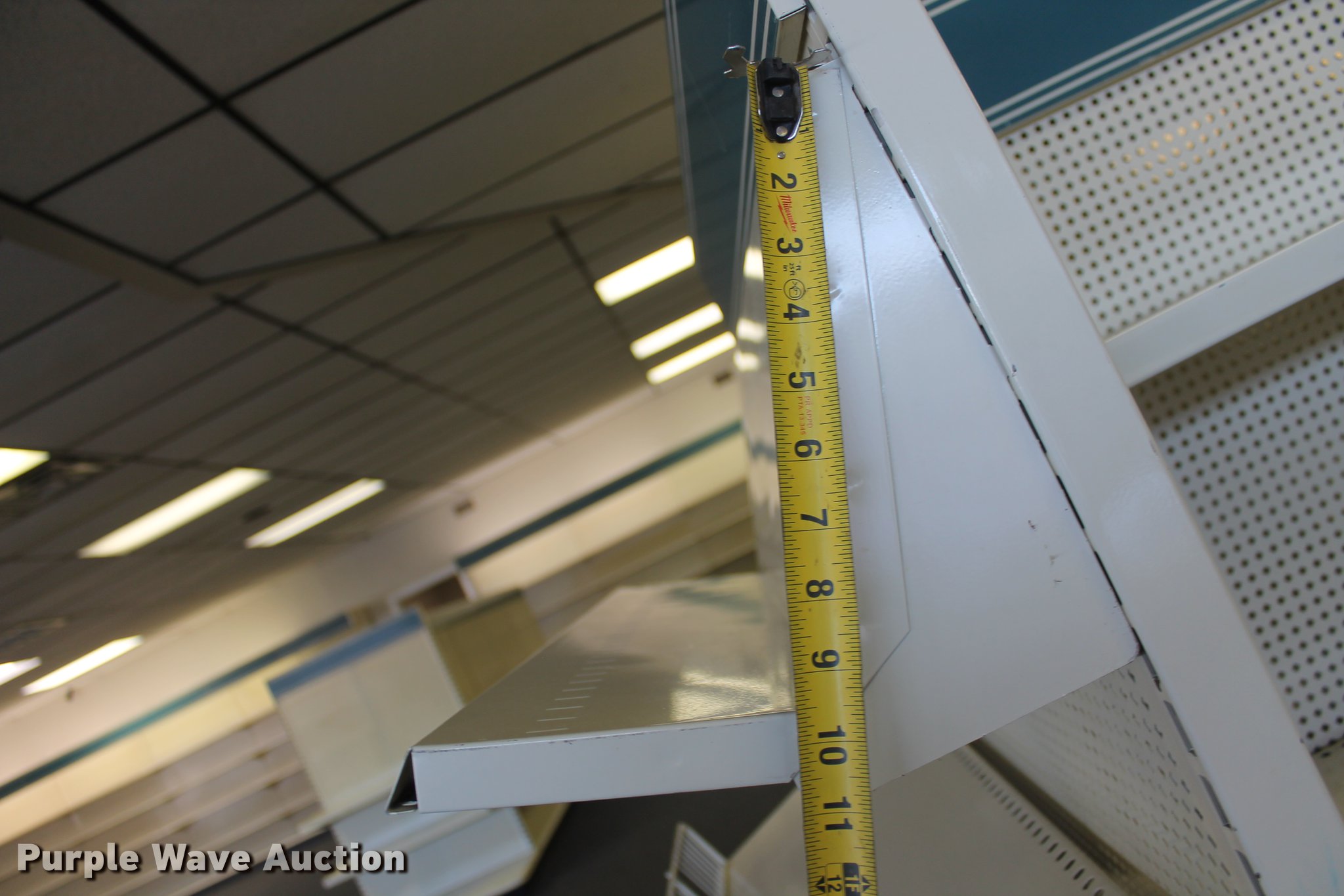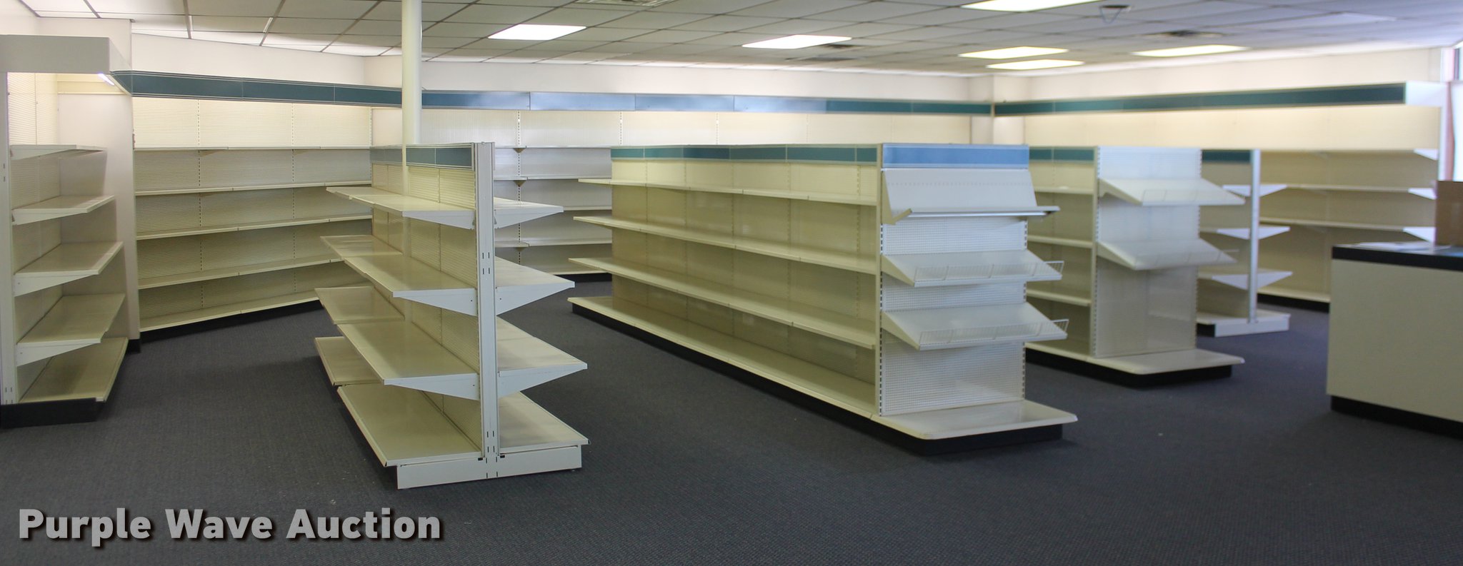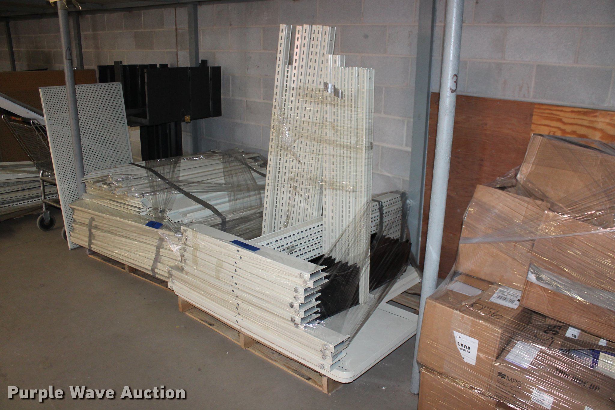 Purple Wave is selling a used Retail Displays in Oklahoma. This item is a Gondola style retail display shelving with the following: 3'L and 4'L panel sections, 12"D to 18"D panel sections, 5'H free-standing bases, 7'H wall-mount bases, Warehouse inventory includes:, Approx. 550 shelves, Approx. 200 backs, Approx. 100 signs, Approx. 50 stands, Approx. 175 components, Retail floor inventory includes:, Shelves, backs, signs, stands, and components, Angles, flats, end caps, and more, Accent lighting, hangers, merchandisers, trims, borders, and other hardware, All contents of retail floor and warehouse included