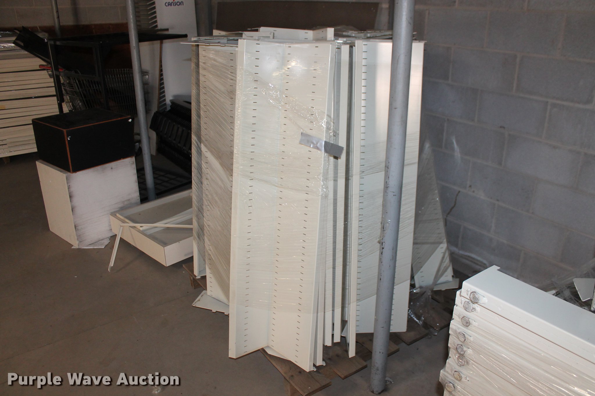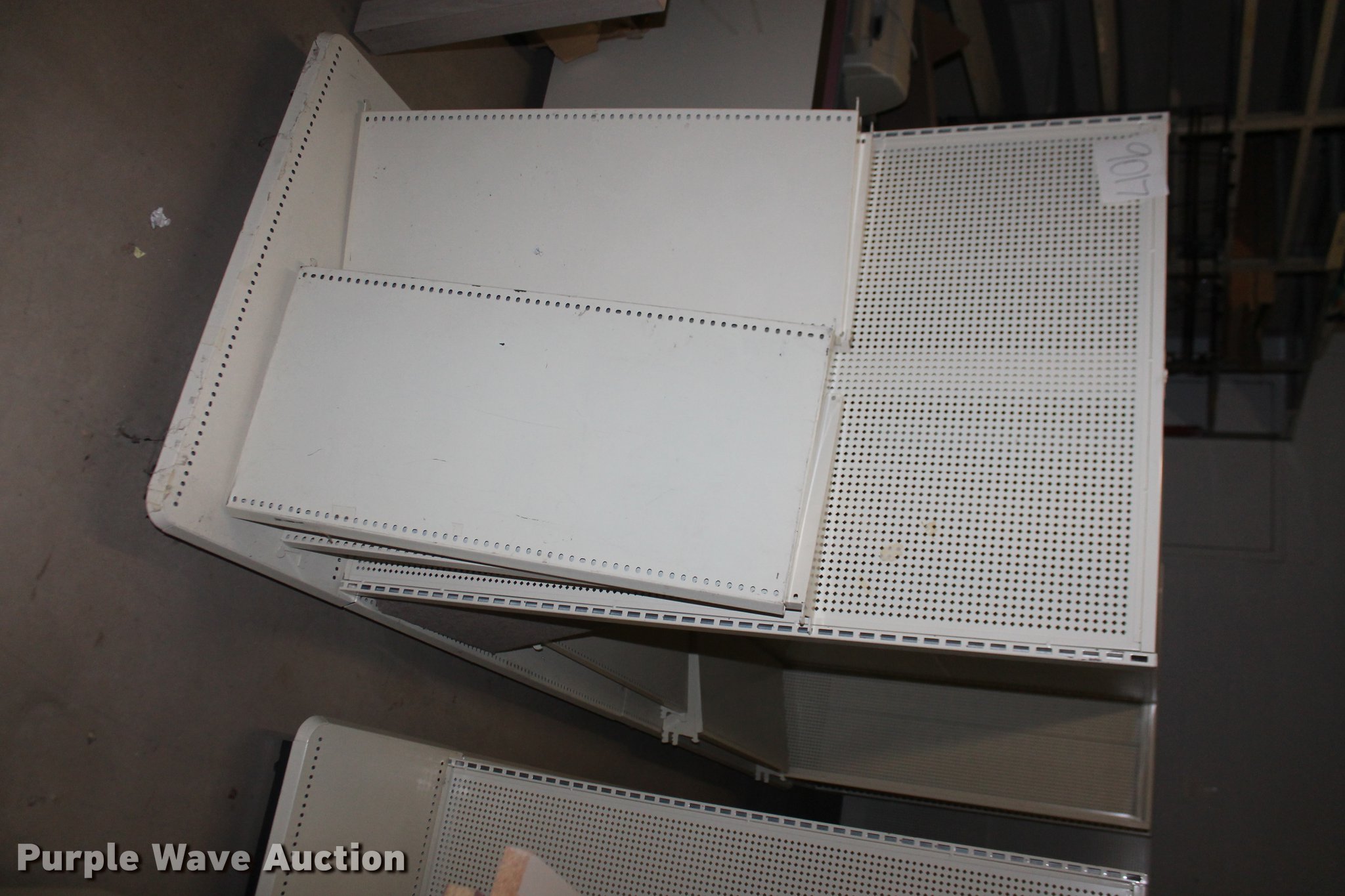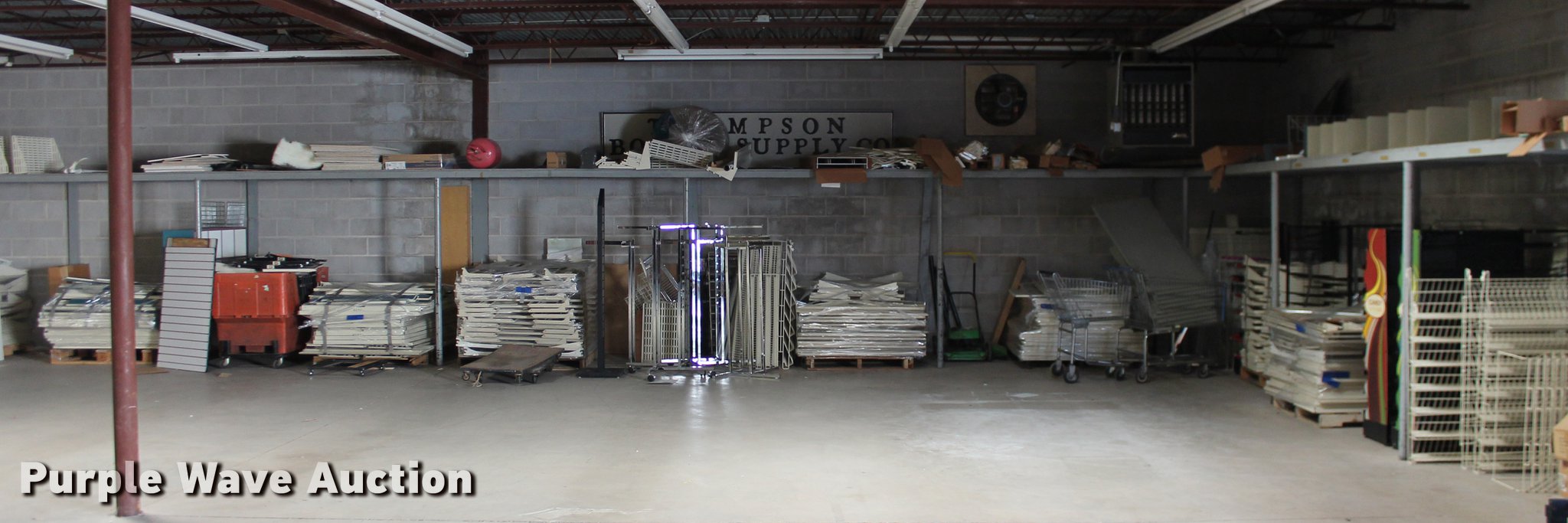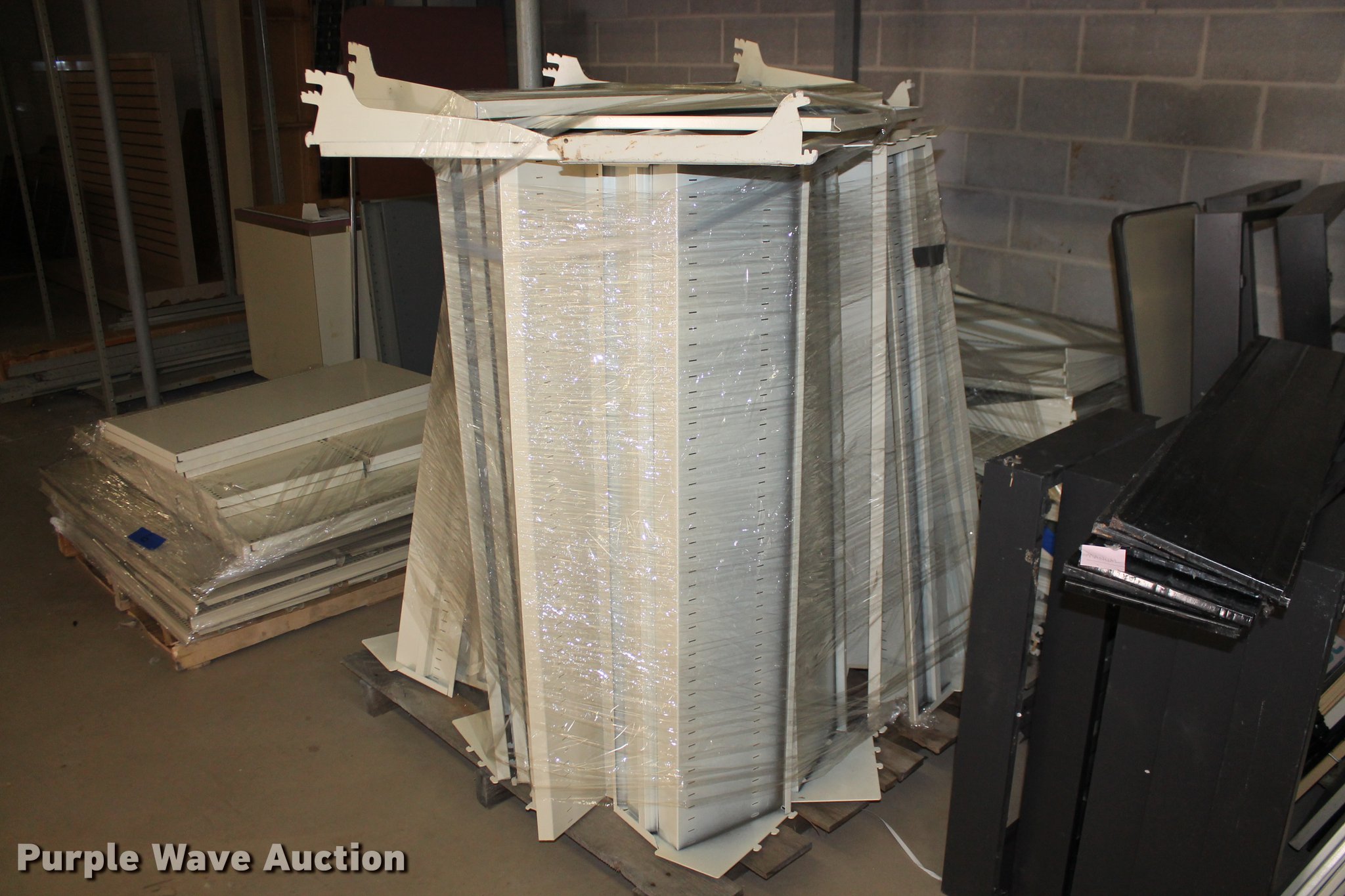 Purple Wave is selling a used Retail Displays in Oklahoma. This item is a Gondola style retail display shelving with the following: 3'L and 4'L panel sections, 12"D to 18"D panel sections, 5'H free-standing bases, 7'H wall-mount bases, Warehouse inventory includes:, Approx. 550 shelves, Approx. 200 backs, Approx. 100 signs, Approx. 50 stands, Approx. 175 components, Retail floor inventory includes:, Shelves, backs, signs, stands, and components, Angles, flats, end caps, and more, Accent lighting, hangers, merchandisers, trims, borders, and other hardware, All contents of retail floor and warehouse included
