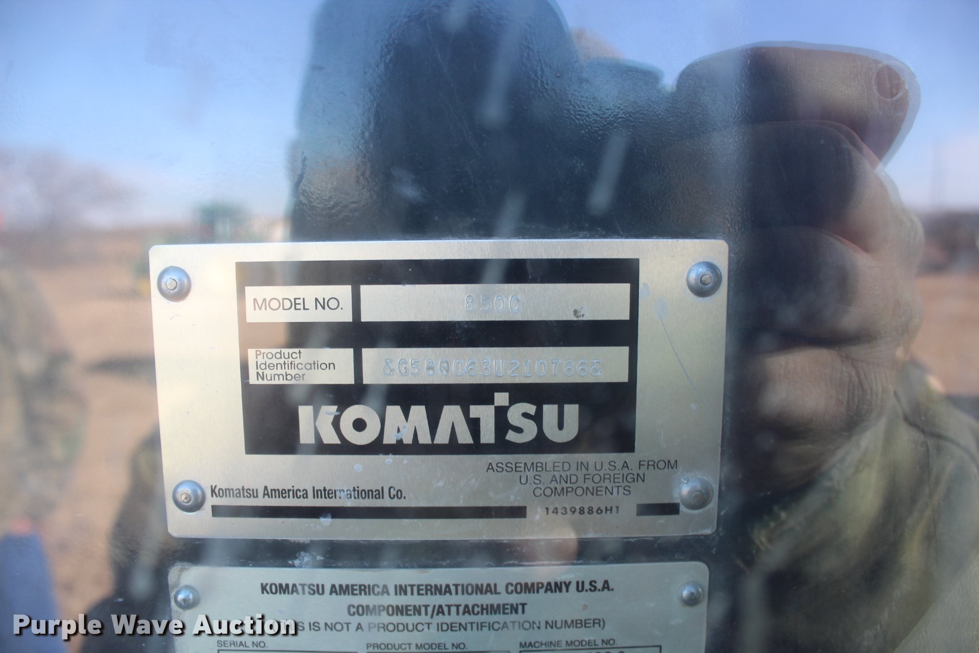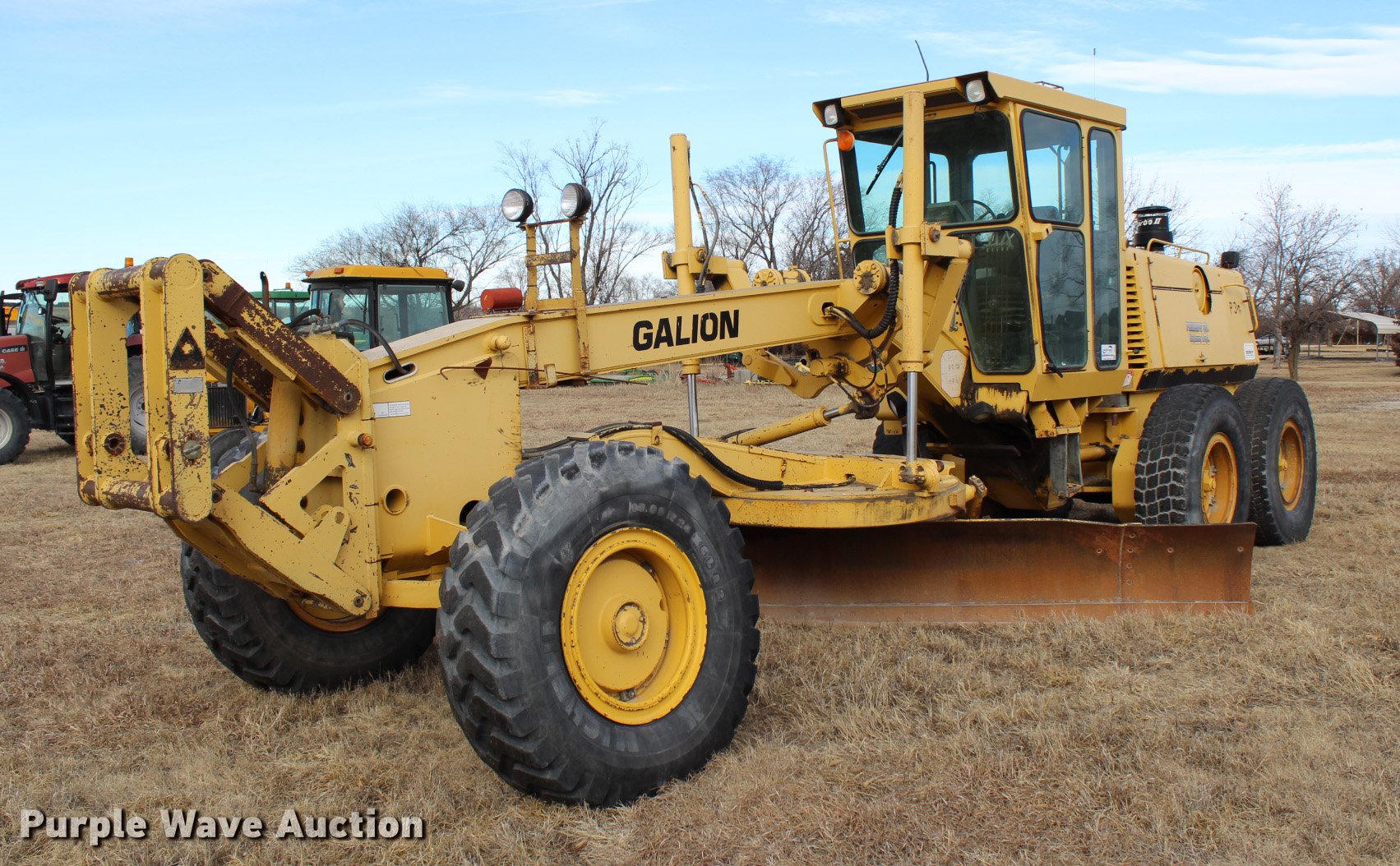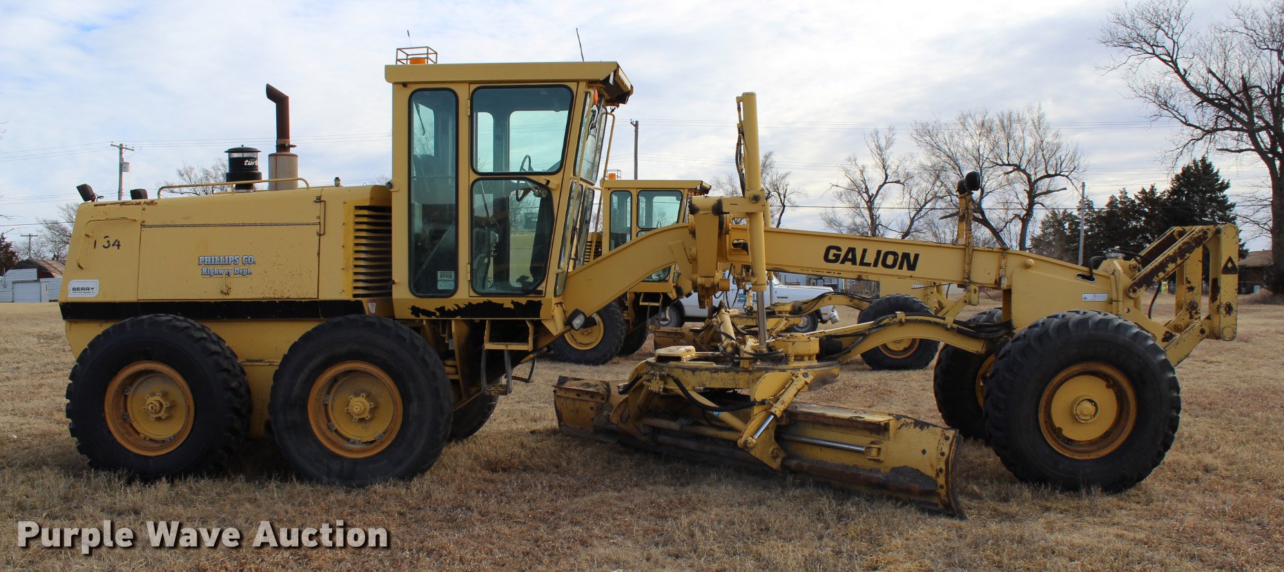 Purple Wave is selling a used Motor Grader in Kansas. This item is a 2001 Galion 850C motor grader with the following: 12,307 hours on meter, Komatsu 8.6L six cylinder turbo diesel engine, Powershift transmission, 6F-3R gears, EROPS, AC and heat, AM/FM, Suspension seat, Front and rear work lights, 16'W moldboard, Left blade extension, Tip control, Side shift, Circle slip clutch, Dymax front mounted lift group, 14.00R24 tires, Unknown operating condition of AC, Passenger side engine hood cylinder missing, Serial 69654, Unit# 34