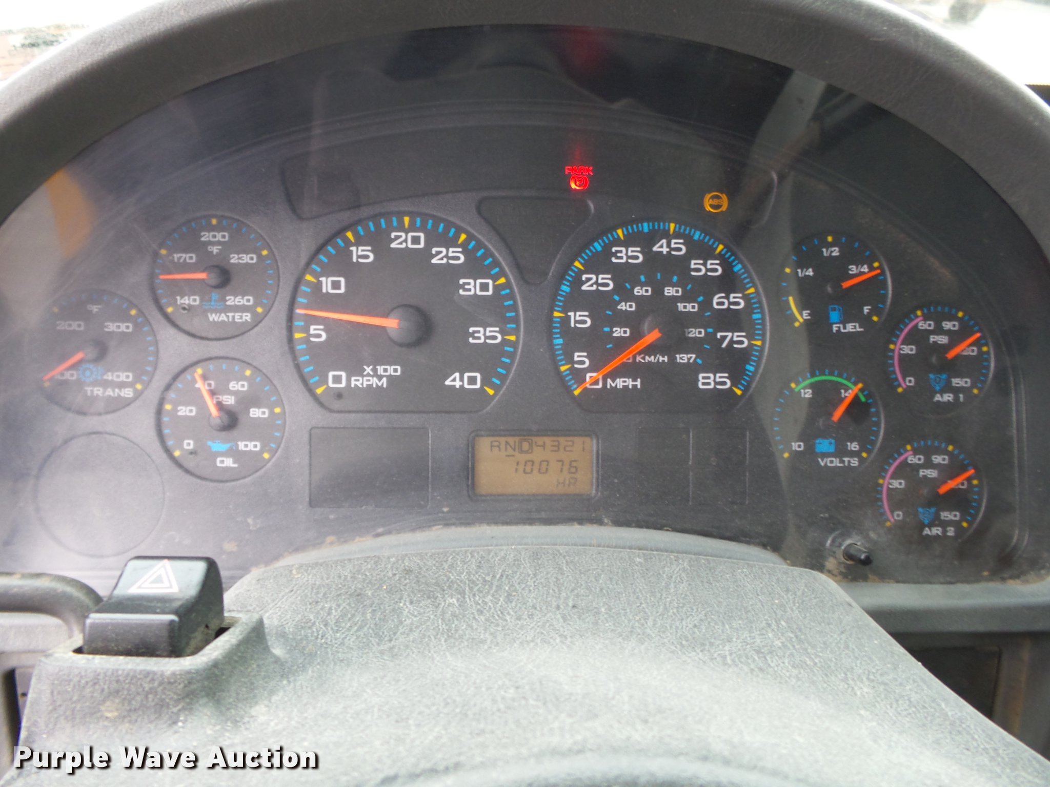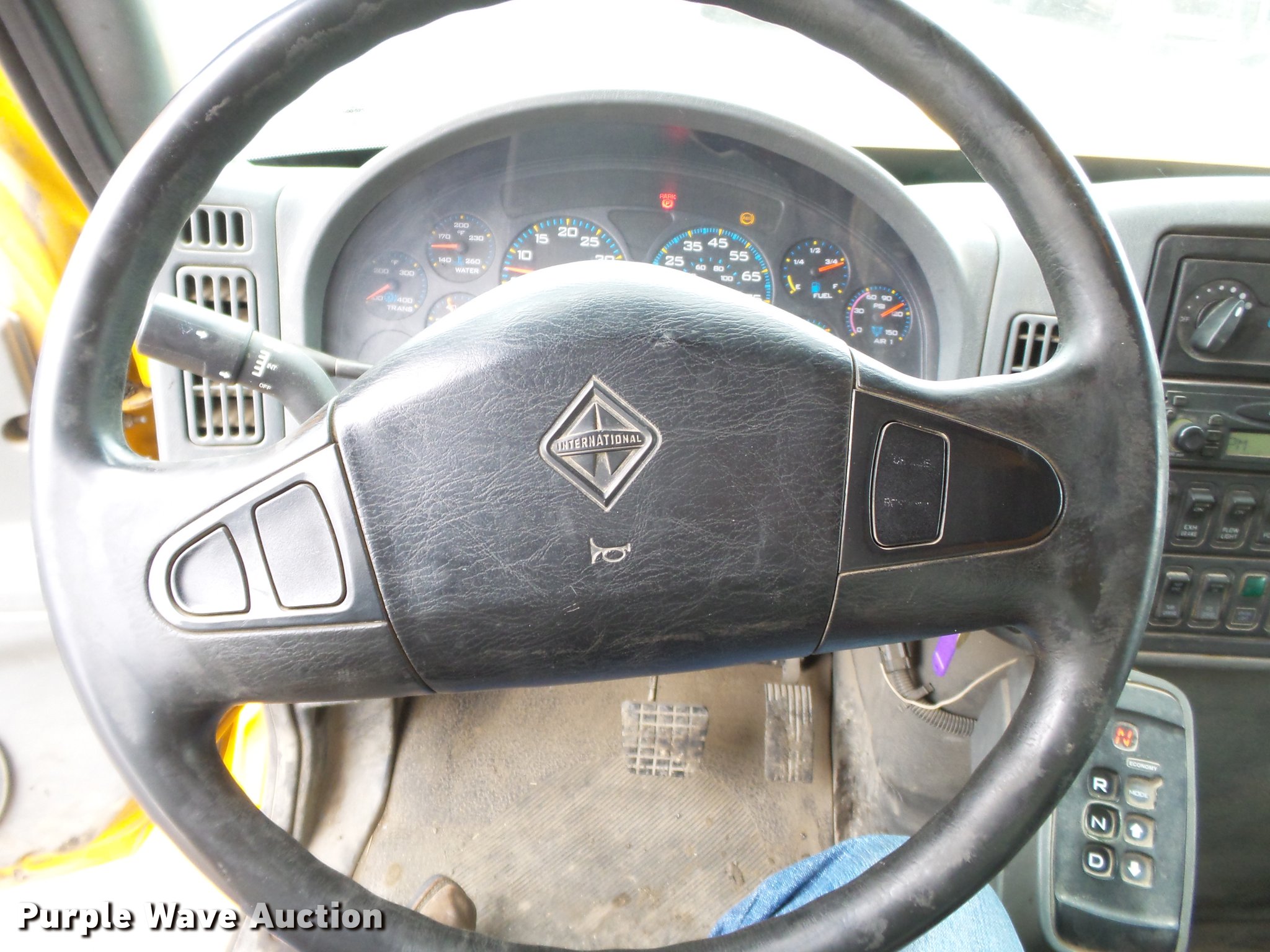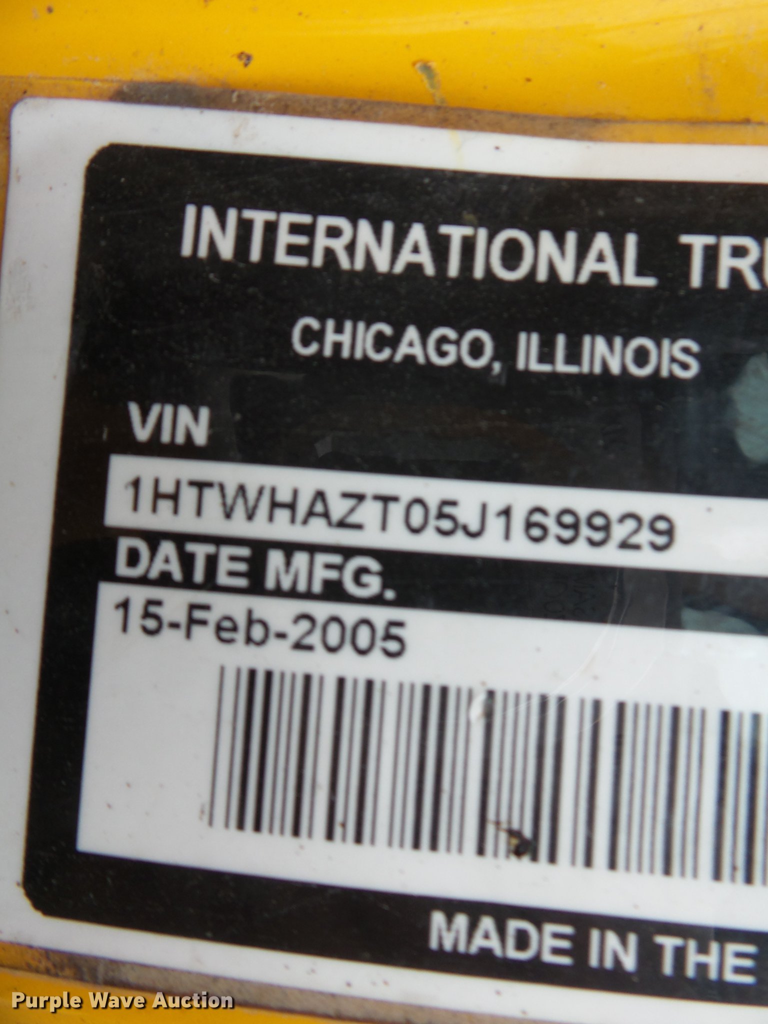 Purple Wave is selling a used Construction Dump Truck in Missouri. This item is a 2005 International 7400 dump truck with the following: 201,268 miles on odometer, 10,076 hours on meter, International DT570 9.3L L6 turbo diesel engine, Allison automatic transmission, Tandem axle, Inter-axle differential lock, AC and heat, Tilt, Cruise, FM, Power windows, Power and heated mirrors, Air suspension seat, Block heater, Toolboxes, Front mounted PTO, Wheeler steel dump bed, 16'L x 96"W, 36" side height, Roll tarp, Bed vibrator, Single ram hoist, Air operated end gate, Single fuel tank, Pintle hitch, Trailer wiring, Camelback suspension, Air brakes, Engine brake, 213" wheelbase, 315/80R22.5 front tires, 11R22.5 rear tires, GVWR 58,000 lbs, FAWR 18,000 lbs, IAWR 20,000 lbs, RAWR 20,000 lbs, ABS light on, MODOT ID 7687