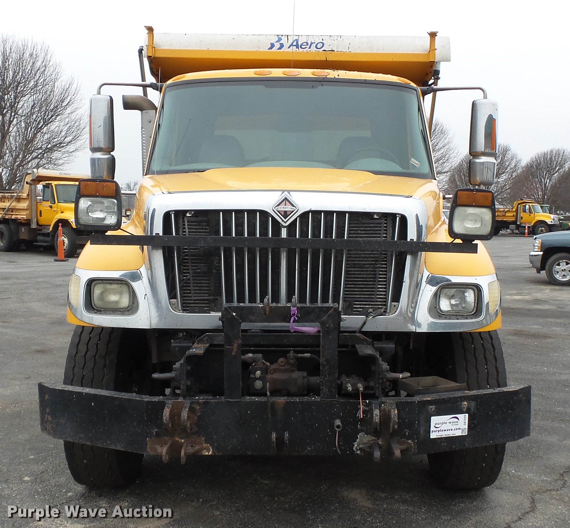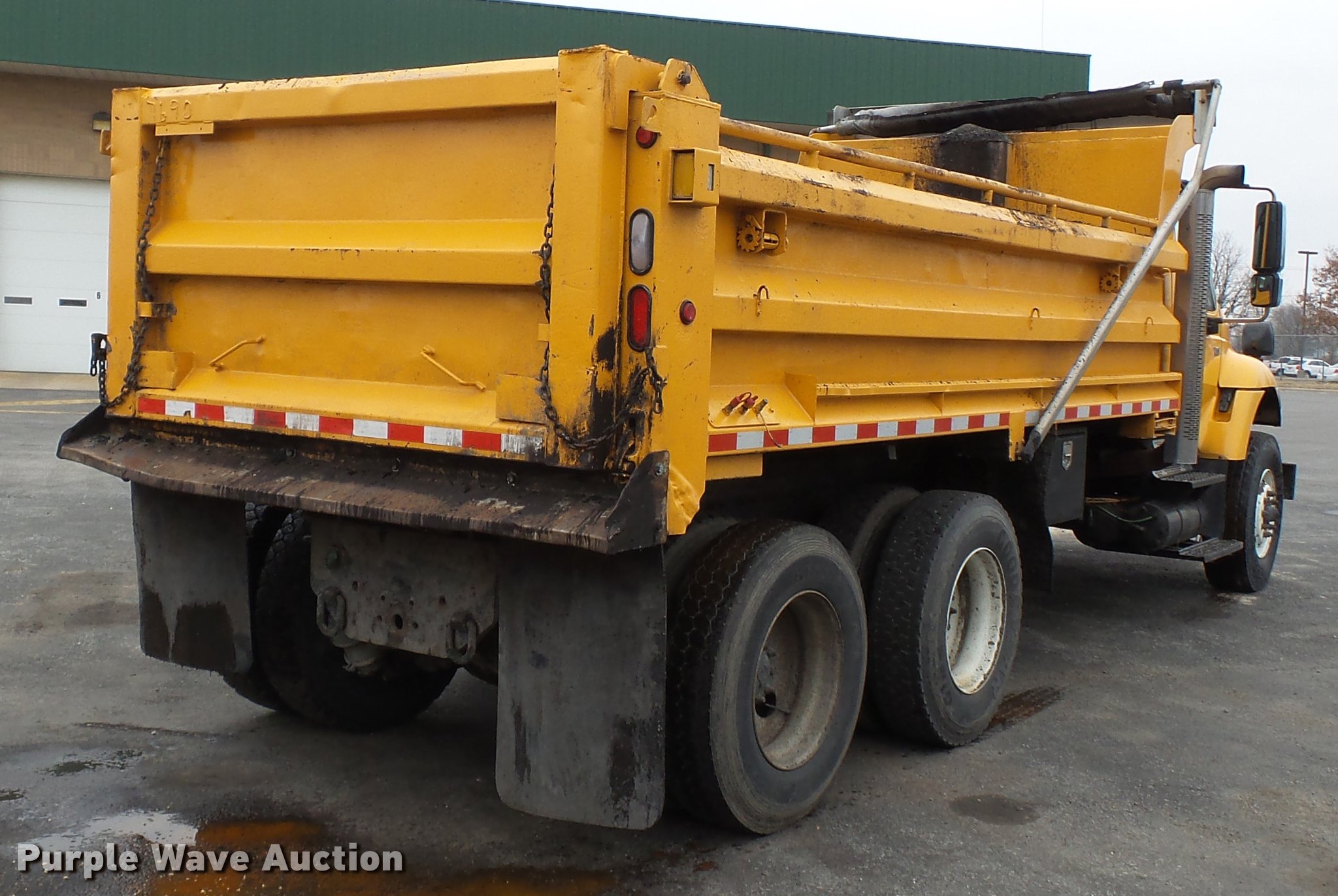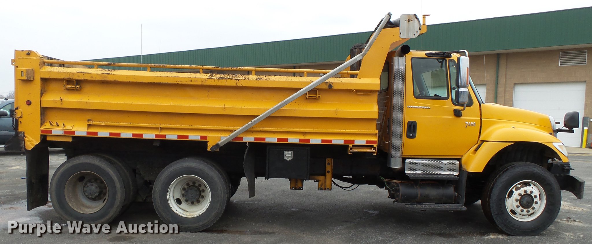 Purple Wave is selling a used Construction Dump Truck in Missouri. This item is a 2006 International 7400 dump truck with the following: 188,025 miles on odometer, 8,413 hours on meter, International DT570 9.3L L6 turbo diesel engine, Allison automatic transmission, Tandem axle, AC and heat, Tilt, Cruise, AM/FM, Power windows, Heated mirrors, Air suspension seat, Block heater, Toolboxes, Front mounted PTO, Wheeler steel dump bed, 16'L x 96"W, 36" side height, Roll tarp, Bed vibrator, Single ram hoist, Air operated end gate, Trailer wiring, Camelback suspension, Air brakes, Engine brake, 213" wheelbase, 315/80R22.5 front tires, 11R22.5 rear tires, GVWR 58,000 lbs, FAWR 18,000 lbs, IAWR 20,000 lbs, RAWR 20,000 lbs, ABS light on, MODOT ID 7690