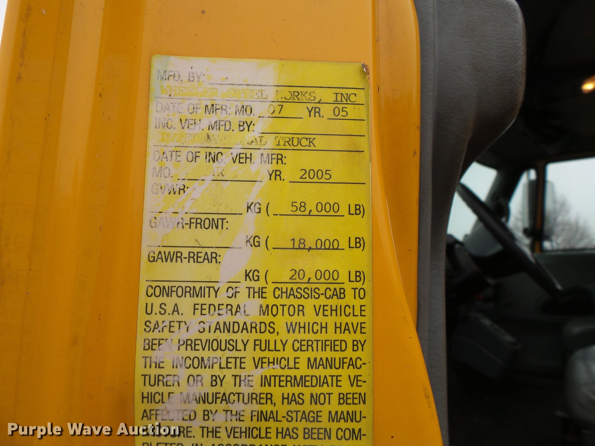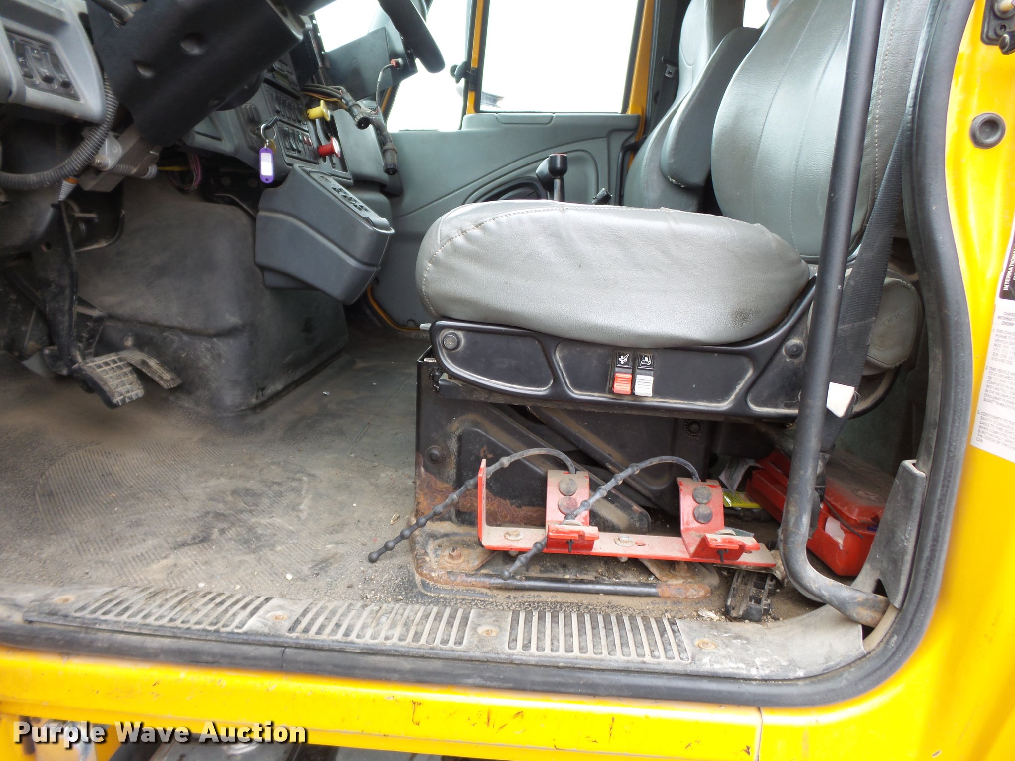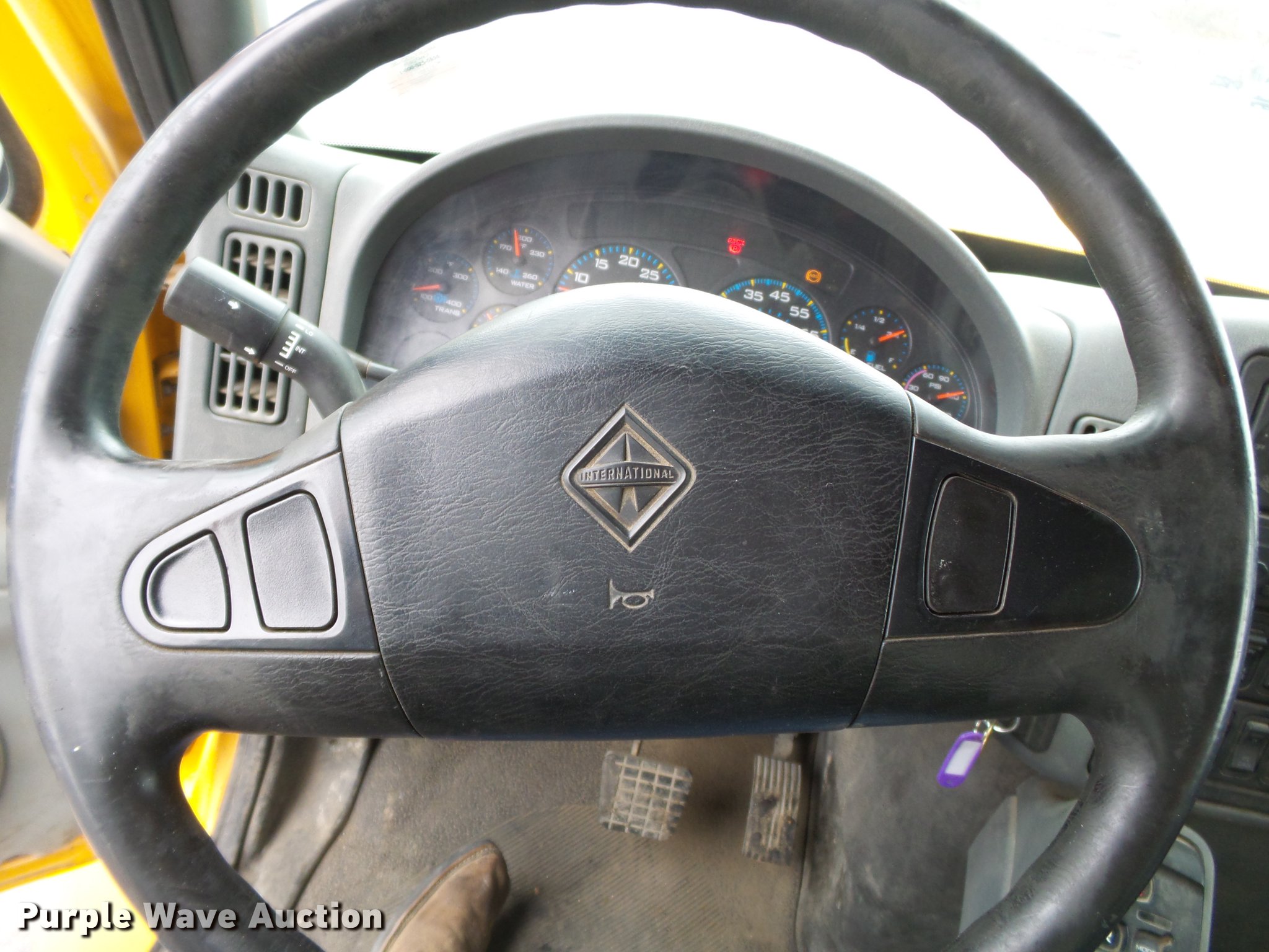 Purple Wave is selling a used Construction Dump Truck in Missouri. This item is a 2006 International 7400 dump truck with the following: 188,025 miles on odometer, 8,413 hours on meter, International DT570 9.3L L6 turbo diesel engine, Allison automatic transmission, Tandem axle, AC and heat, Tilt, Cruise, AM/FM, Power windows, Heated mirrors, Air suspension seat, Block heater, Toolboxes, Front mounted PTO, Wheeler steel dump bed, 16'L x 96"W, 36" side height, Roll tarp, Bed vibrator, Single ram hoist, Air operated end gate, Trailer wiring, Camelback suspension, Air brakes, Engine brake, 213" wheelbase, 315/80R22.5 front tires, 11R22.5 rear tires, GVWR 58,000 lbs, FAWR 18,000 lbs, IAWR 20,000 lbs, RAWR 20,000 lbs, ABS light on, MODOT ID 7690
