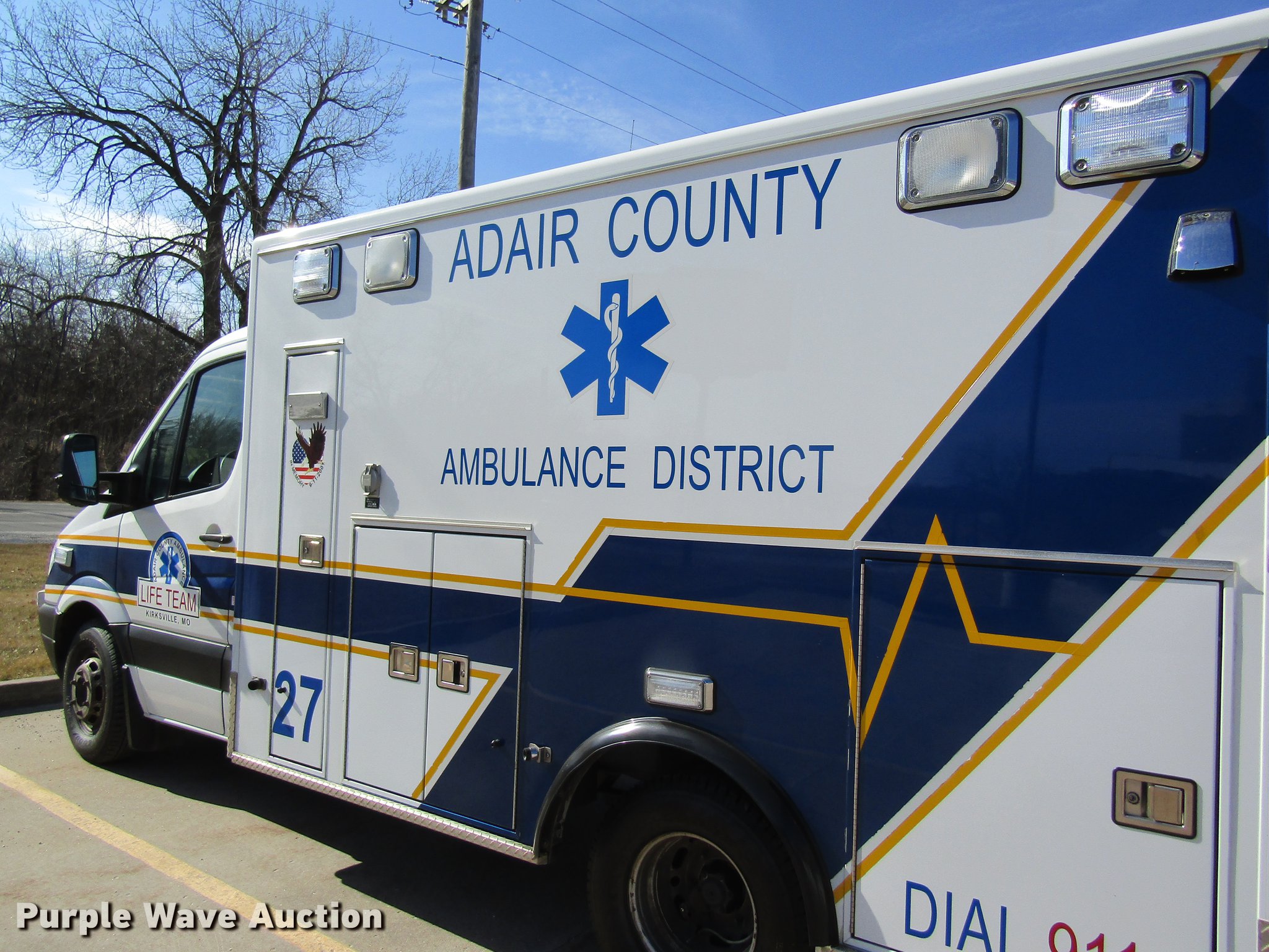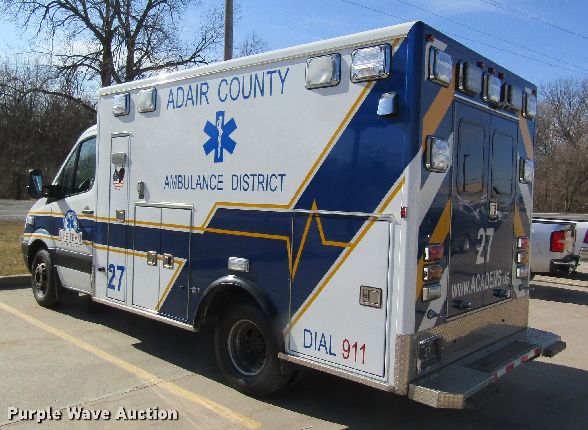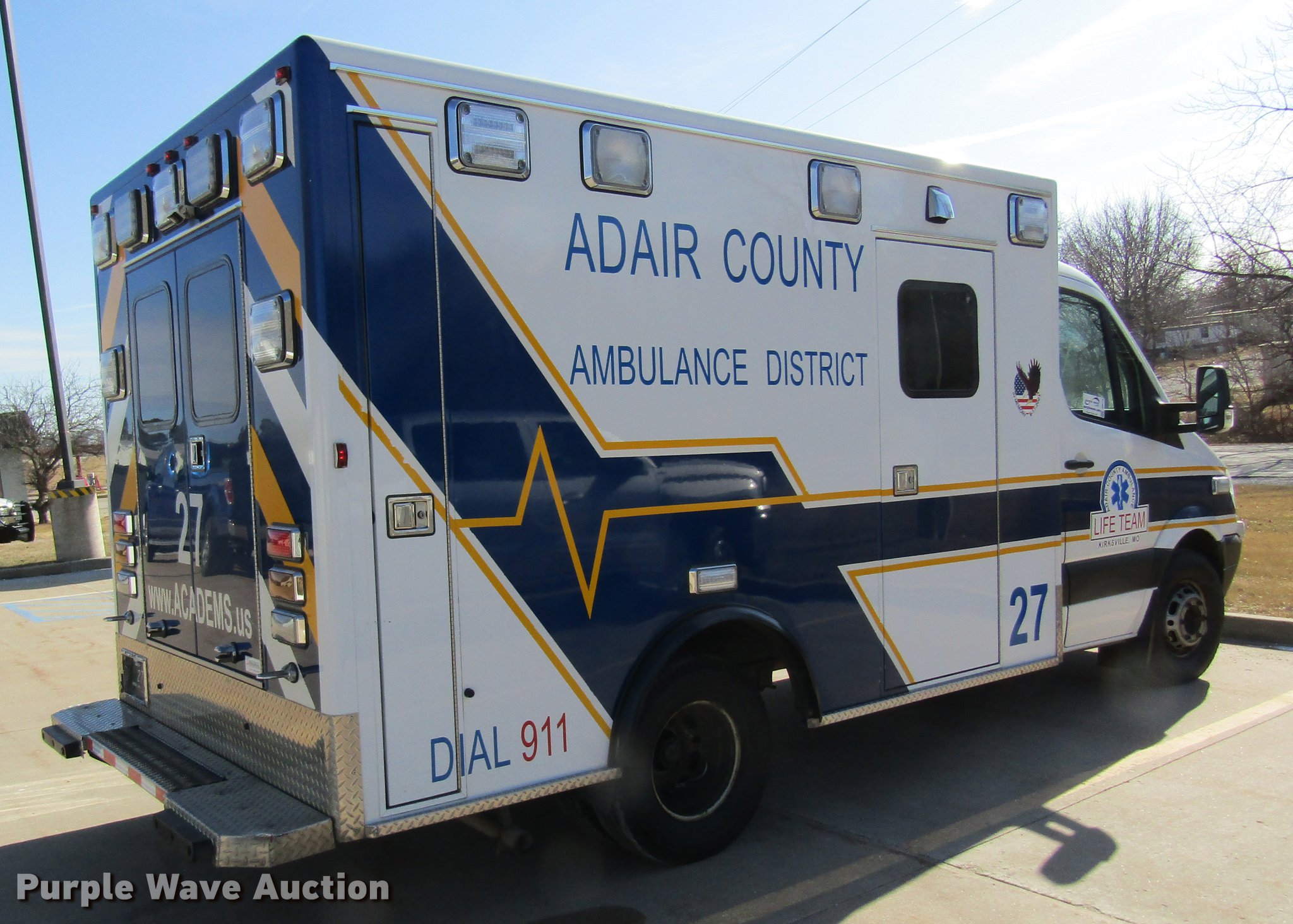 2011 Freightliner Sprinter 3500 ambulance. 278,131 miles on odometer, 3.0L V6 turbo diesel engine, Automatic transmission, Single axle, AC and heat, AM/FM/CD, Power windows, Suspension seat, Emergency lights and srens, Mediy Mini Medic 142 body LED interior lights, (3) oxygen hookups, Vacuum hookups, 215/85R16 tires, GVWR 11,030 lbs, Unit# 27. Missouri title. WDPPF3CC0B9484599. Adair County Ambulance District. 606 W Potter Ave. Kirksville, MO 63501