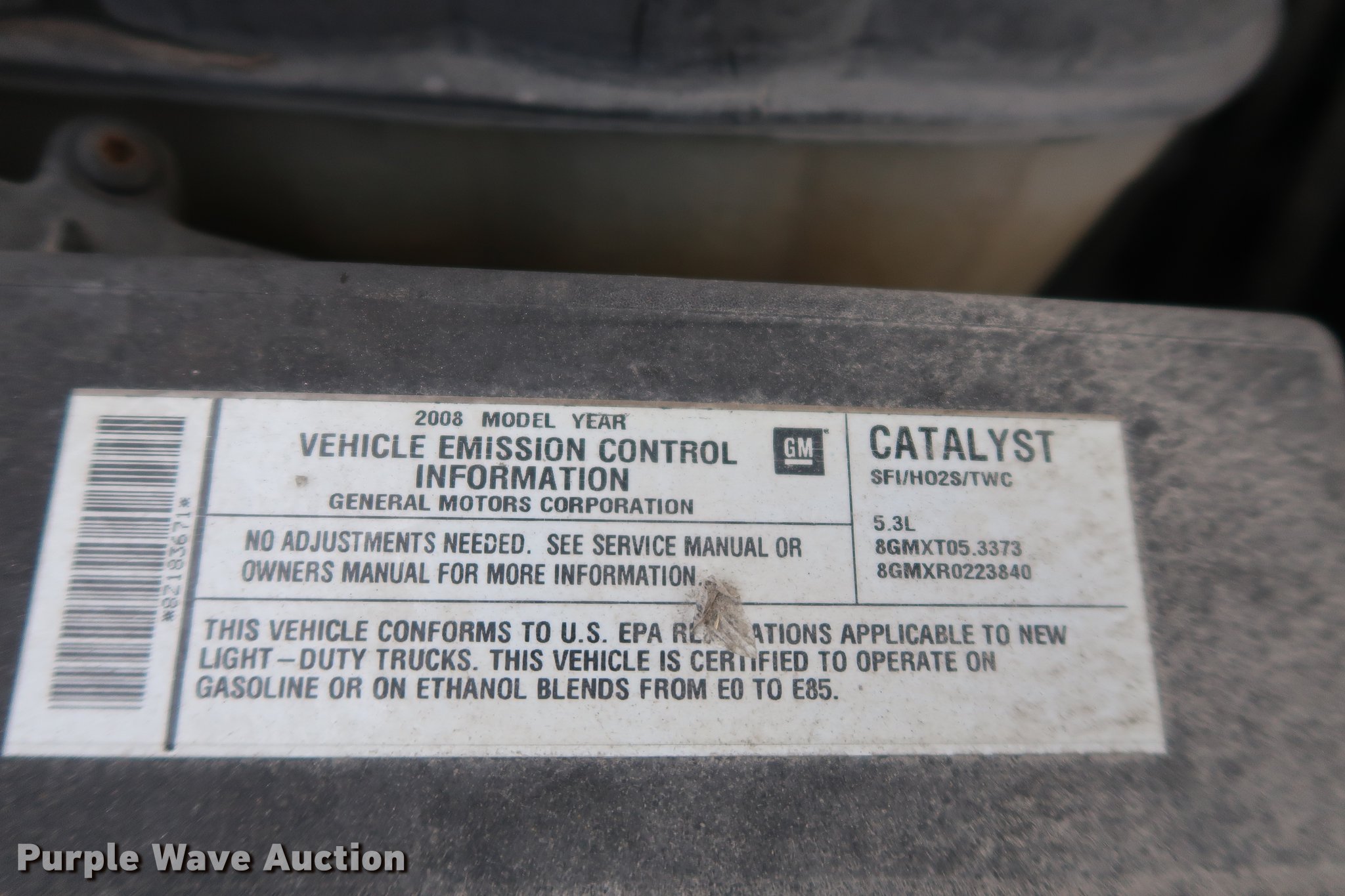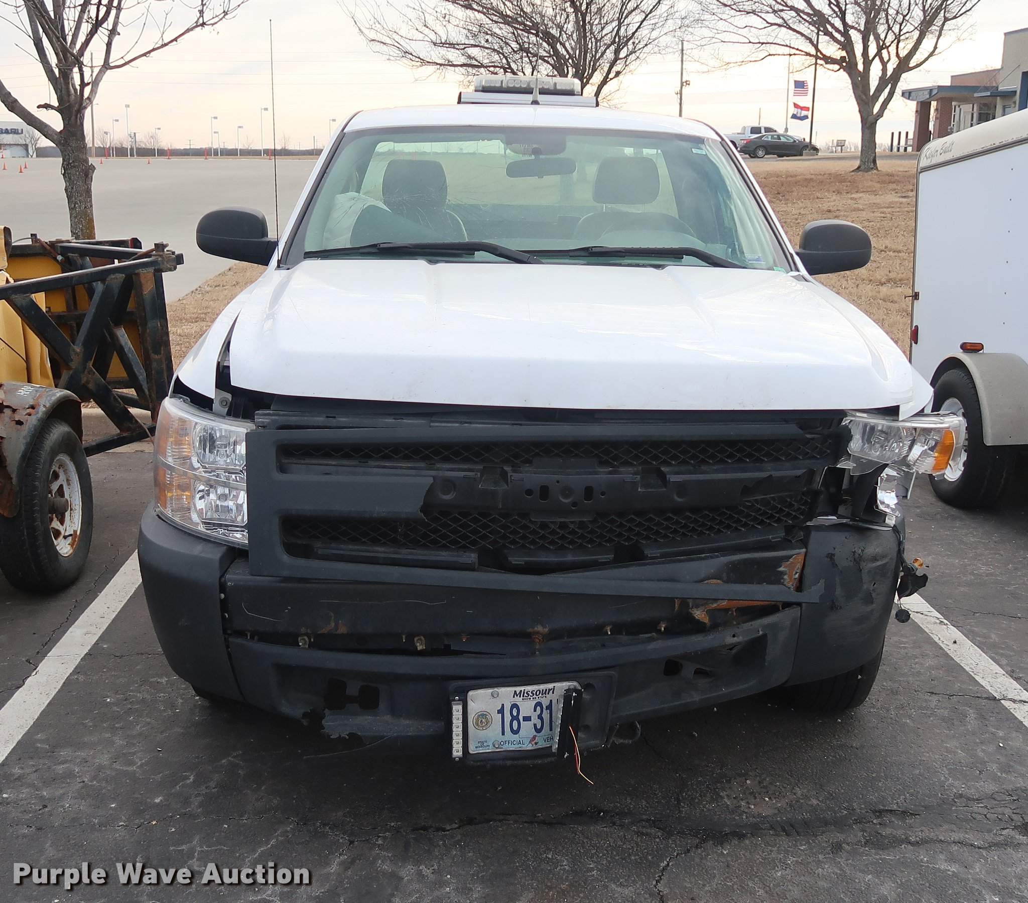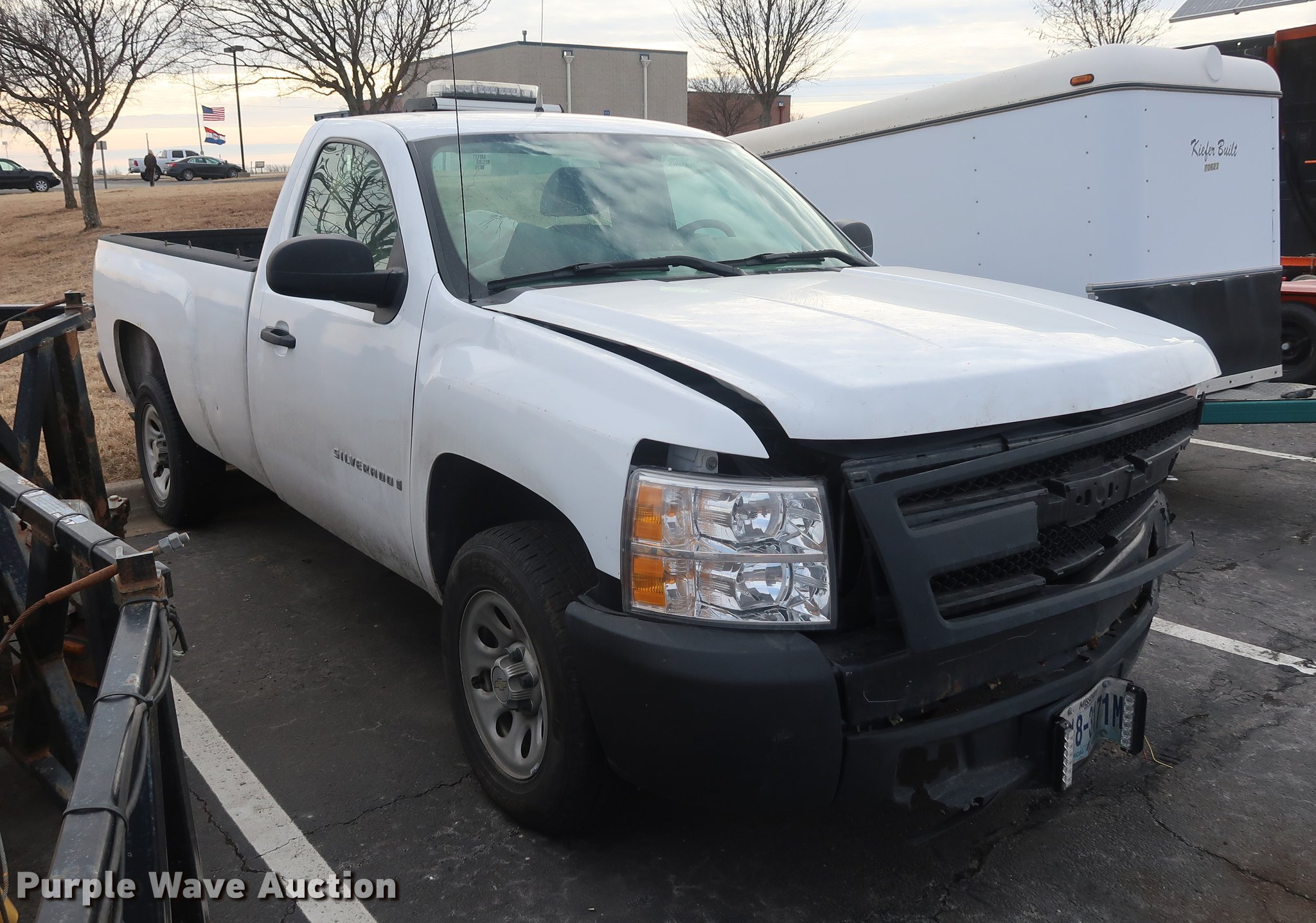 Purple Wave is selling a used 1/2 Ton Pickup or Van in Missouri. This item is a 2008 Chevrolet Silverado 1500 pickup truck with the following: 116,206 miles on odometer, 5.3L V8 OHV 16V FFV gas engine, Automatic transmission, AC and heat, Tilt, Cruise, AM/FM/CD, Vinyl interior, Long bed, Receiver hitch, 245/70R17 tires, Front end collision damage, Air bags deployed, Dead battery, Two-way radio and strobe light will be removed prior to auction, MODOT ID B6501
