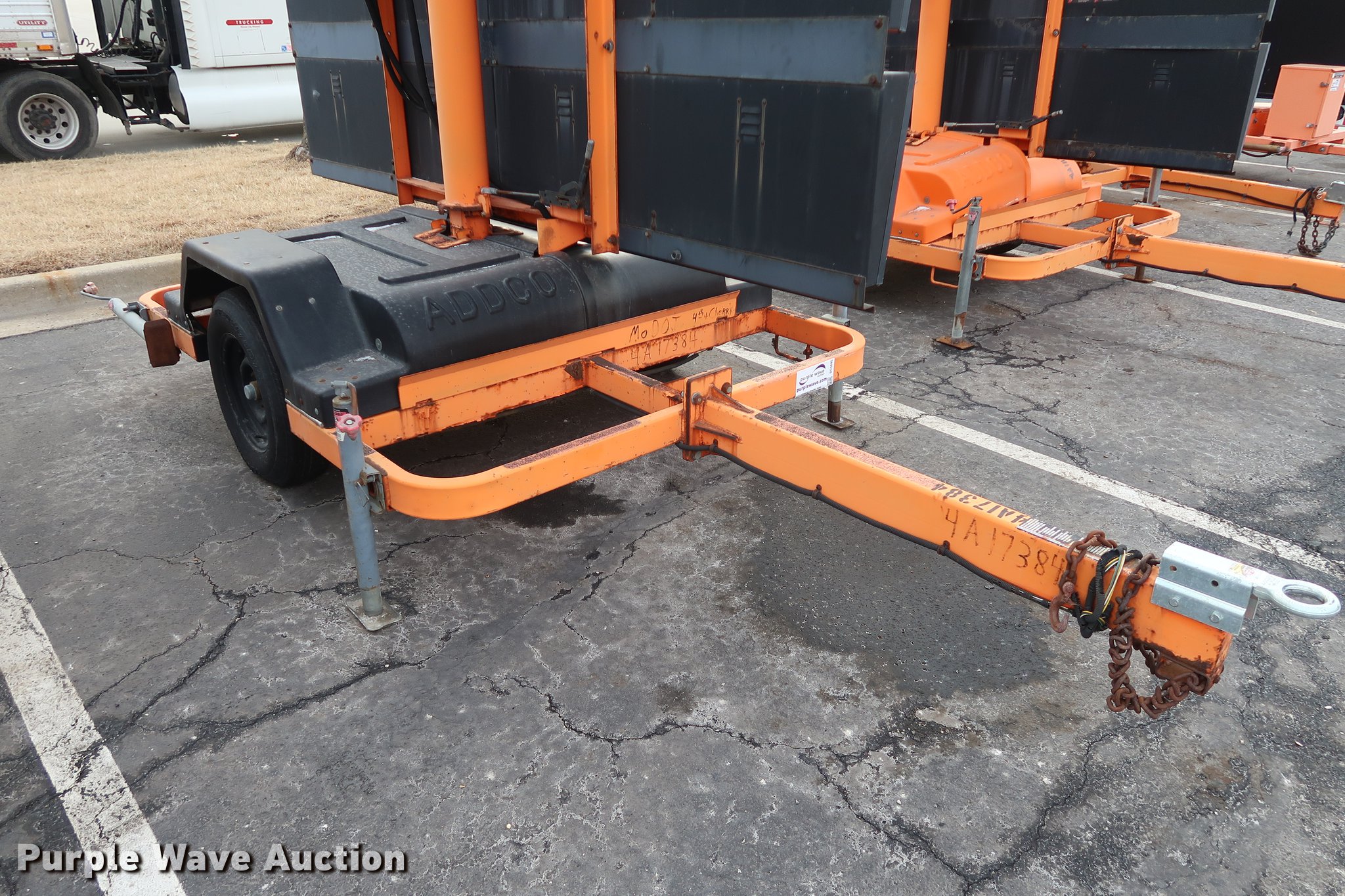 Addco message board. Solar powered, Manual jack stands, Pintle hitch, 205/75/15 tires, Unknown operating condition. Transfer of ownership documentation will be a bill of sale. Missouri Department of Transportation (MODOT). 600 NE Colbern Rd. Lee's Summit, MO 64086