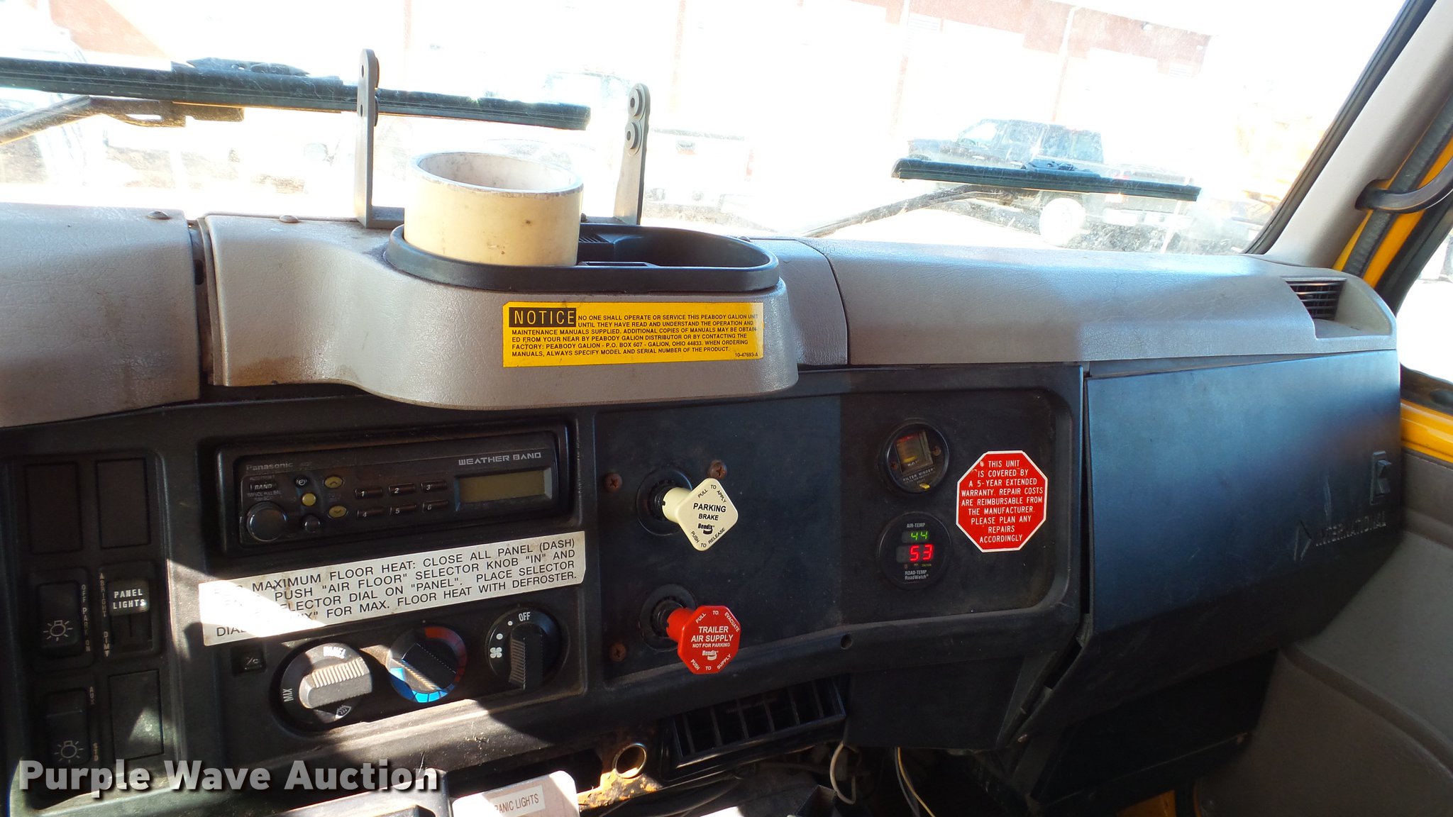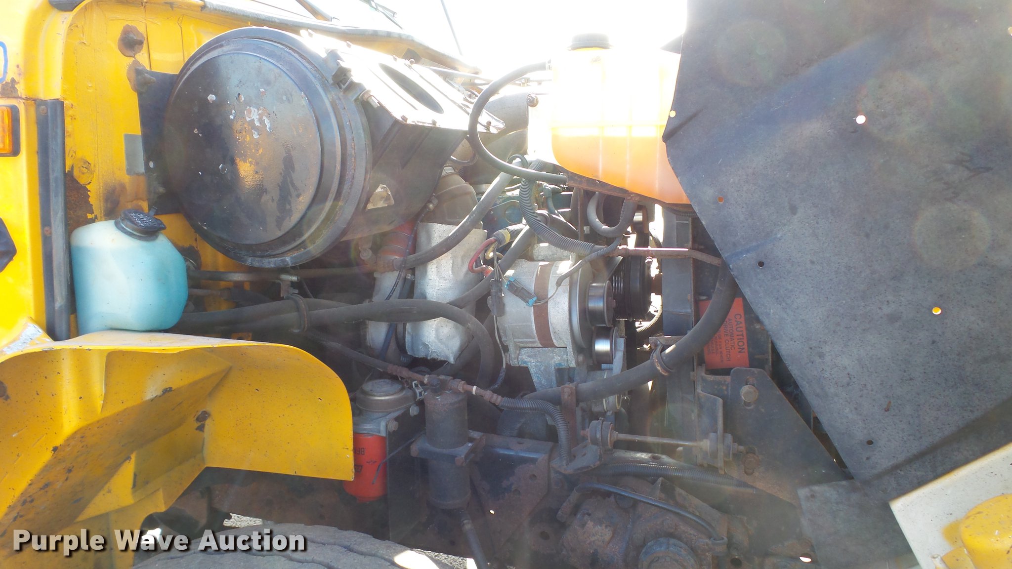 Purple Wave is selling a used Construction Dump Truck in Missouri. This item is a 2002 International 4900 dump truck with the following: 122,102 miles on odometer, 8,579 hours on meter, Odometer has been replaced, International DT466 7.6L L6 turbo diesel engine, Allison automatic transmission, Single axle, AC and heat, Cruise, AM/FM, Power windows, Heated mirrors, Air suspension seat, Block heater, Toolboxes, McClain Gaion 402FT steel dump bed, 10'L x 96"W, 5.6 to 6.8 cu. yd. capacity, Bed vibrator, Single ram hoist, Air operated end gate, Serial B-20786, Front hydraulic remote set, (2) rear hydraulic remote sets, Single fuel tank, Pintle hitch, Trailer wiring, Spring suspension, Air brakes, 315/80R22.5 front tires, 11R22.5 rear tires, Automatic tire chains, Engine oil leak, Cab mounts and supports rusted, Beacon lights, spreader controls, radio, and decals will be removed prior to auction, MODOT ID 6600
