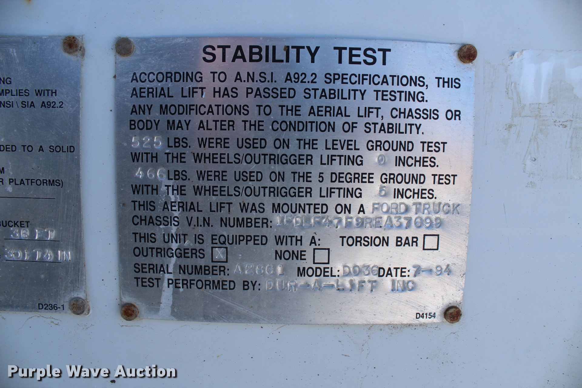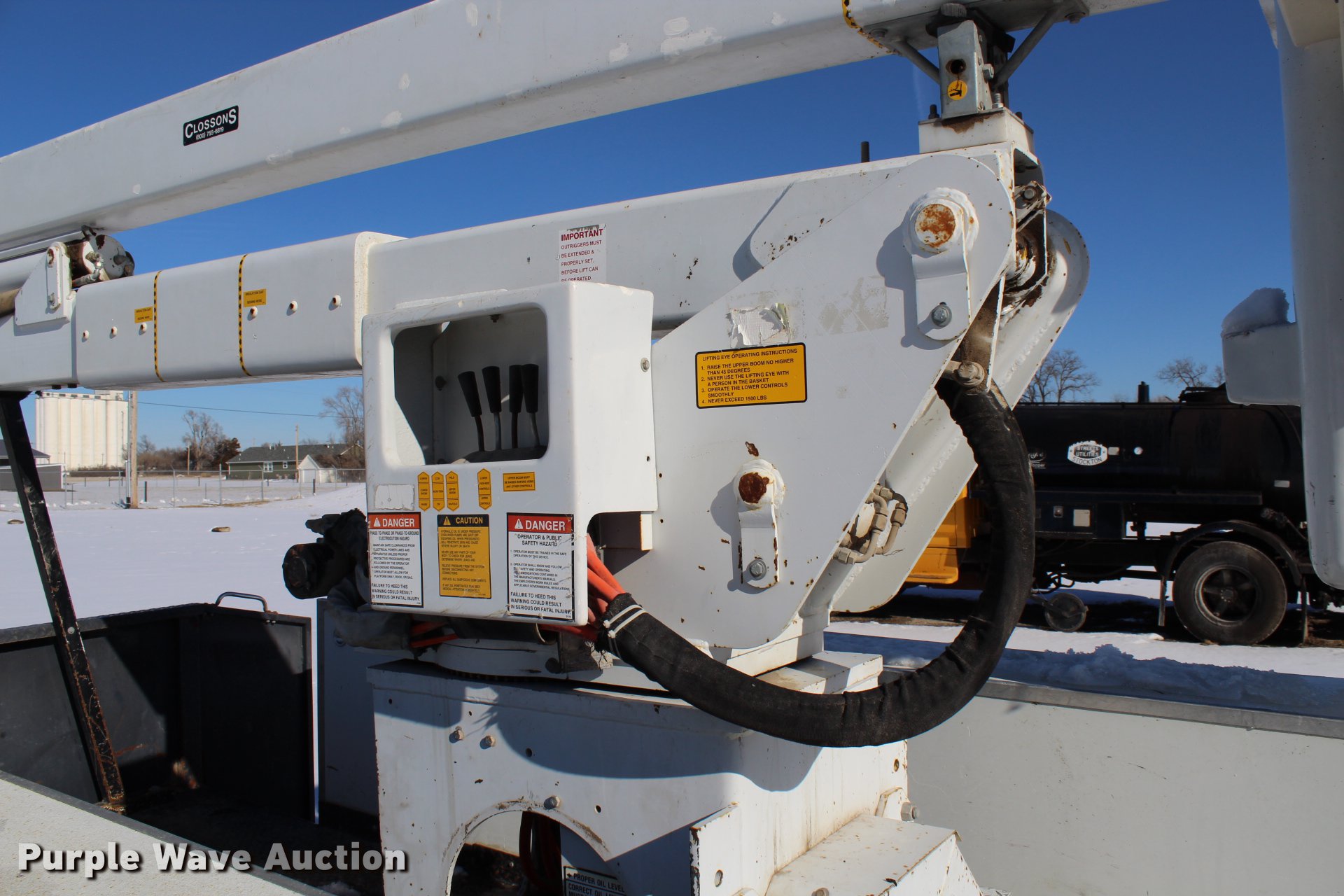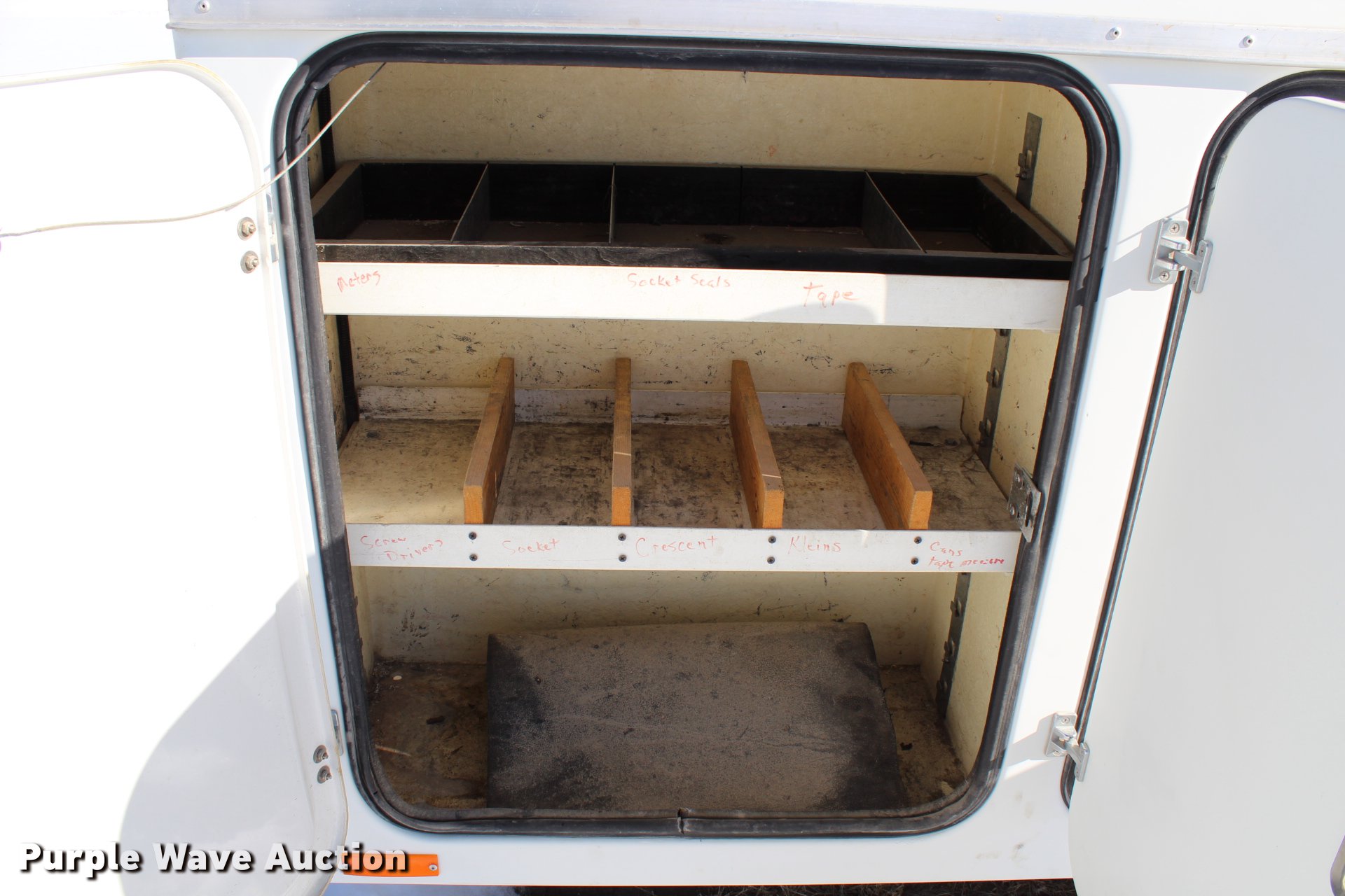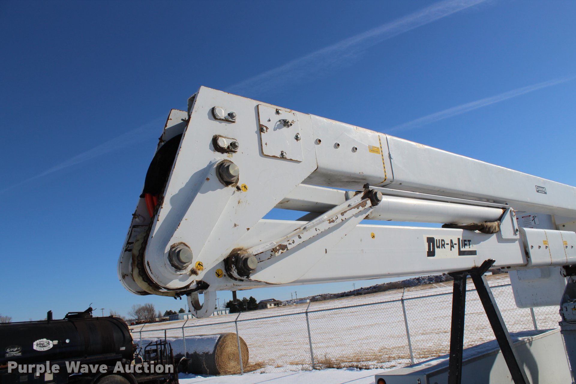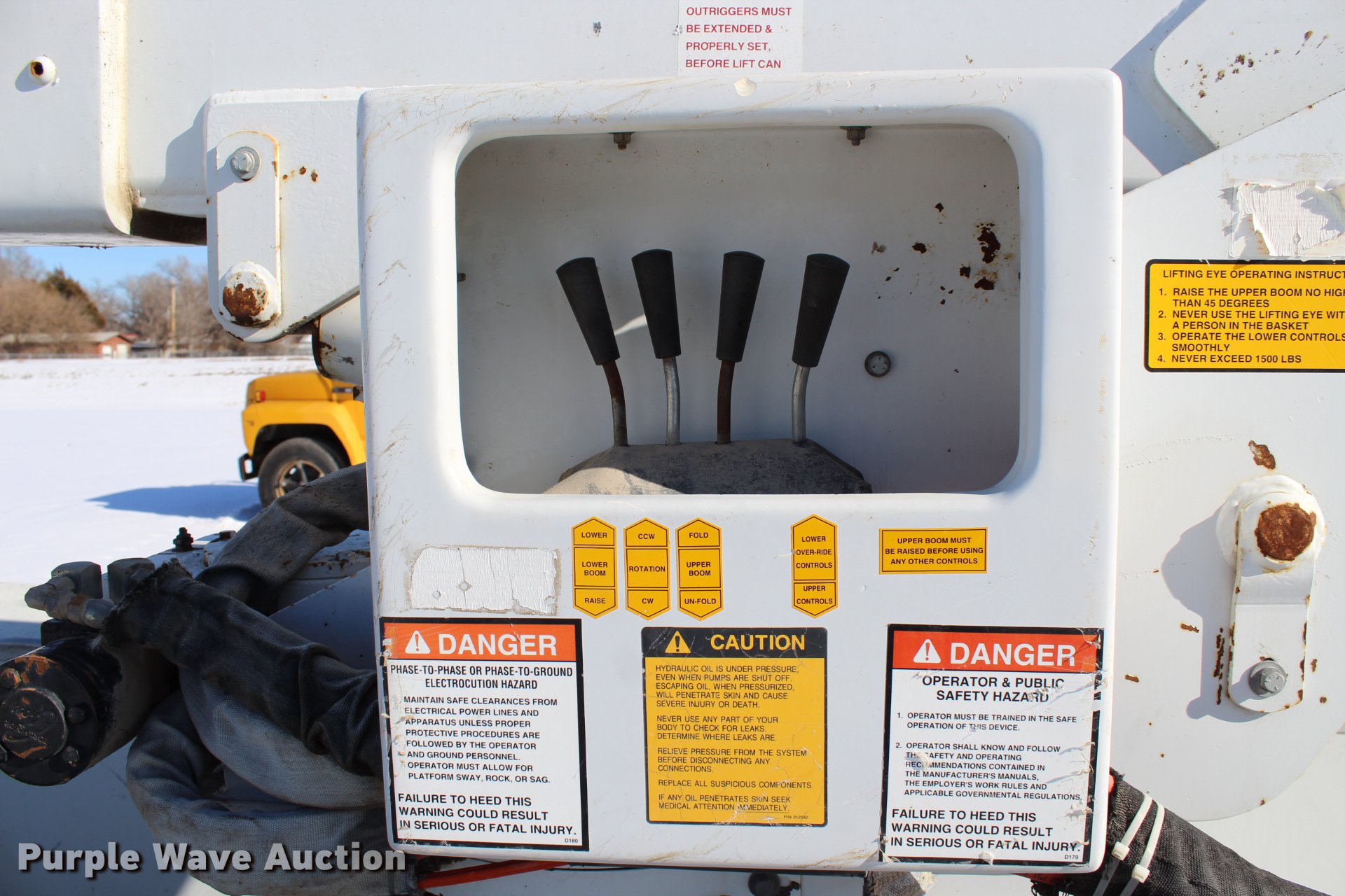 Purple Wave is selling a used Truck Part and Attach. in Kansas. This item is a Fibre Body utility bed with boom with the following: 11'L x 91"W, Shelving, 1994 Dur-A-Lift DO-36 boom, 36' boom length, 350 lbs max lift capacity, Man basket, 41' max lift height, Ground and platform boom controls, Boom rotation, Articulating boom, (2) outriggers, Serial A2861, Serial 6875