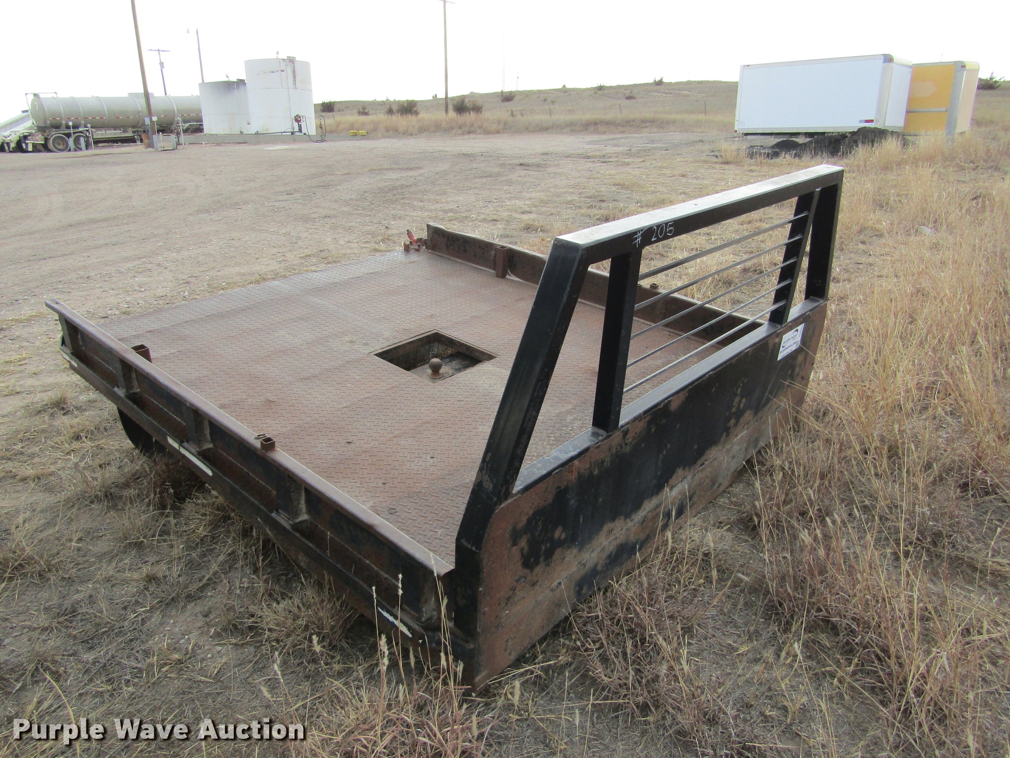 Purple Wave is selling a used Automotive Parts or Acces. in Kansas. This item is a Steel flatbed with the following: 99"L x 84"W, Removable side rails, Gooseneck ball, Receiver hitch, Lights, Mud flaps