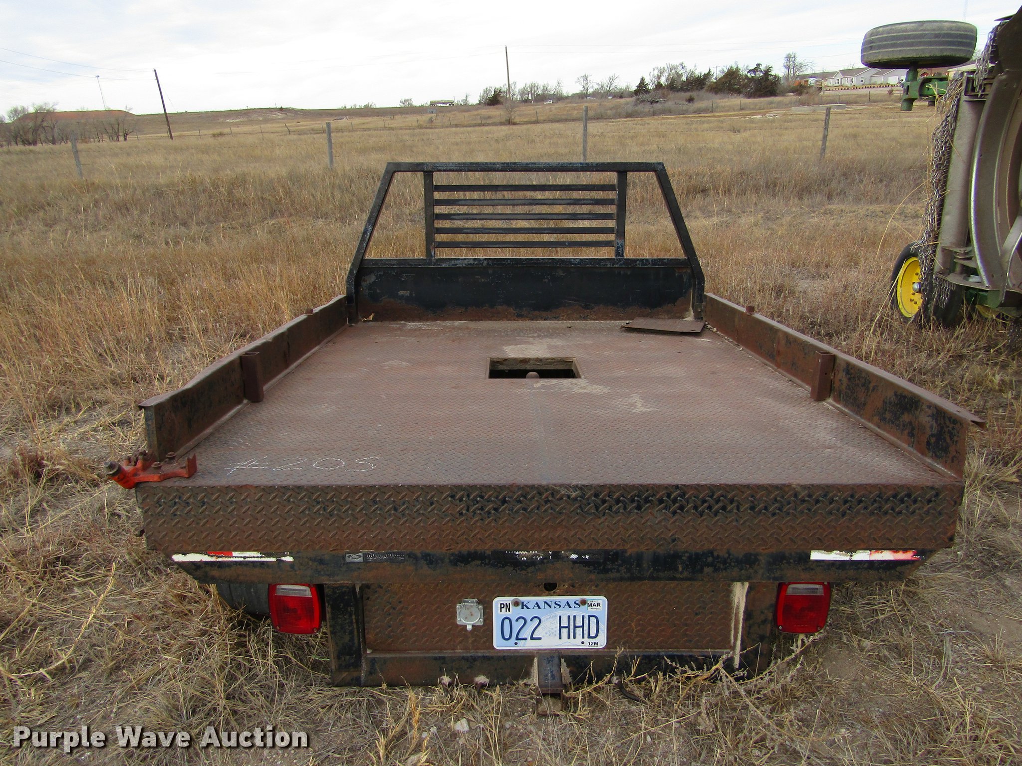 Steel flatbed. 99"L x 84"W, Removable side rails, Gooseneck ball, Receiver hitch, Lights, Mud flaps. Hodgeman County. 28561 SE L Rd. Jetmore, KS 67854