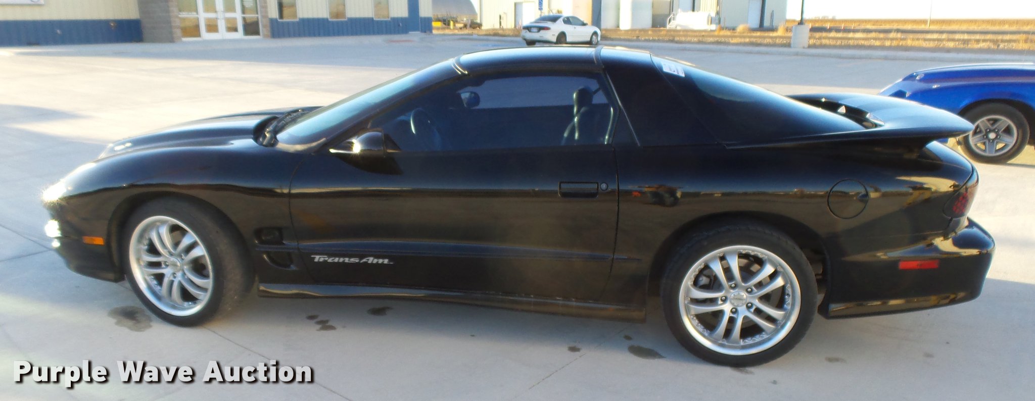 Purple Wave is selling a used Passenger Vehicle in Kansas. This item is a 1999 Pontiac Firebird with the following: 103,975 miles on odometer, 5.7L V8 OHV 16V gas engine, Automatic transmission, AC and heat, Tilt, Cruise, AM/FM/CD, Power windows, locks, mirrors, and seats, Vinyl interior, Sunroof, Fog lights, 245/50ZR18 tires, Service engine soon light on