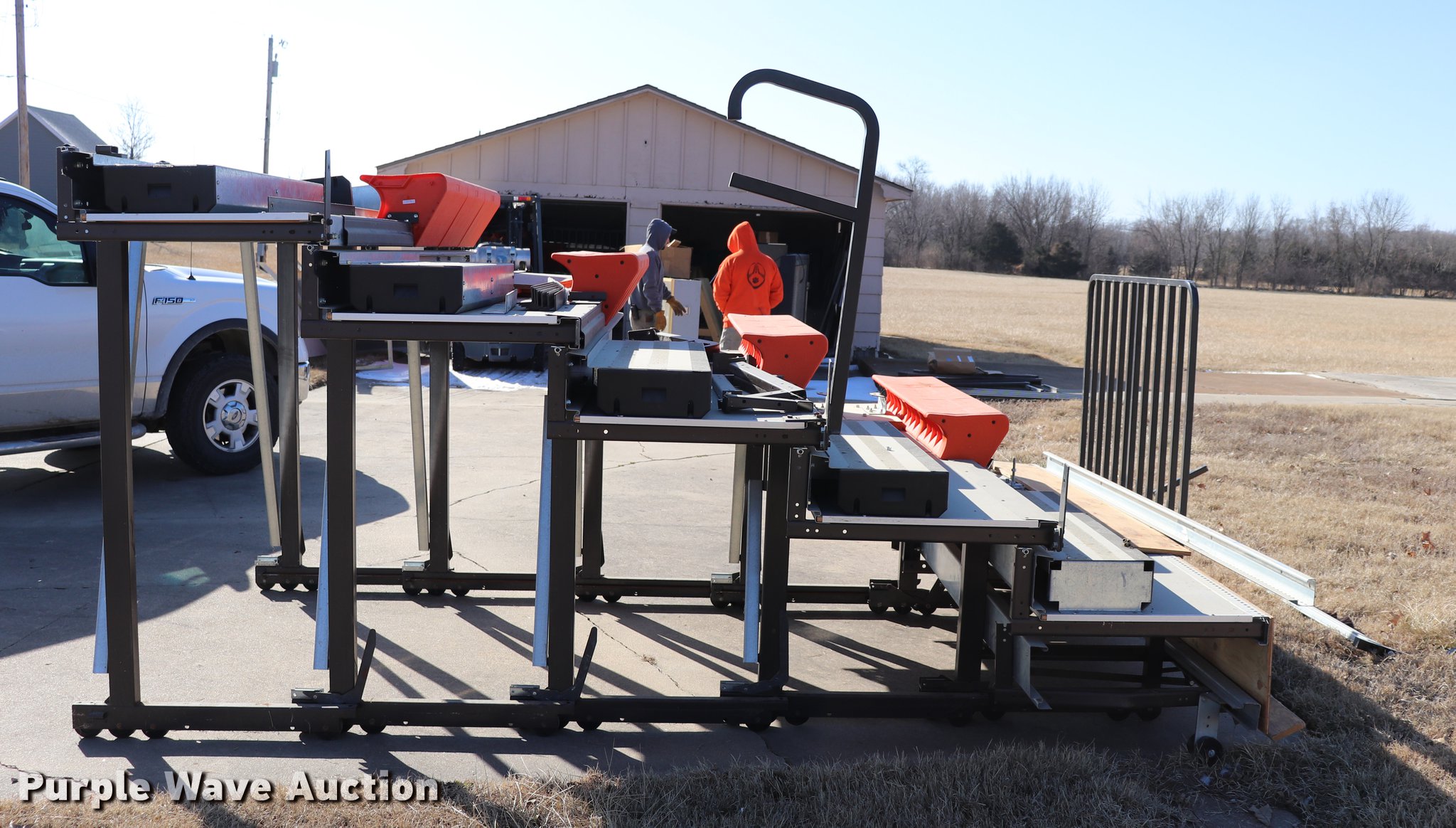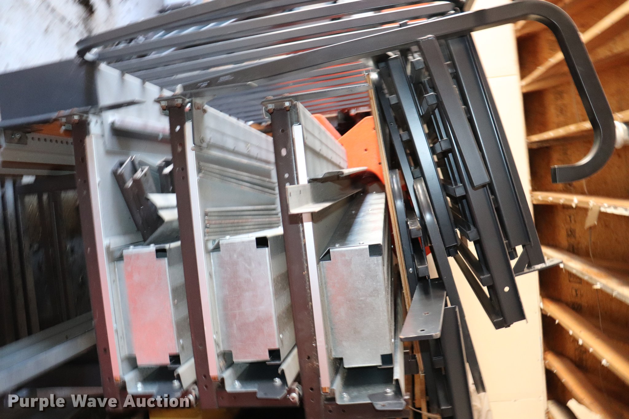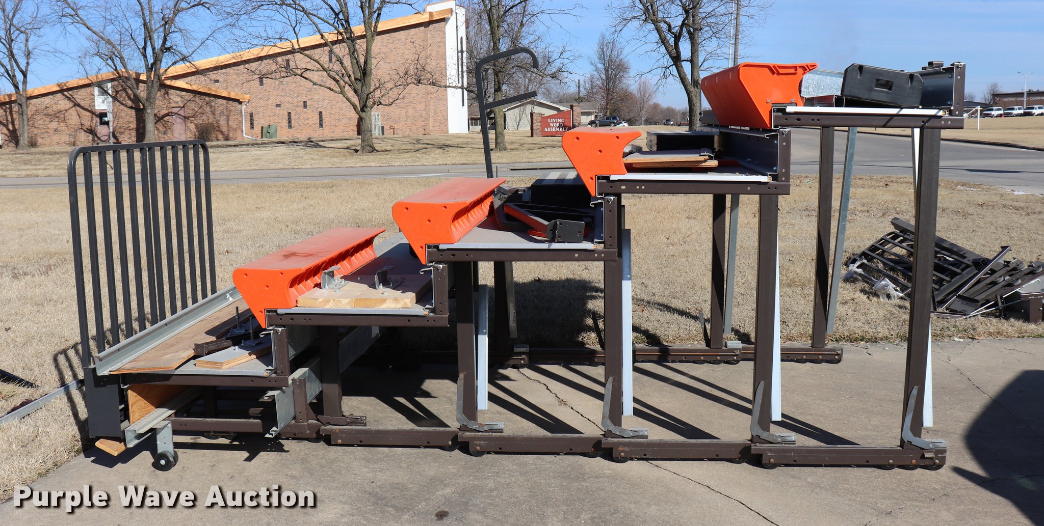 Purple Wave is selling a used Furniture in Kansas. This item is a Heartland bleachers with the following: 99"L x 12'W, Three sections, (2) standard, One handicap capable, Guard rails