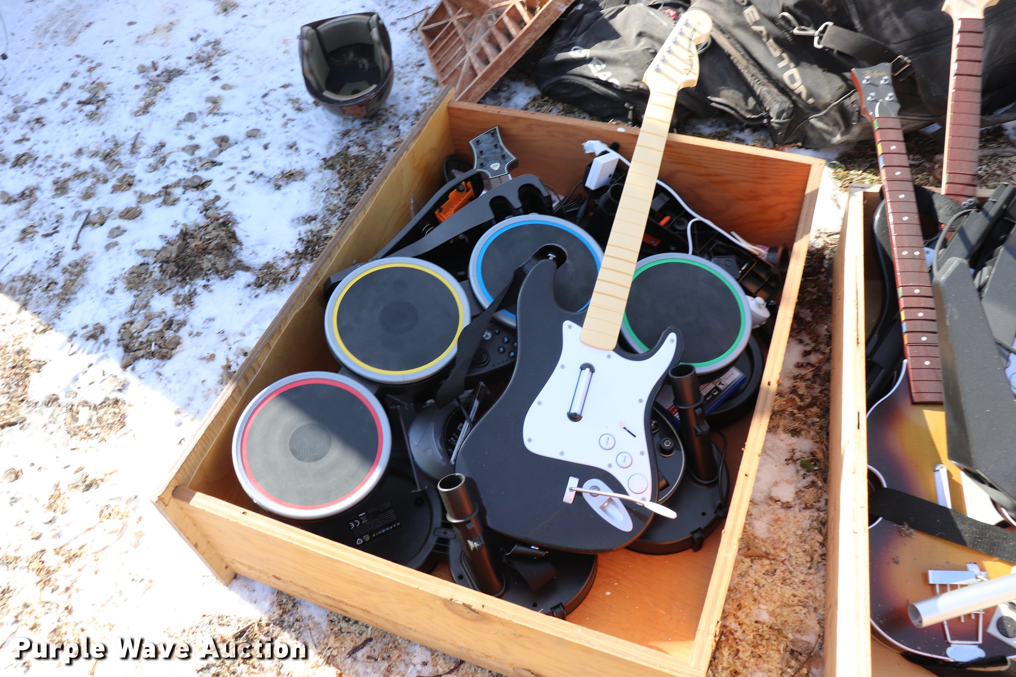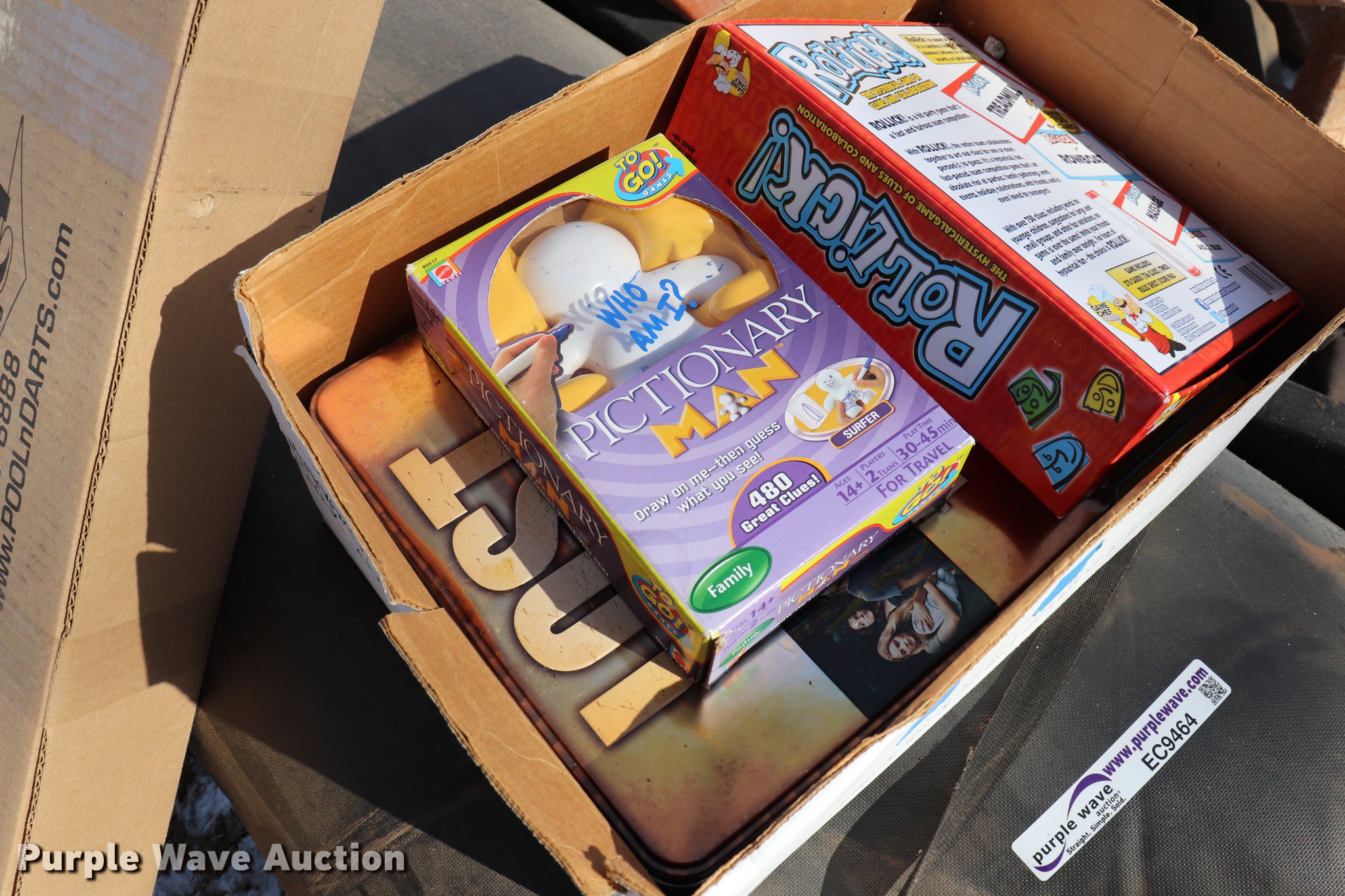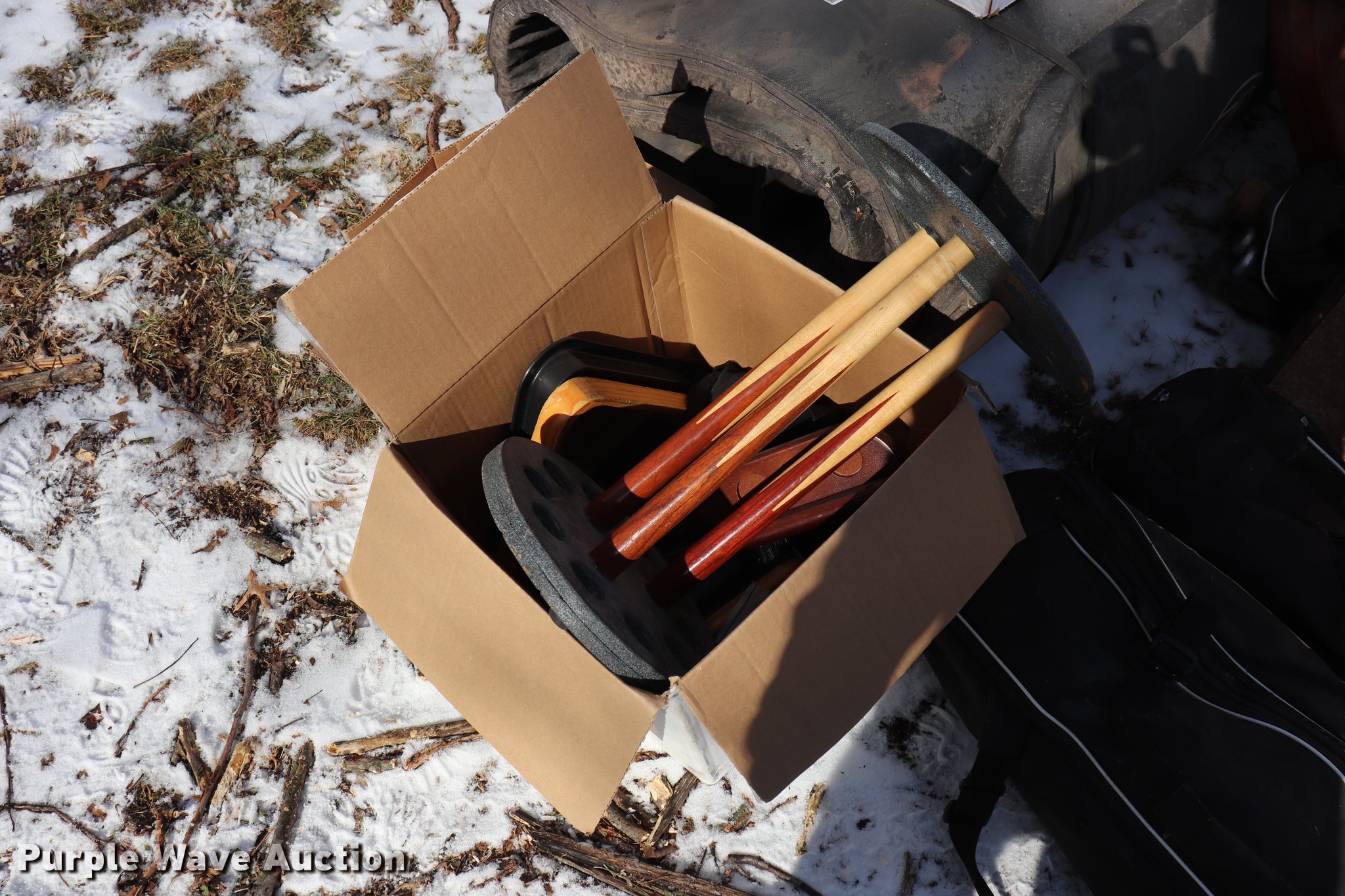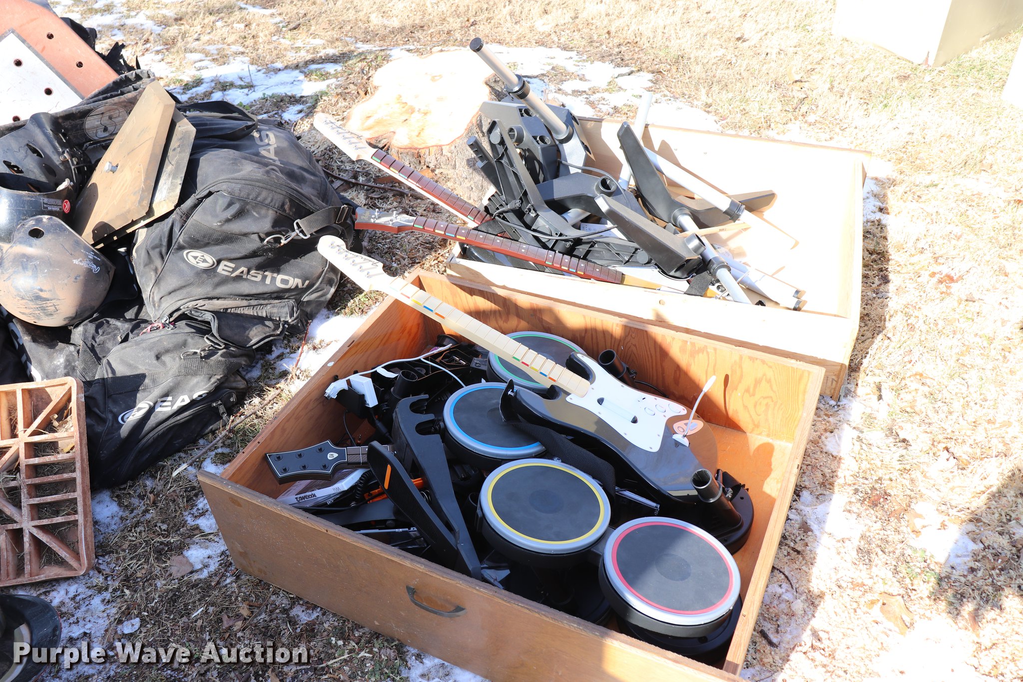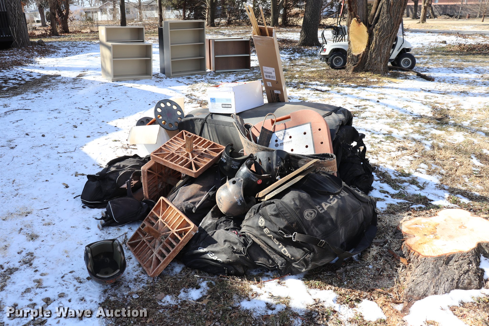 Purple Wave is selling a used Sporting Goods in Kansas. This item is a Sporting goods with the following: Pool cues, Softball equipment, Bases, Bats, Helmets, Bat bags, Mats, Assorted board games, Electronic games, Wrestling mat