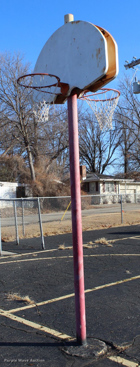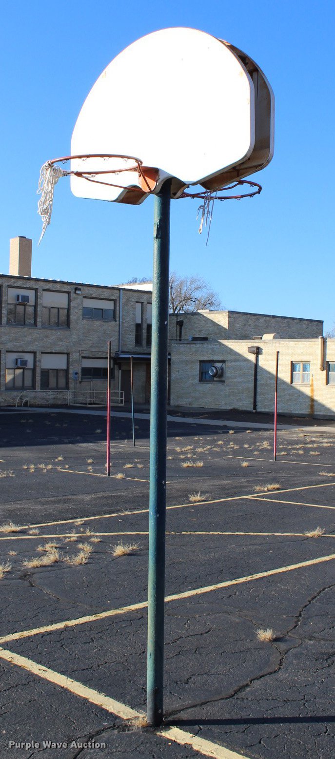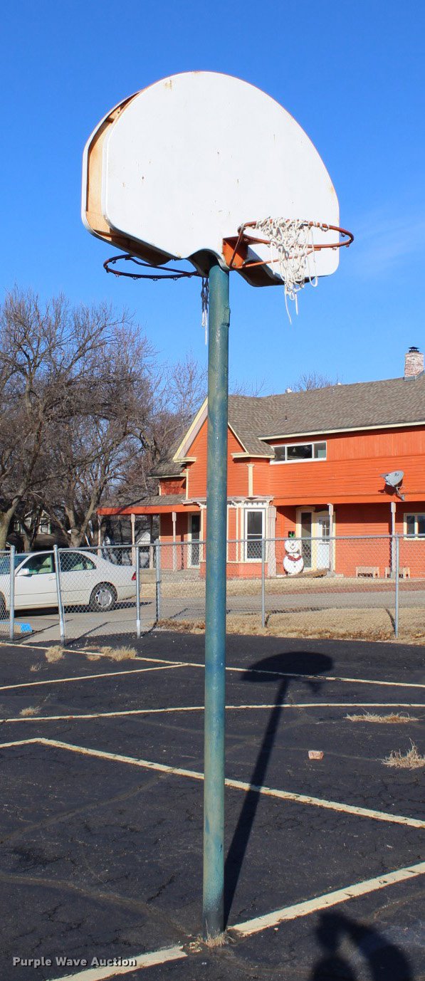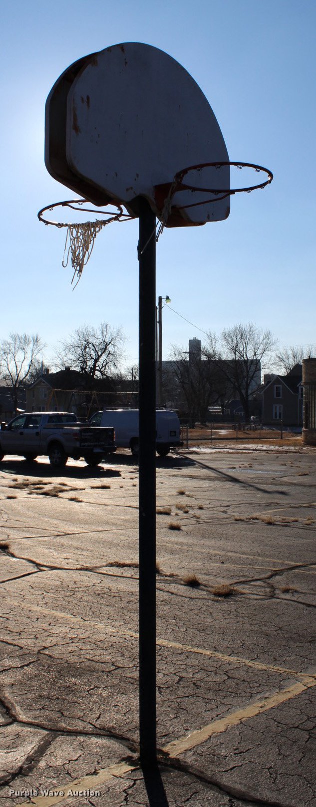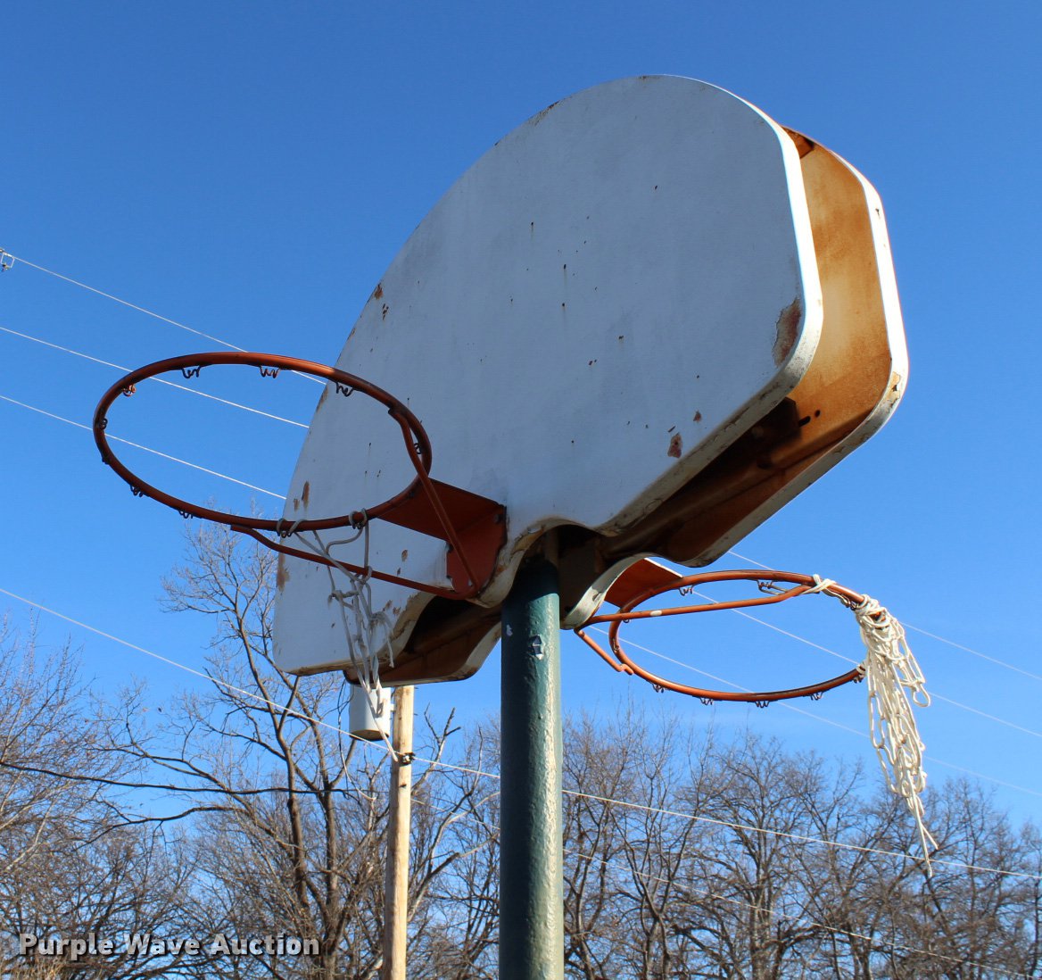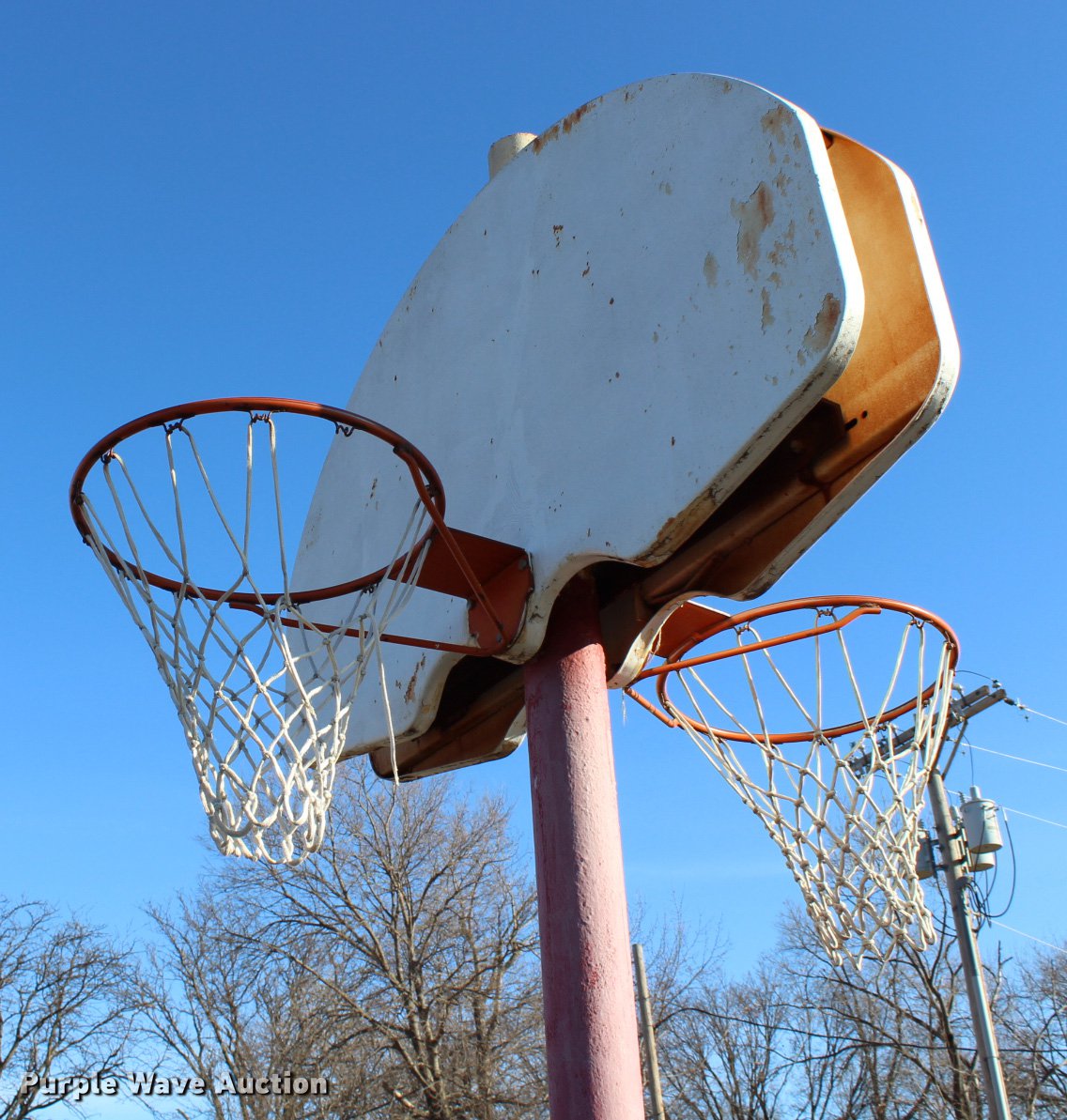 (5) basket ball goals. (3) poles, One backboard cracked, Two have nets. Purchaser is responsible for all aspects of removal. 300 NW 7th St. Abilene, KS 67410