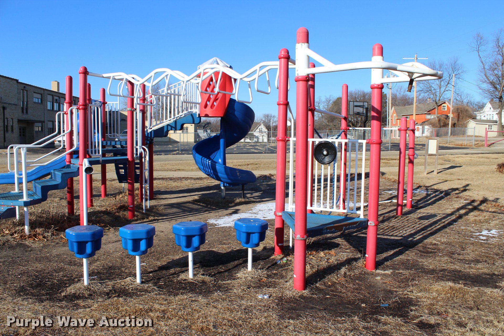 Purple Wave is selling a used Sporting Goods in Kansas. This item is a MIracle Recreation Equipment playground equipment with the following: MIracle Recreation Equipment playground equipment. Purchaser is responsible for all aspects of removal.. 300 NW 7th St. Abilene, KS 67410